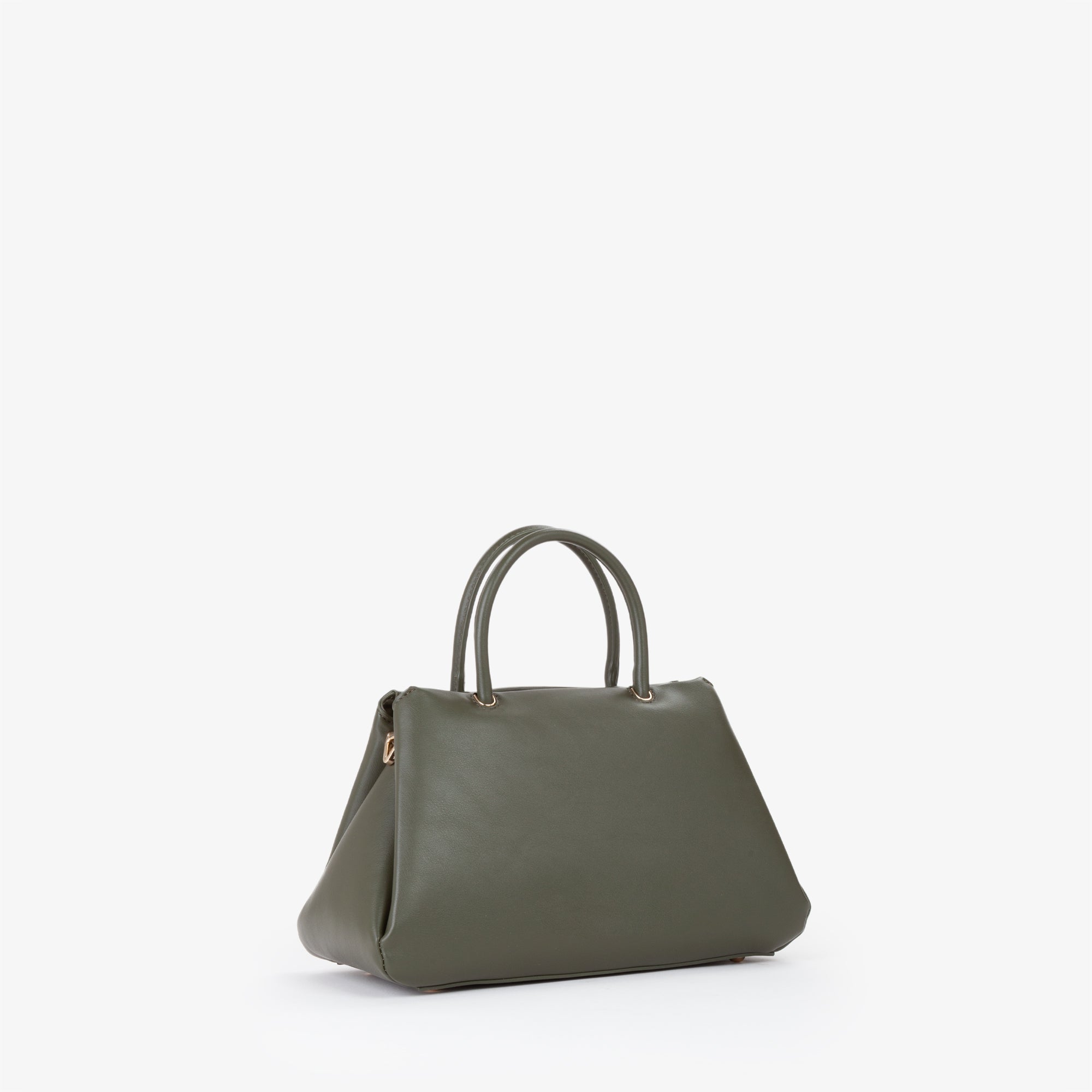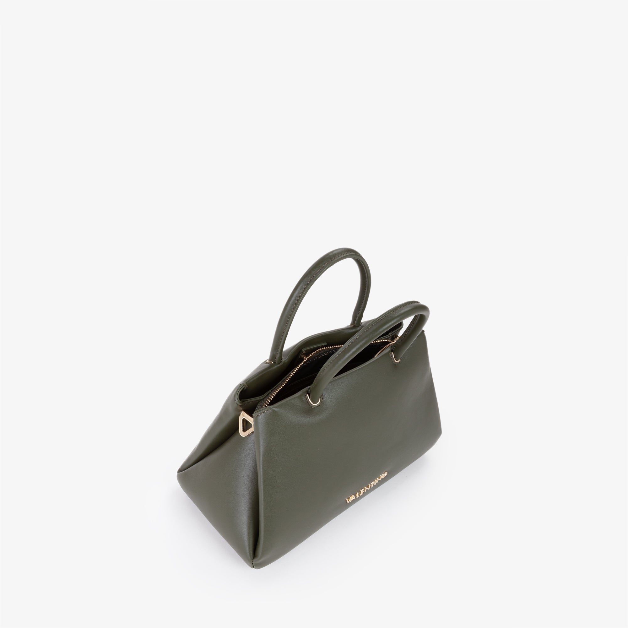 Bauletto a mano con logo e dettaglio attacco manico in metallo.