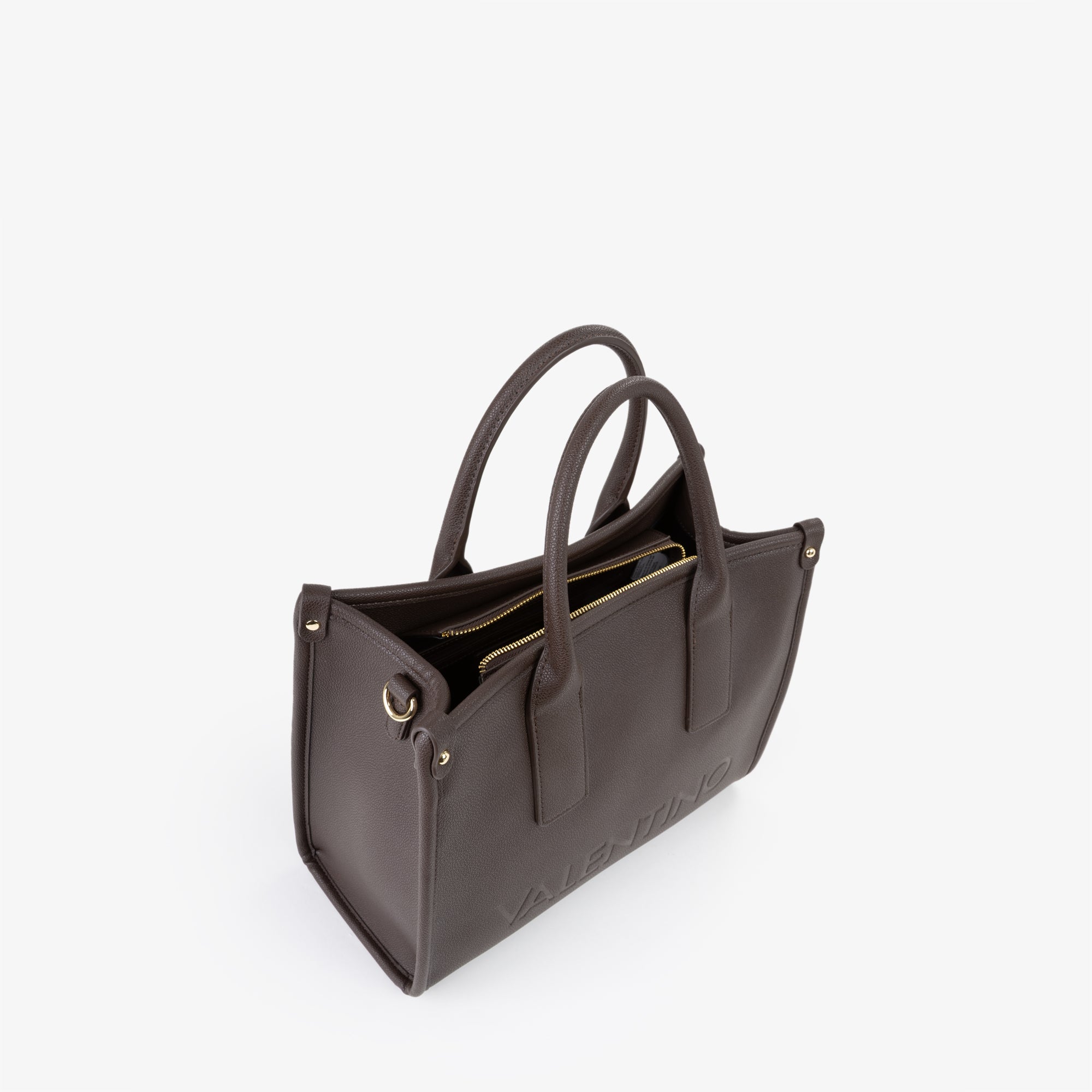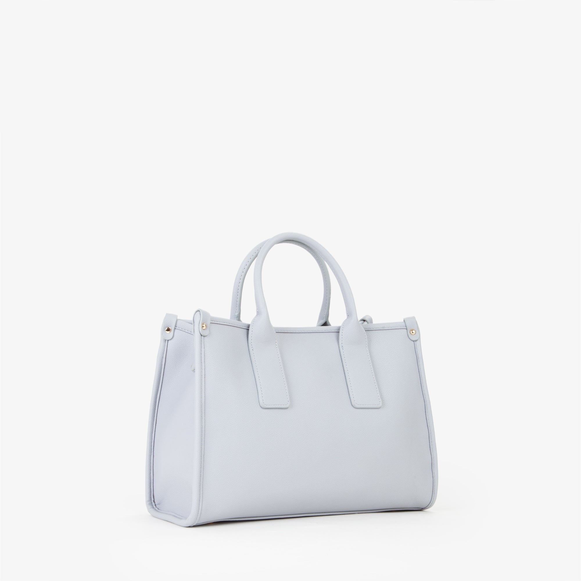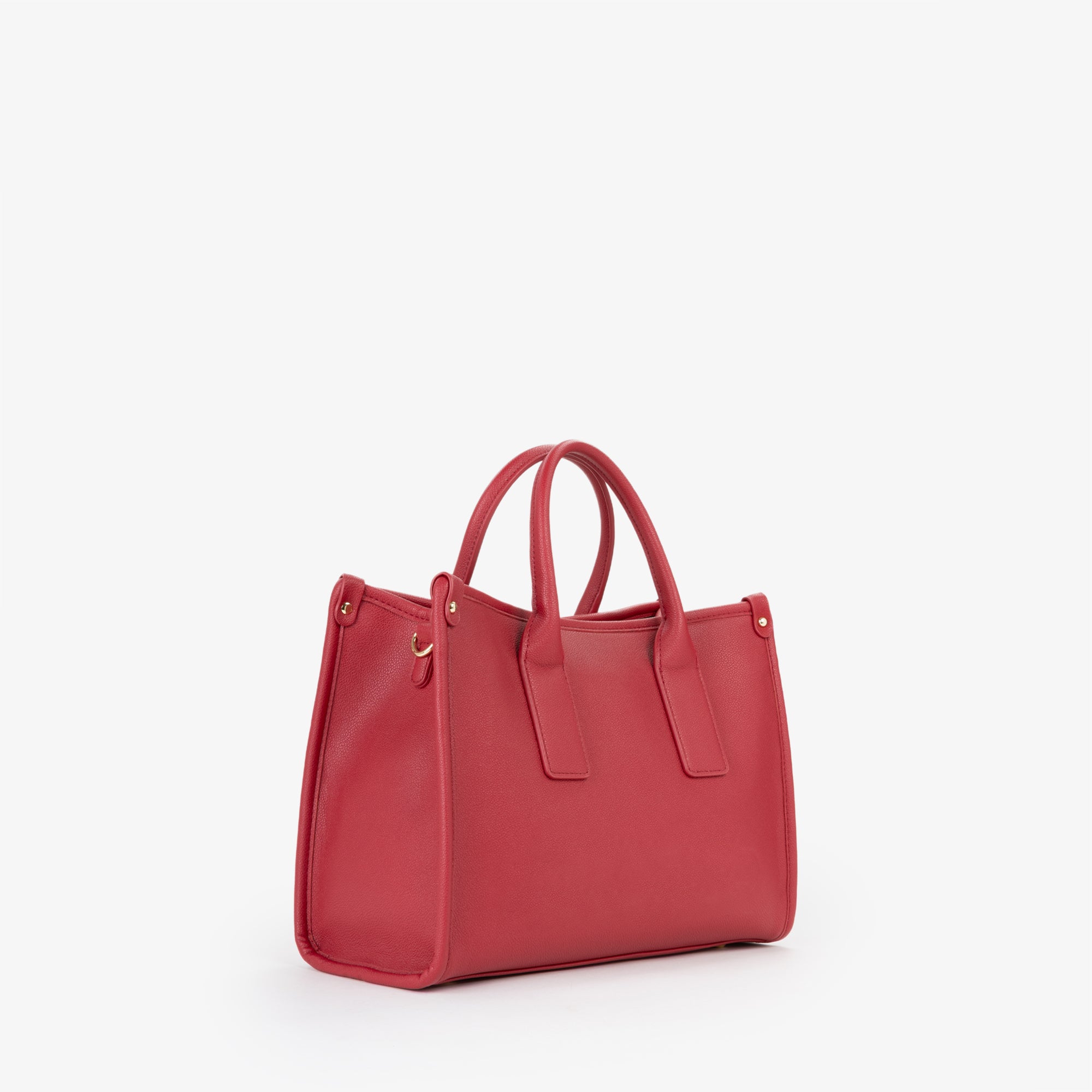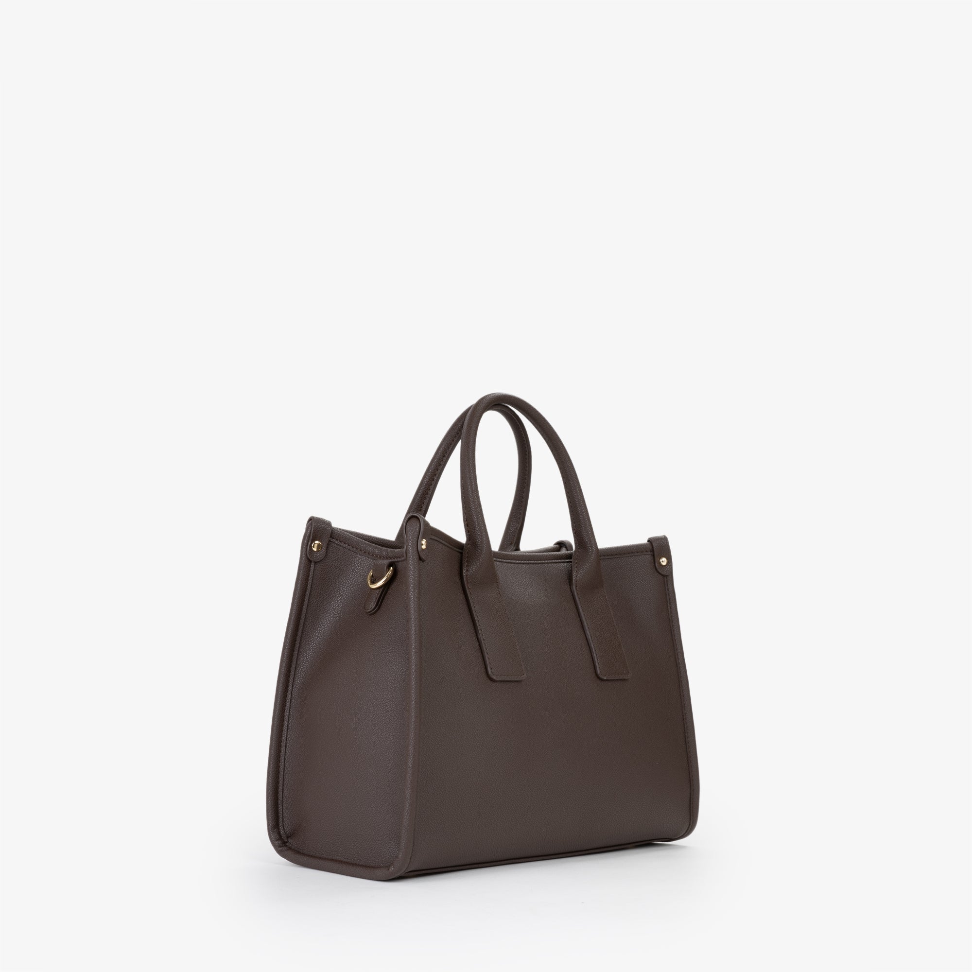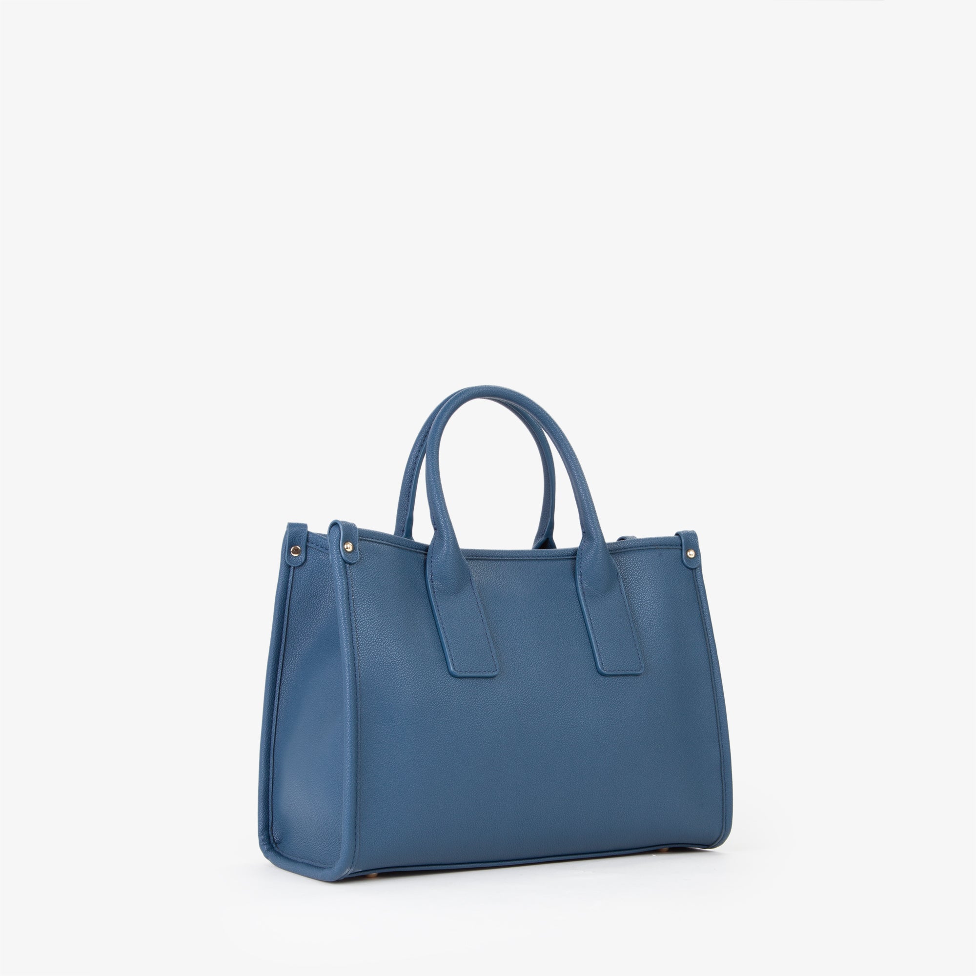 Shopper in grana con logo marchiato a fuoco. Dispone di una tracolla in nastro personalizzata e staccabile.