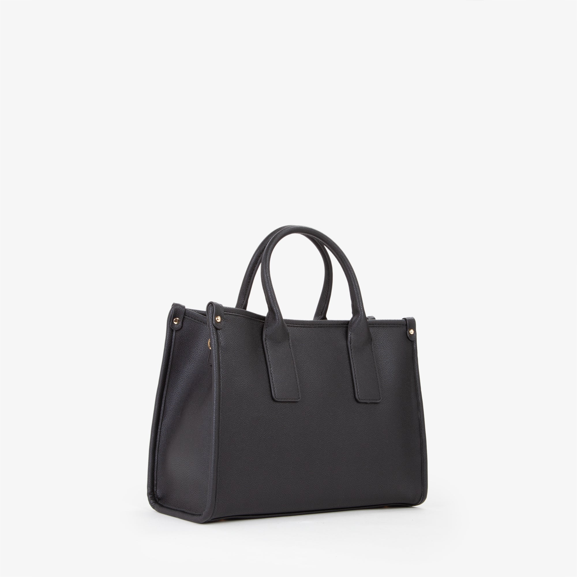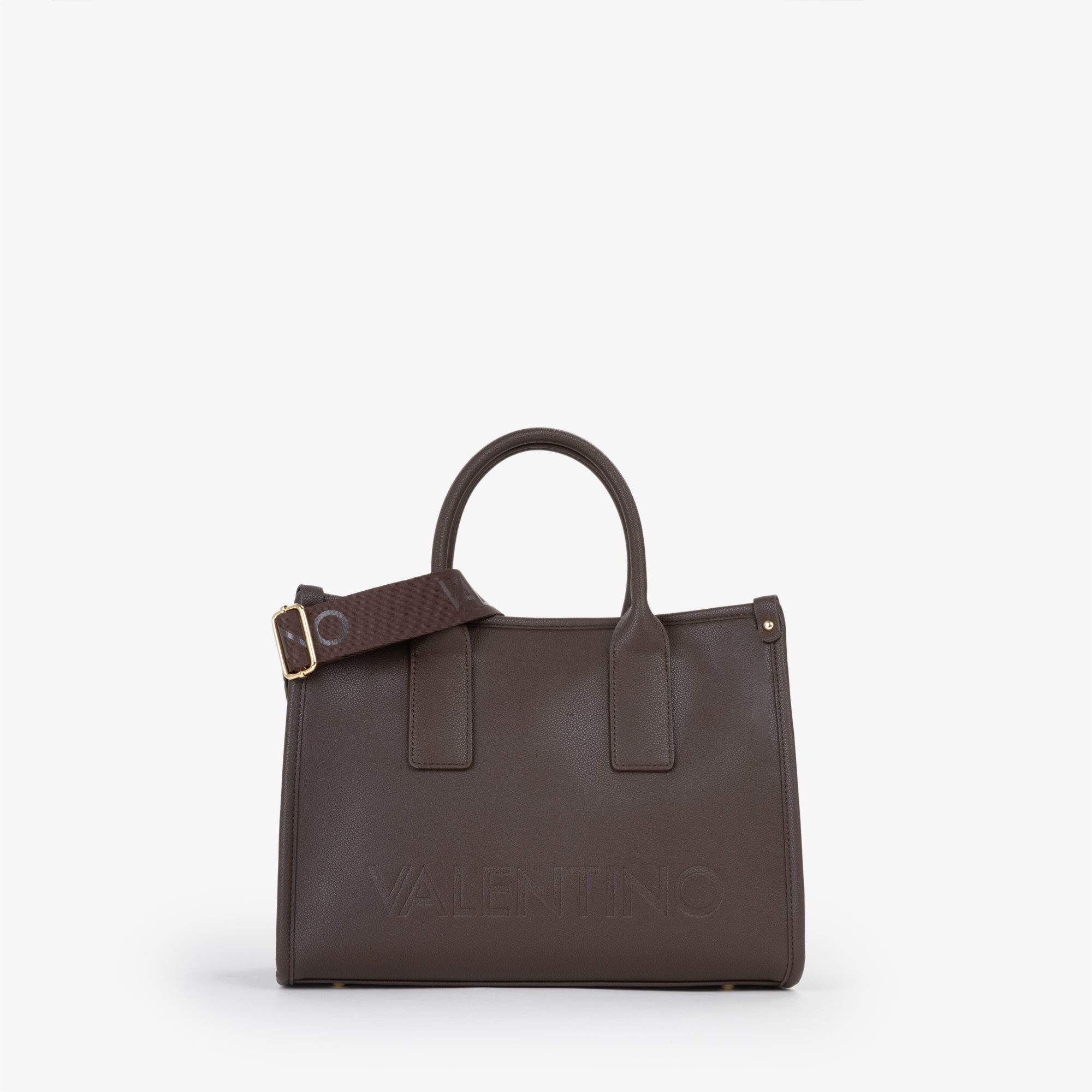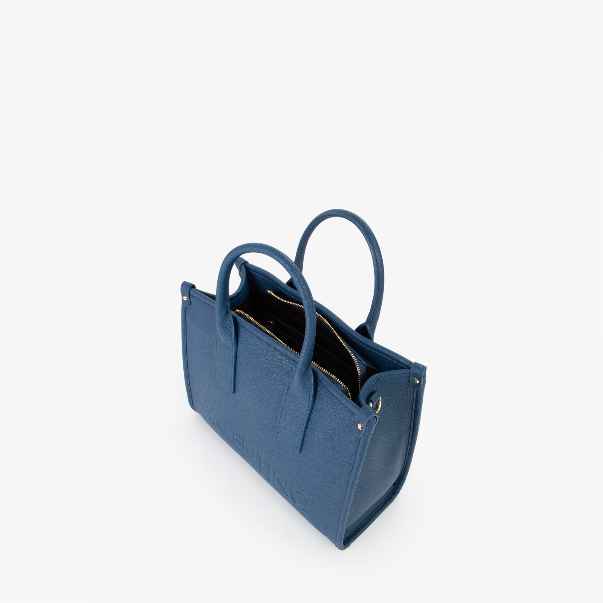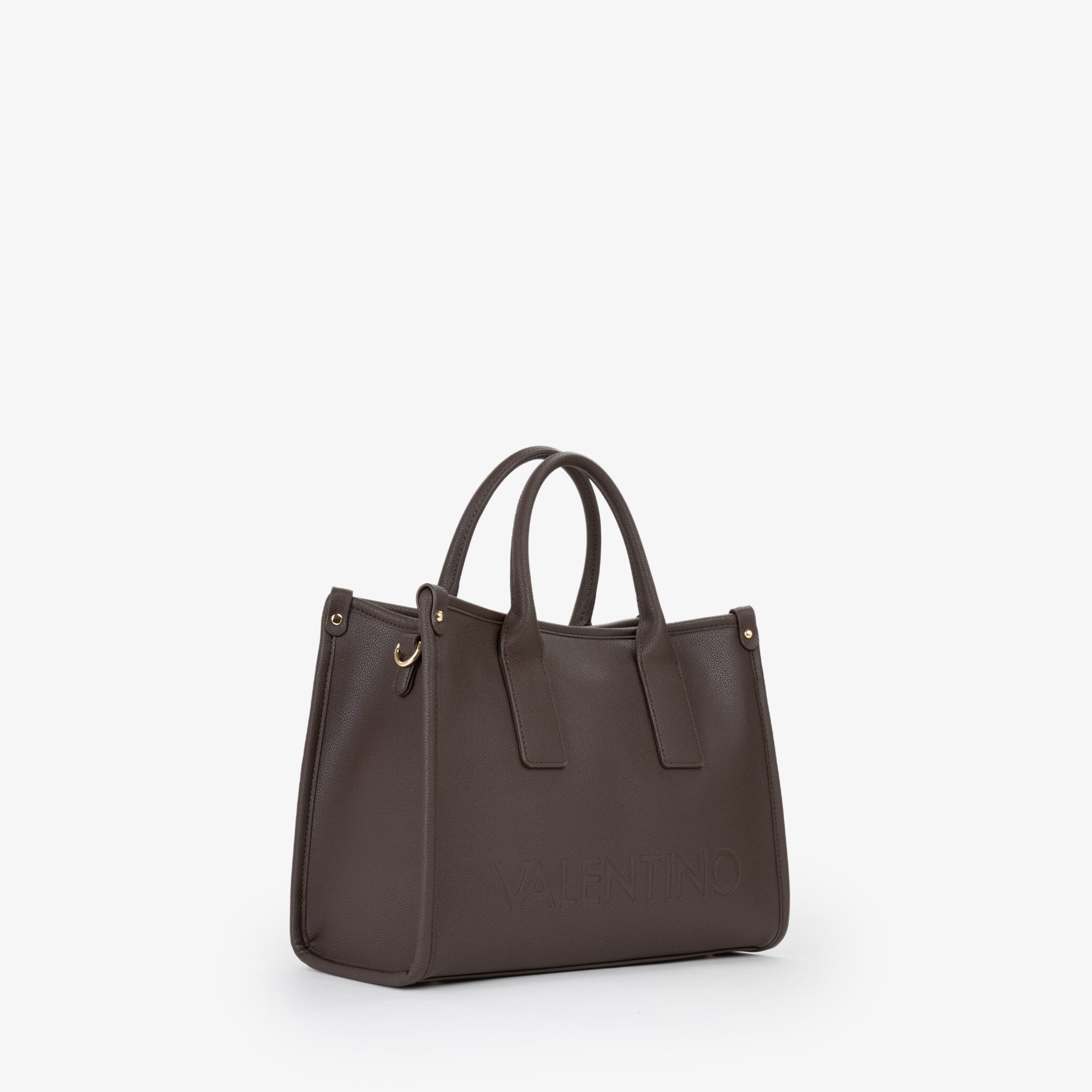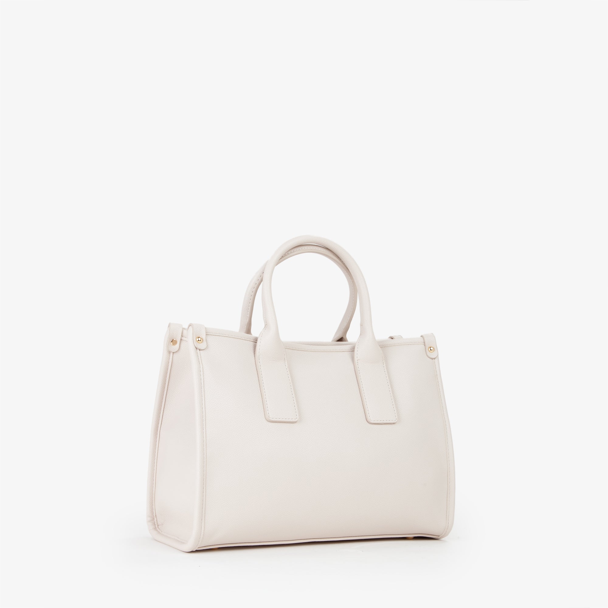 Shopper in grana con logo marchiato a fuoco. Dispone di una tracolla in nastro personalizzata e staccabile.