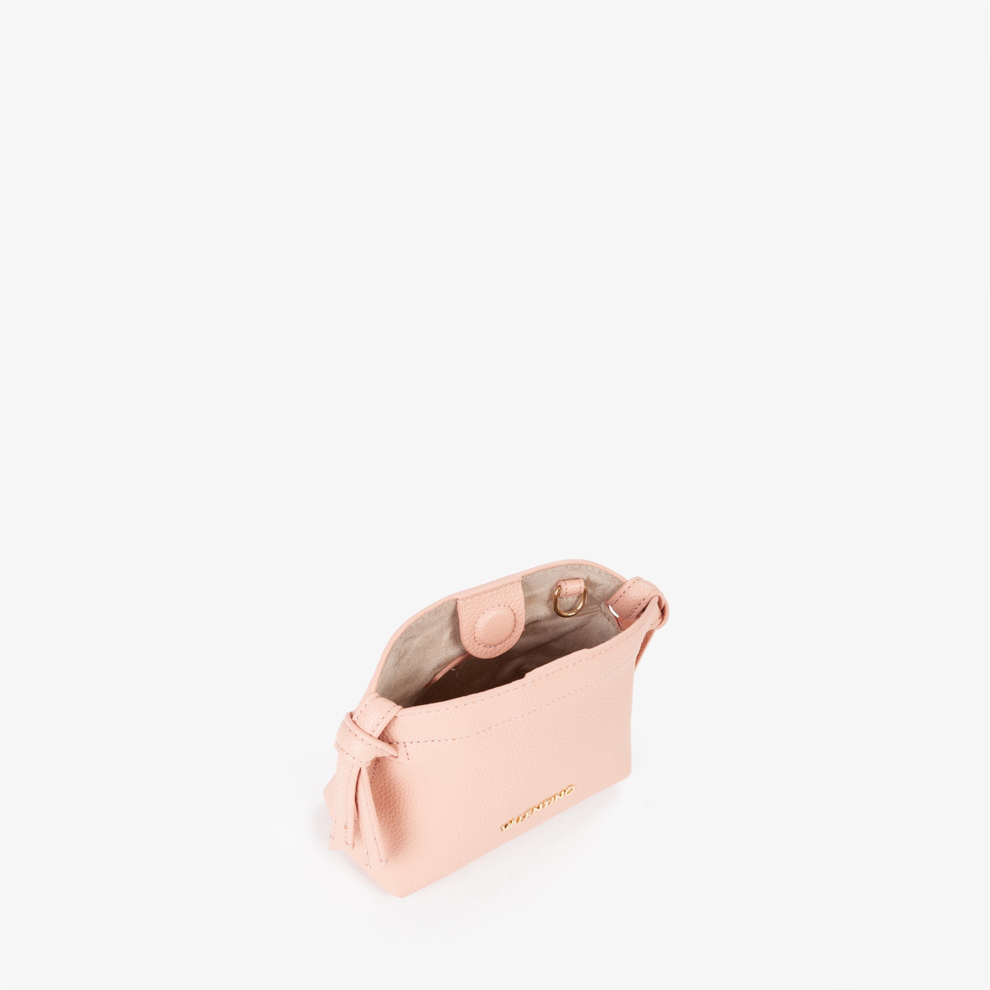 Tracollina a spalla, sfoderata, con interni in suede e logo lettering in metallo, dorato.