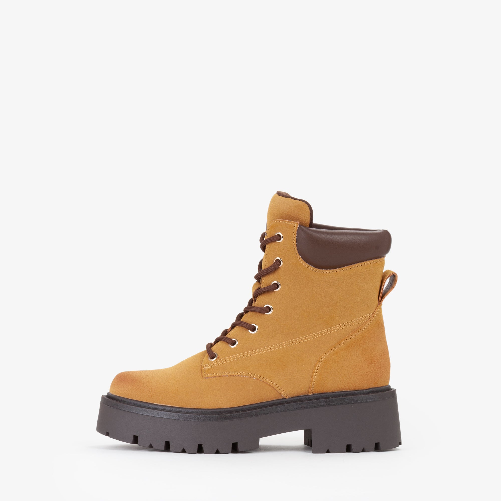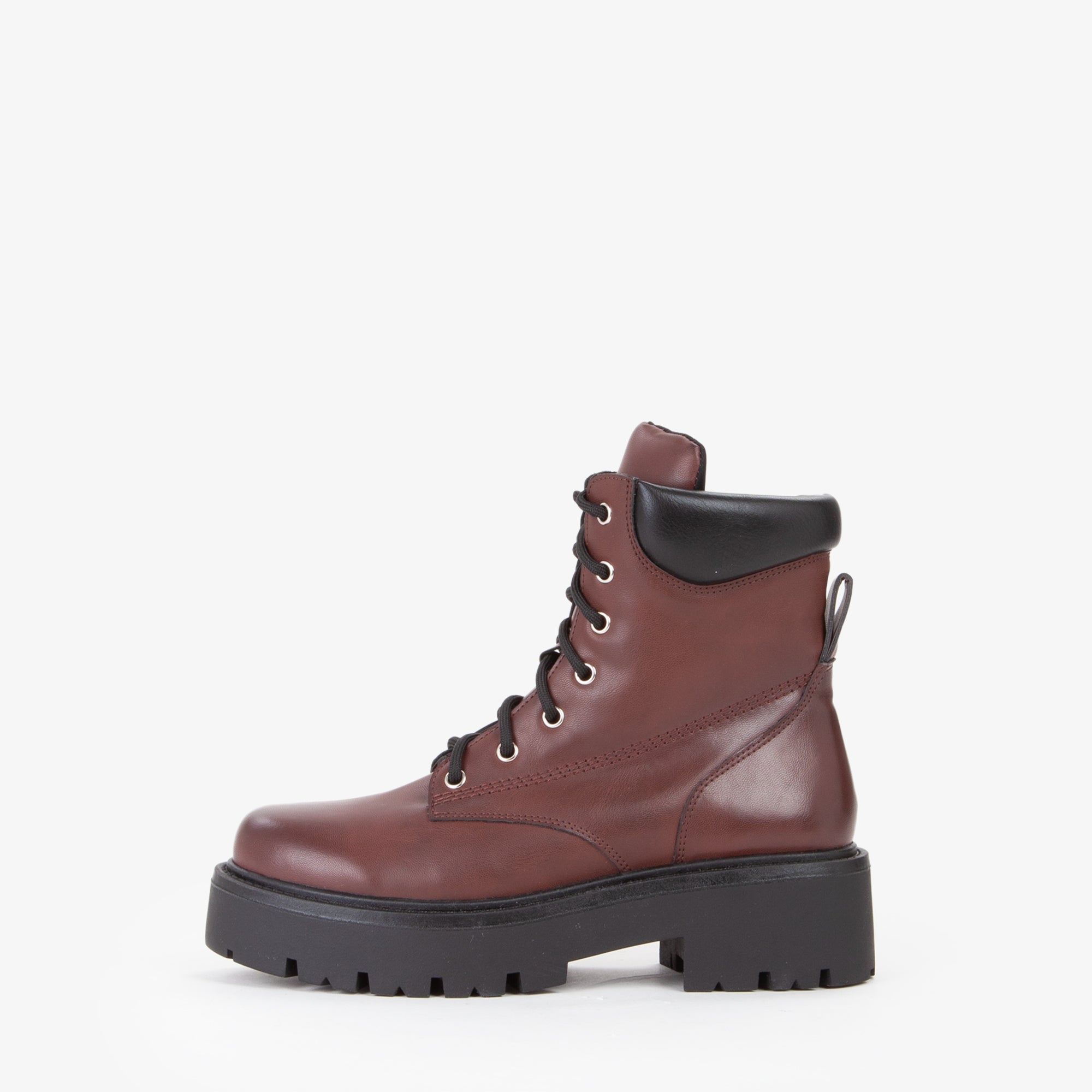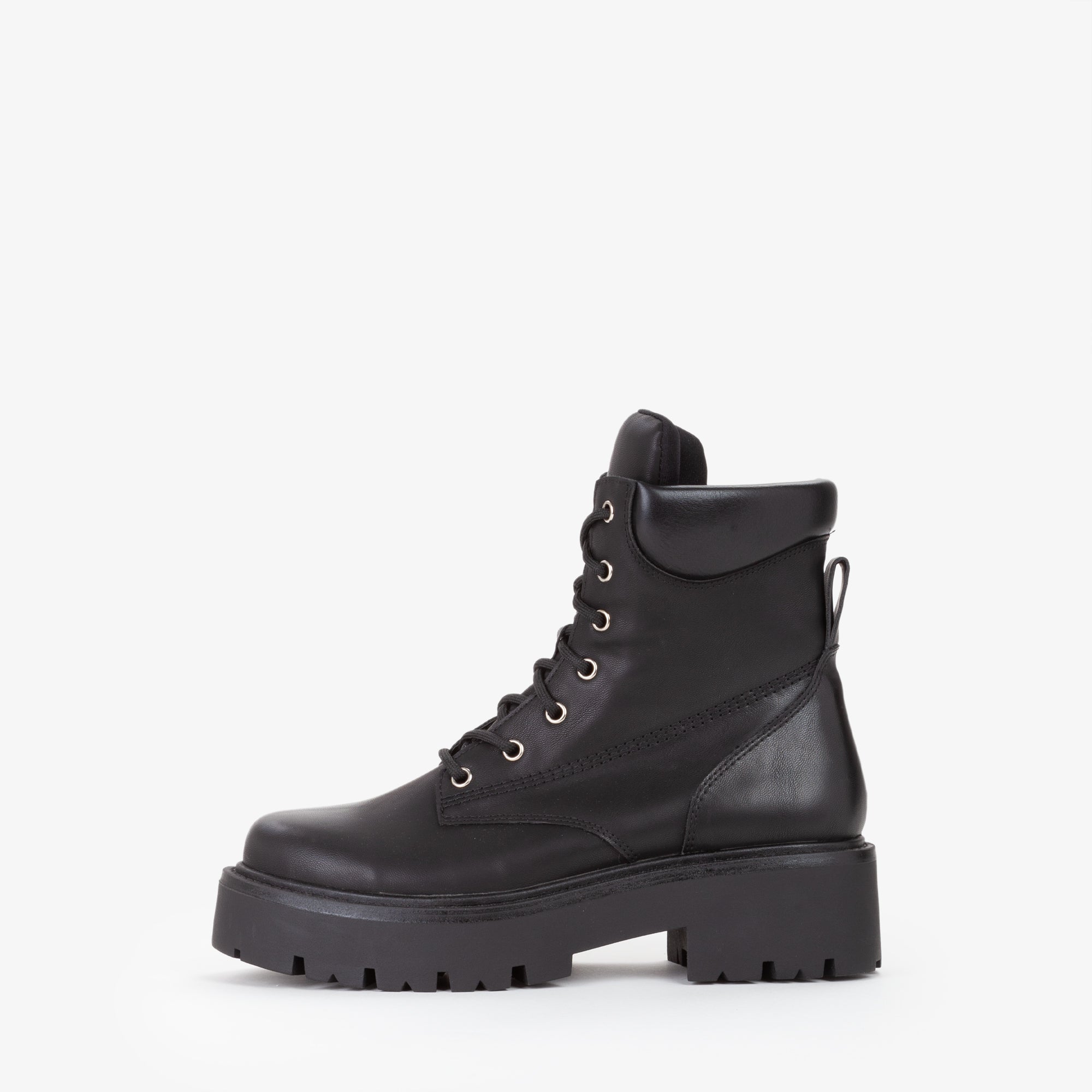 Anfibio stringato in materiale sintetico, con collo imbottito alla caviglia per un comfort superiore. La tomaia robusta è abbinata auna suola in gomma carrarmato che garantisce aderenza e stabilità su ogni superficie. Chiusura con lacci rinforzati e occhielli metallici per un fit sicuro e resistente. Perfetto per look casual e outdoor, ideale con jeans, maglioni e giubbotti per affrontare lastagione fredda con stile e funzionalità.