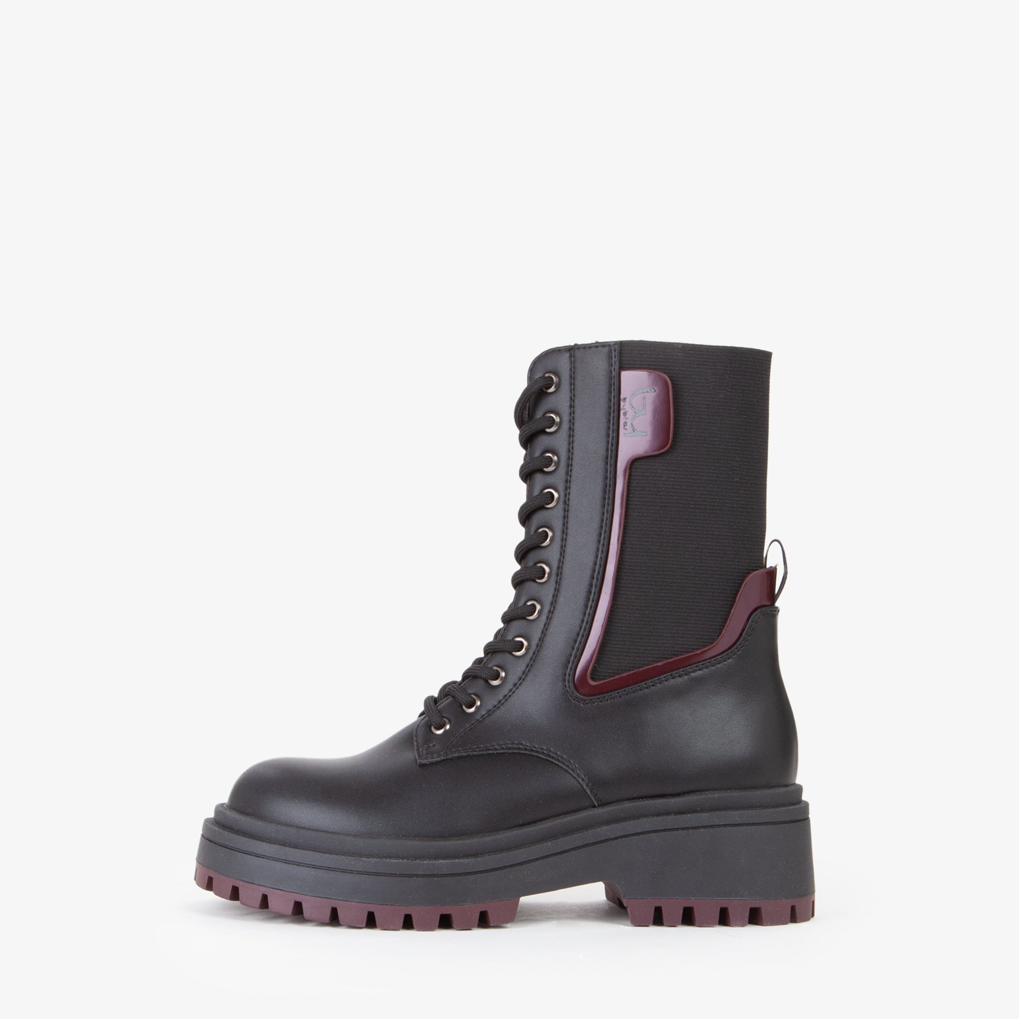 Anfibio bicolor, la calzatura perfetta per chi ama un look deciso e di tendenza. Unisce due tonalità a contrasto per un effetto originale e fashion. La suola chunky dentellata garantisce stabilità e comfort, mentre la chiusura con lacci assicura una calzata perfetta. Ideale per completare outfit casual, streetwear e urban chic.