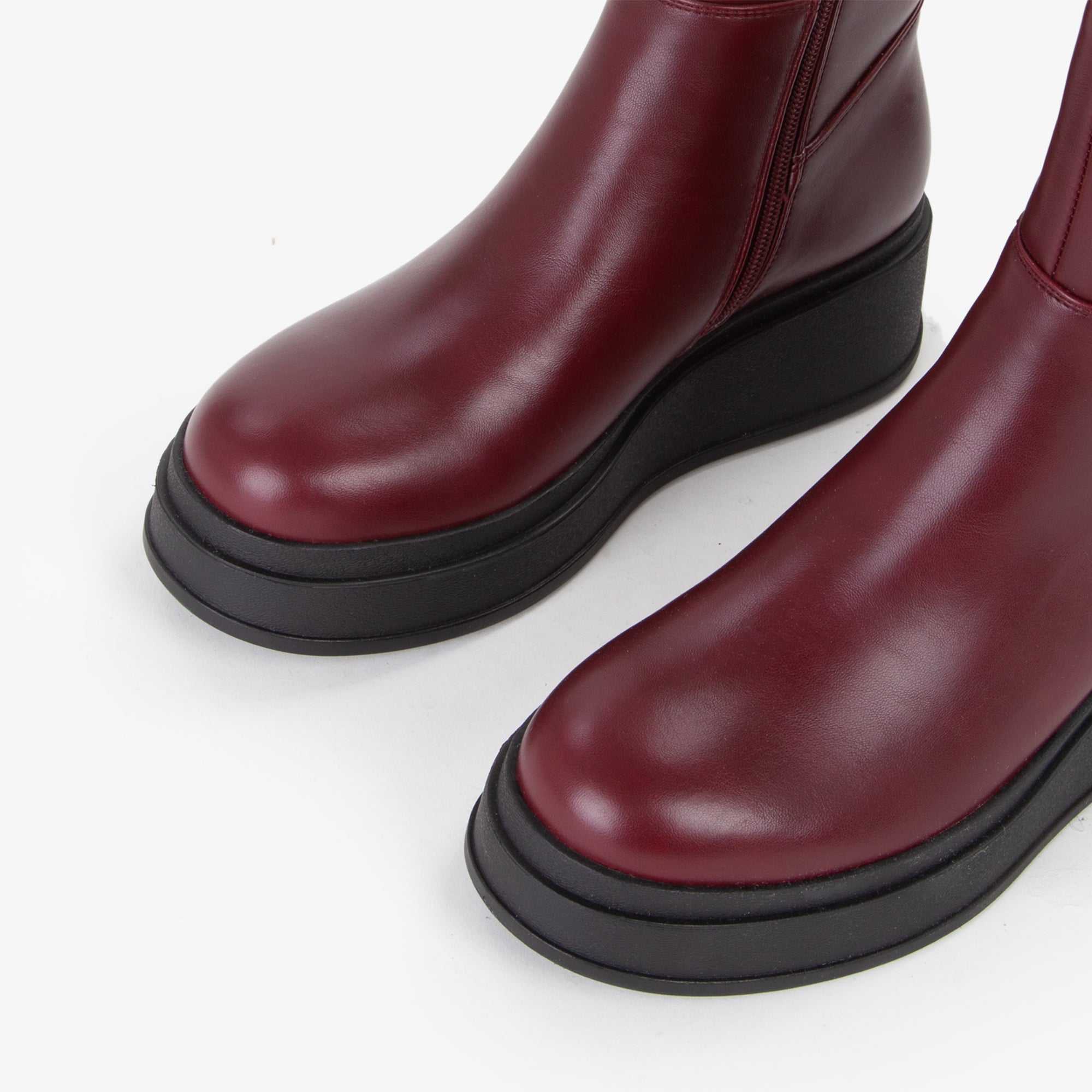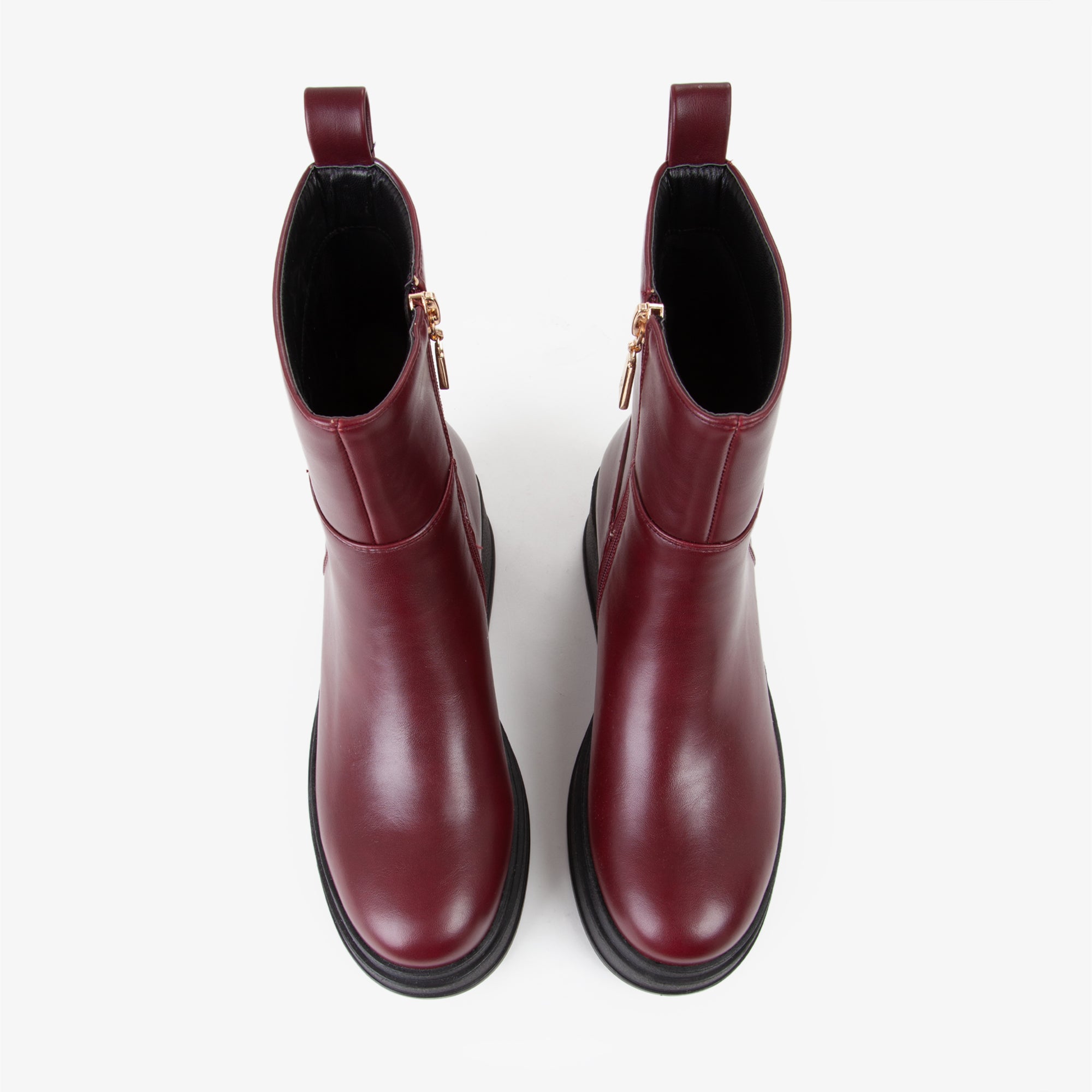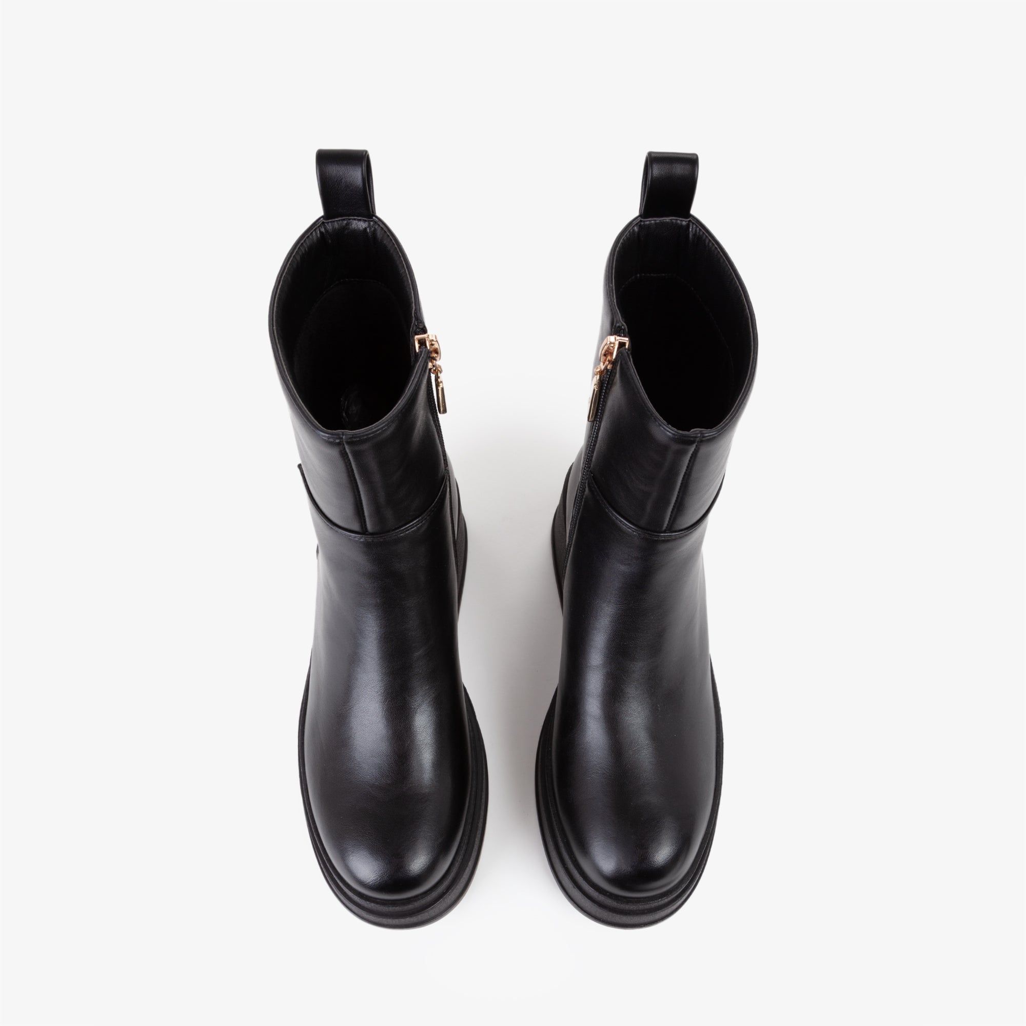 Questo stivaletto presenta una tomaia in materiale sintetico effetto liscio, caratterizzata da linee pulite e una silhouette minimalista. Il logo tono su tono è impresso lateralmente in modo discreto, aggiungendo un dettaglio distintivo senza appesantire il design. La suola è una zeppa in gomma, leggermente rialzata, che offre comfort e una buona stabilità, ideale per un uso prolungato. La chiusura è agevolata dalla presenza di una linguetta posteriore. Perfetto per outfit casual-chic o urbani, si abbina bene a jeans skinny o pantaloni a sigaretta per un look moderno e versatile.