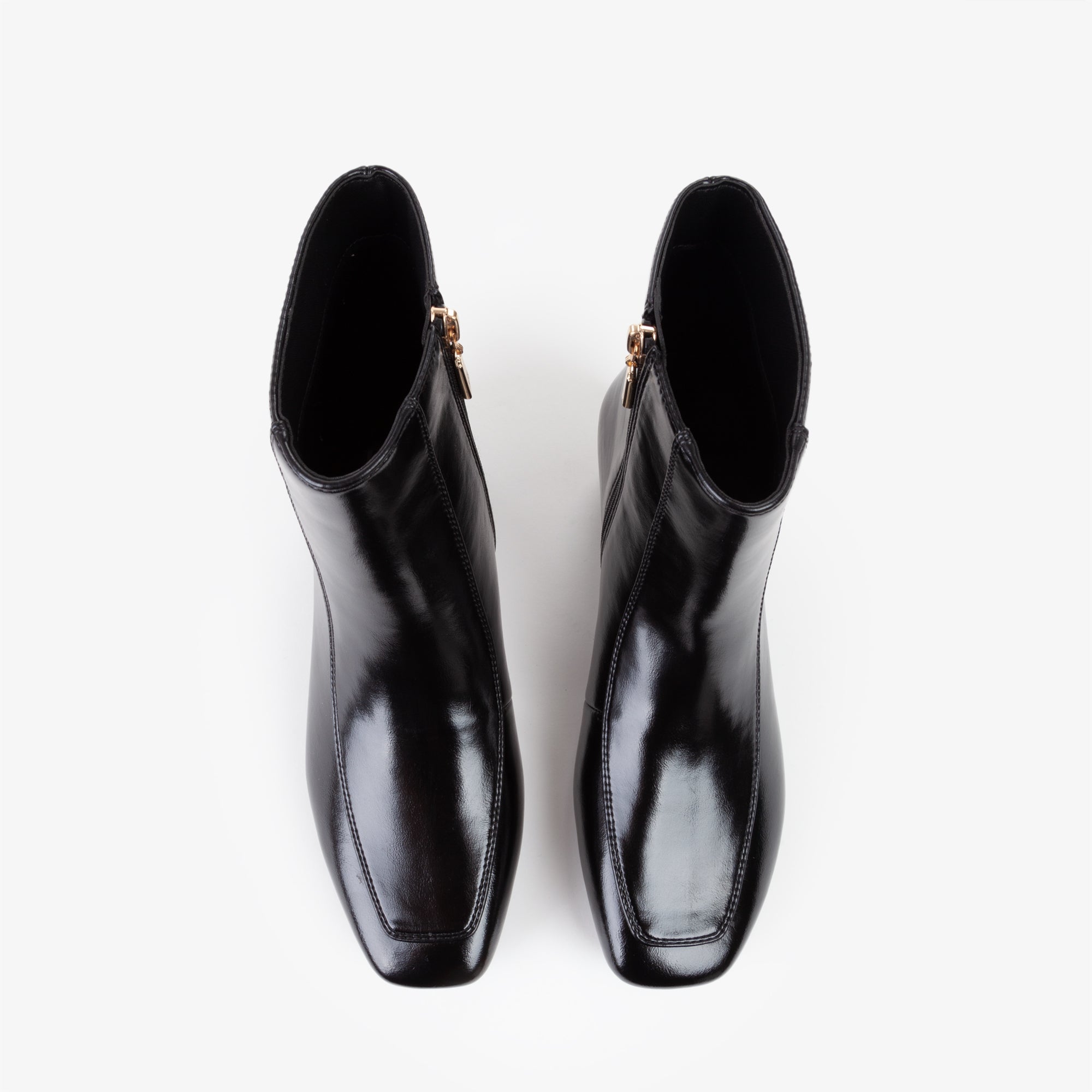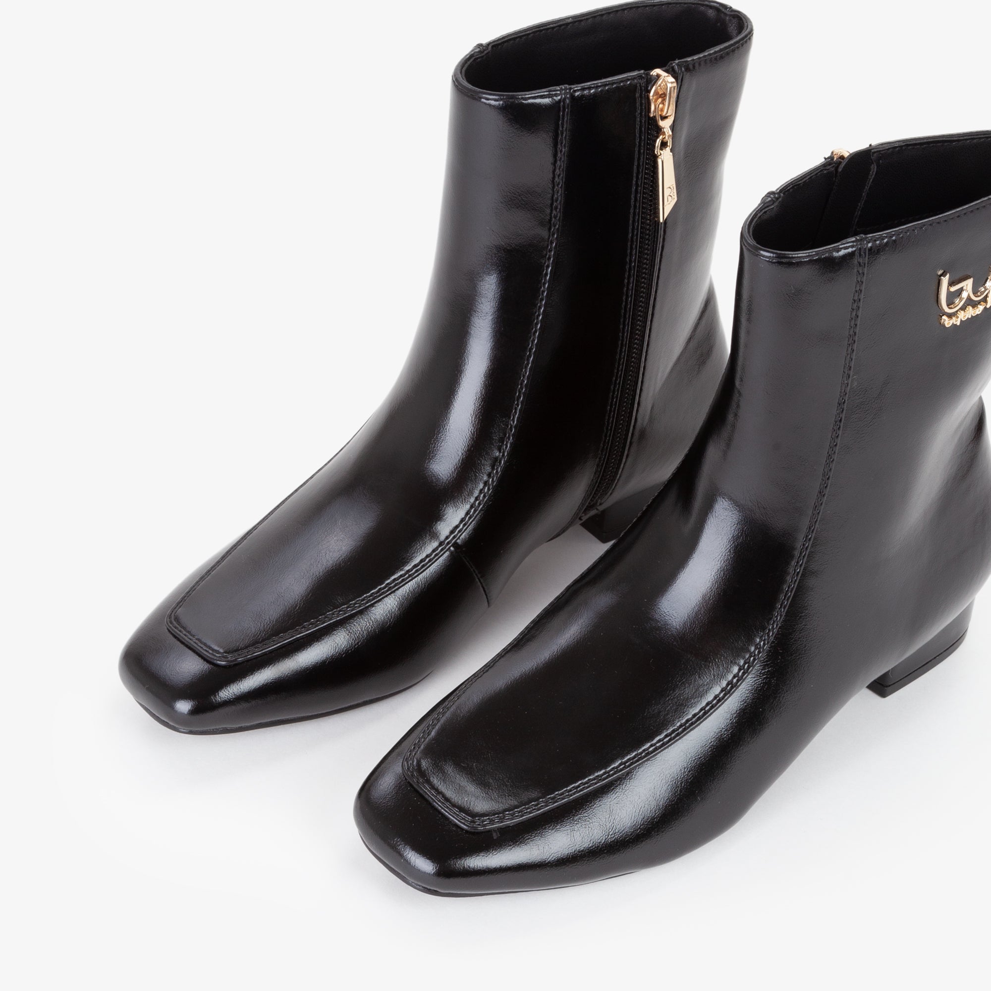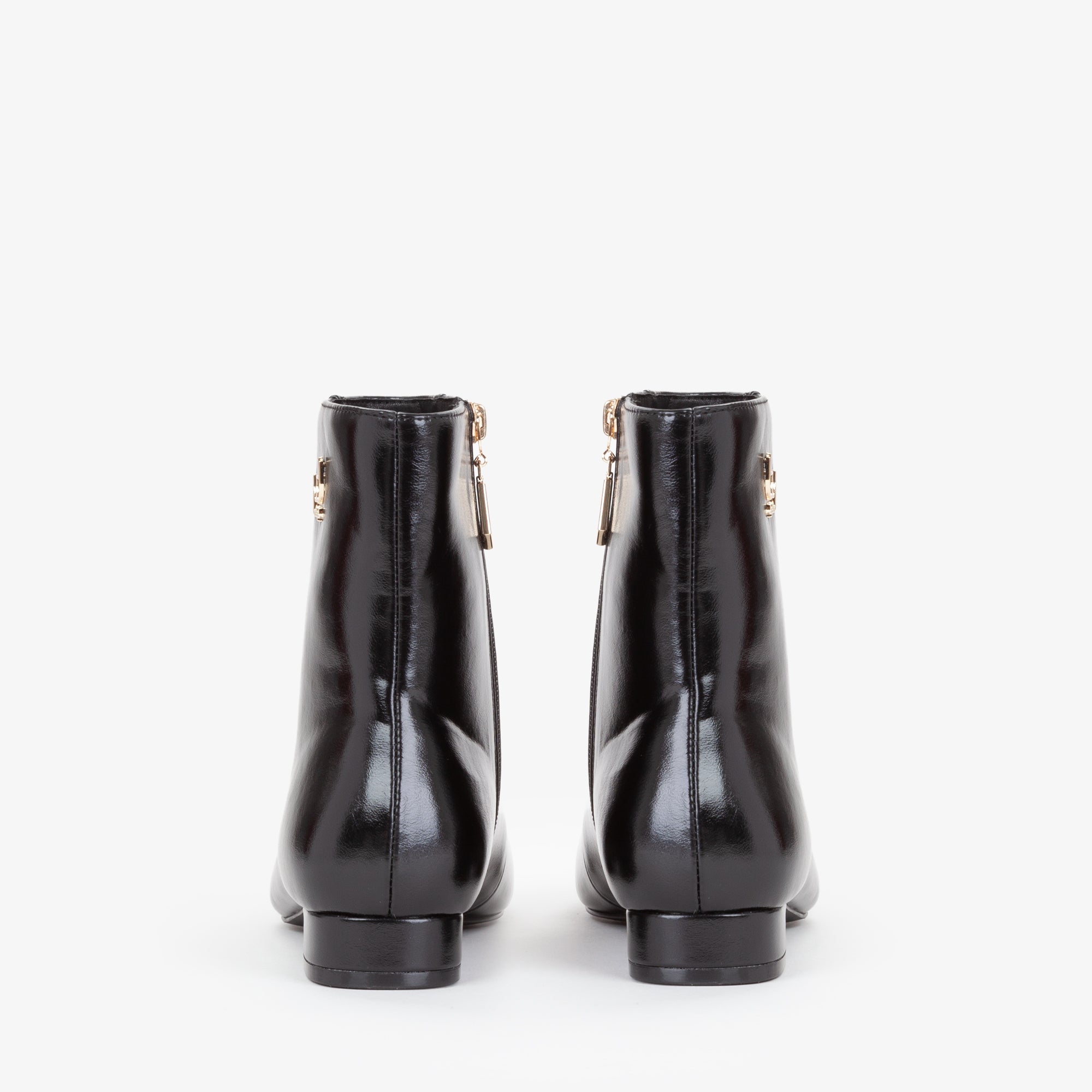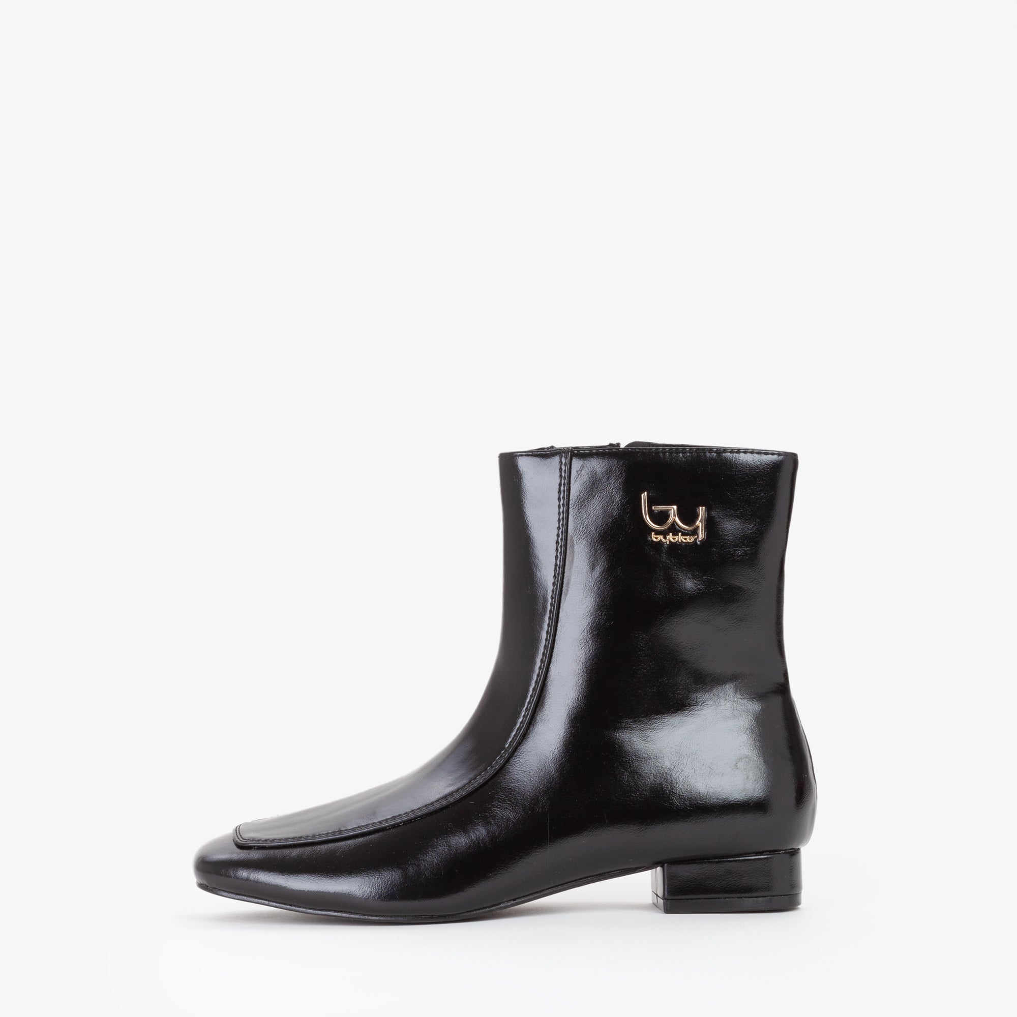 Tronchetto dall'aspetto minimal e sofisticato, realizzato in materiale sintetico lucido, che dona carattere. Il mix perfetto tra eleganza e praticità. Presenta tacco basso, ideale per uso quotidiano senza rinunciare al comfort. Perfetto da abbinare a jeans skinny,pantaloni sartoriali o abiti midi per un look sempre impeccabile.undefined