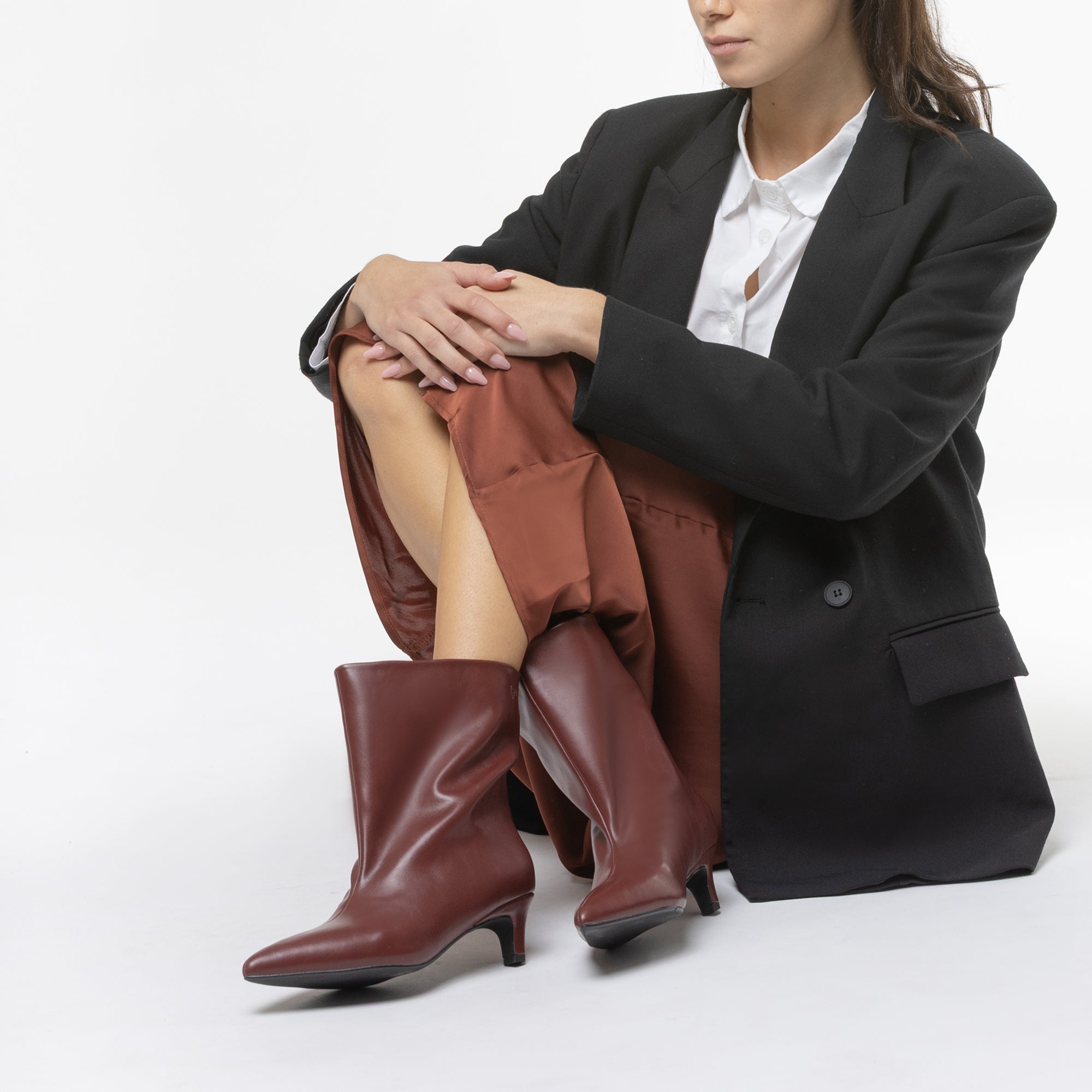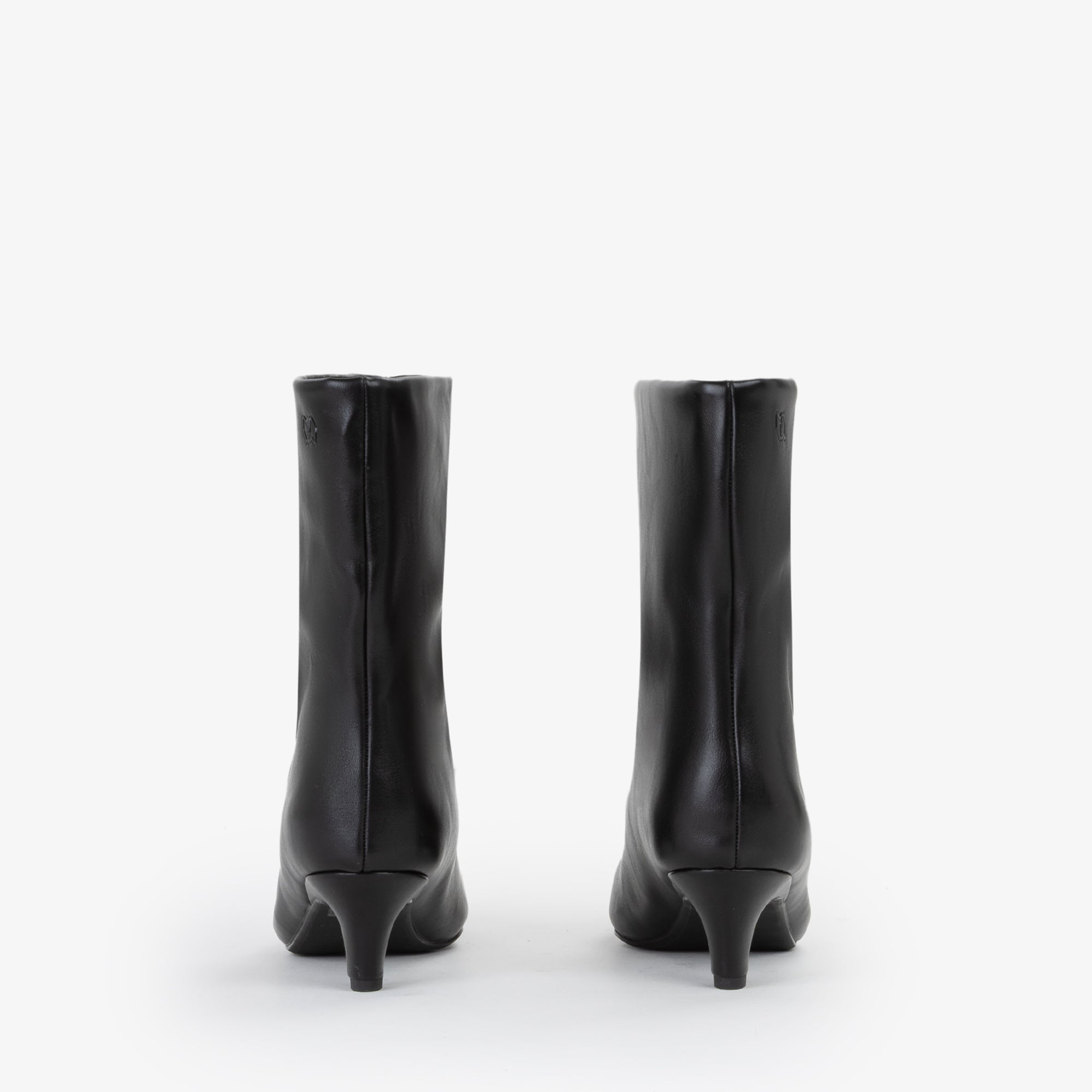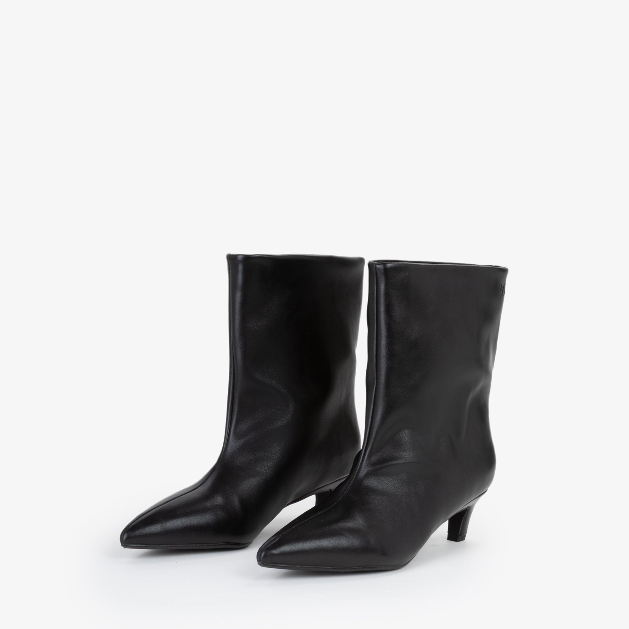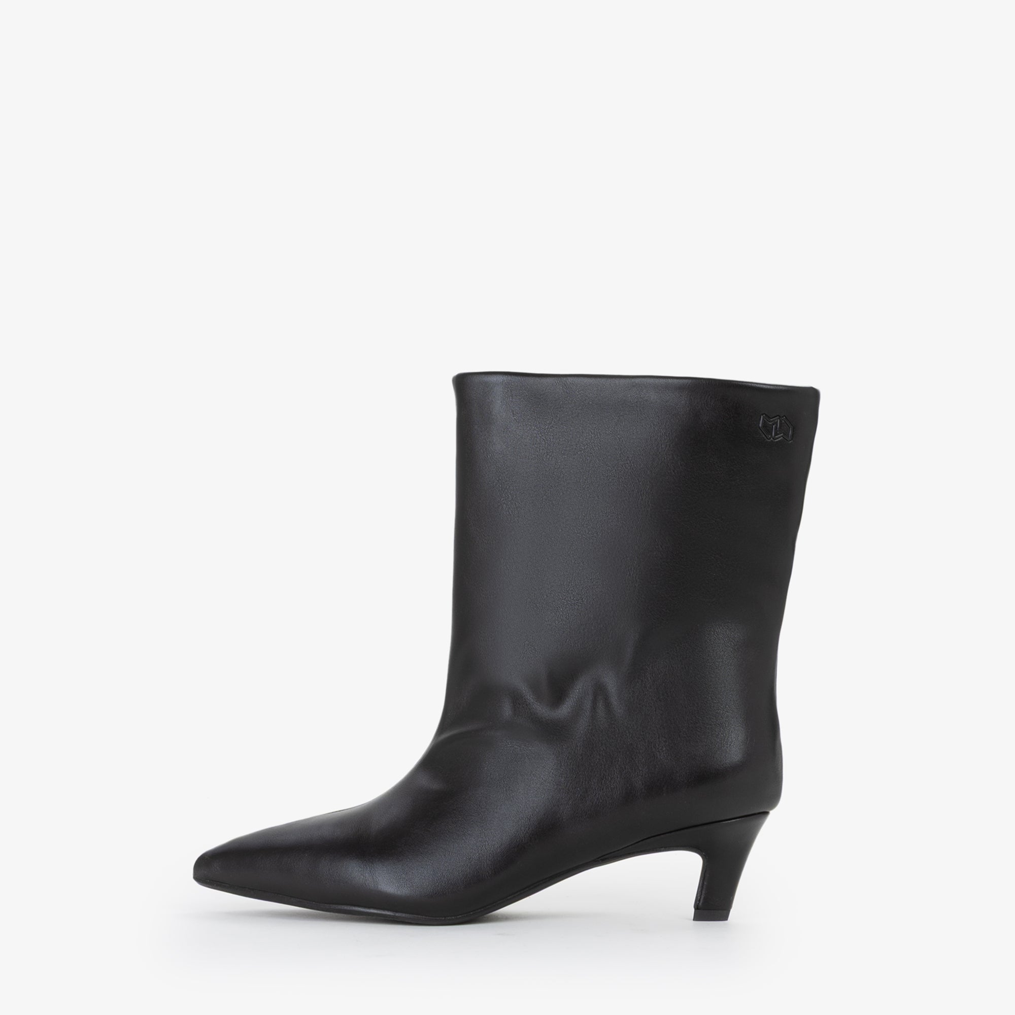 Questo stivaletto in sintetico si caratterizza per una silhouette morbida e leggermente arricciata lungo la parte superiore del gambale, con una punta affusolata che slancia il piede. Il tacco basso, stondato e leggermente curvato verso linterno, conferisce un tocco di femminilità contemporanea senza rinunciare alla comodità. La suola è realizzata in gomma antiscivolo, garantendo durata e comfort durante la camminata. Il design minimalista è impreziosito dal piccolo logo metallico dorato posizionato sul lato esterno del gambale, ideale per look eleganti ma anche casual raffinati. Ottimo da abbinare a outfit autunnali e invernali per un tocco di stilesobrio e moderno.