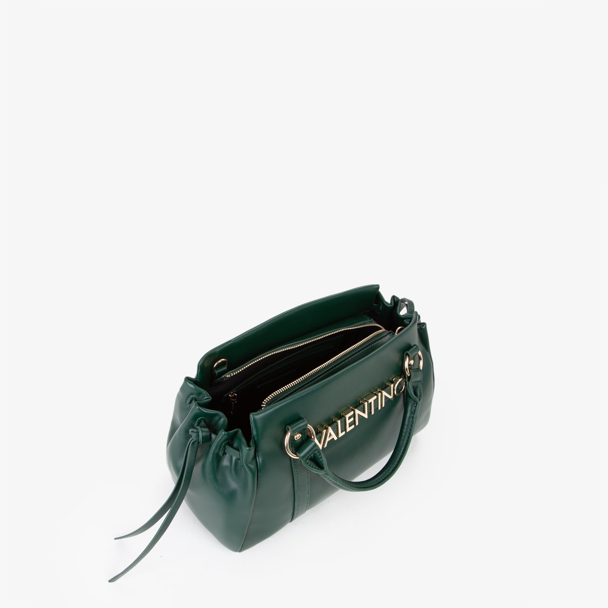 Shopping a mano, dalle piccole dimensioni, con logo in lettere metalliche grandi.