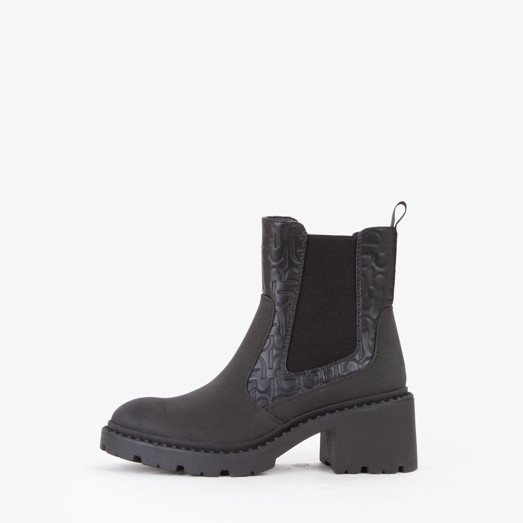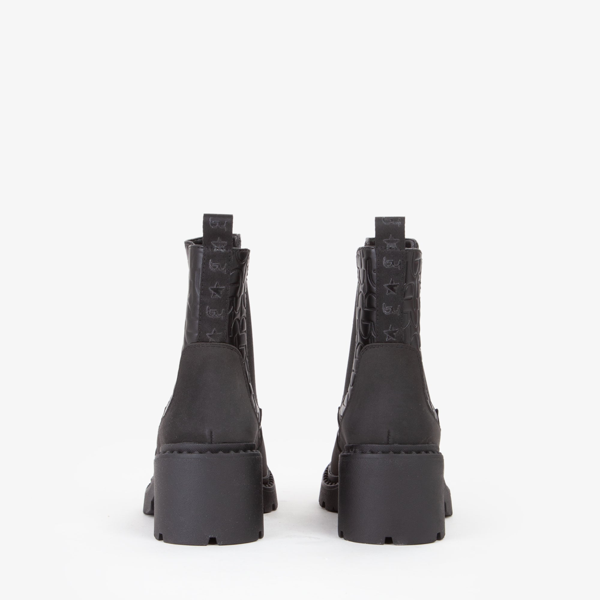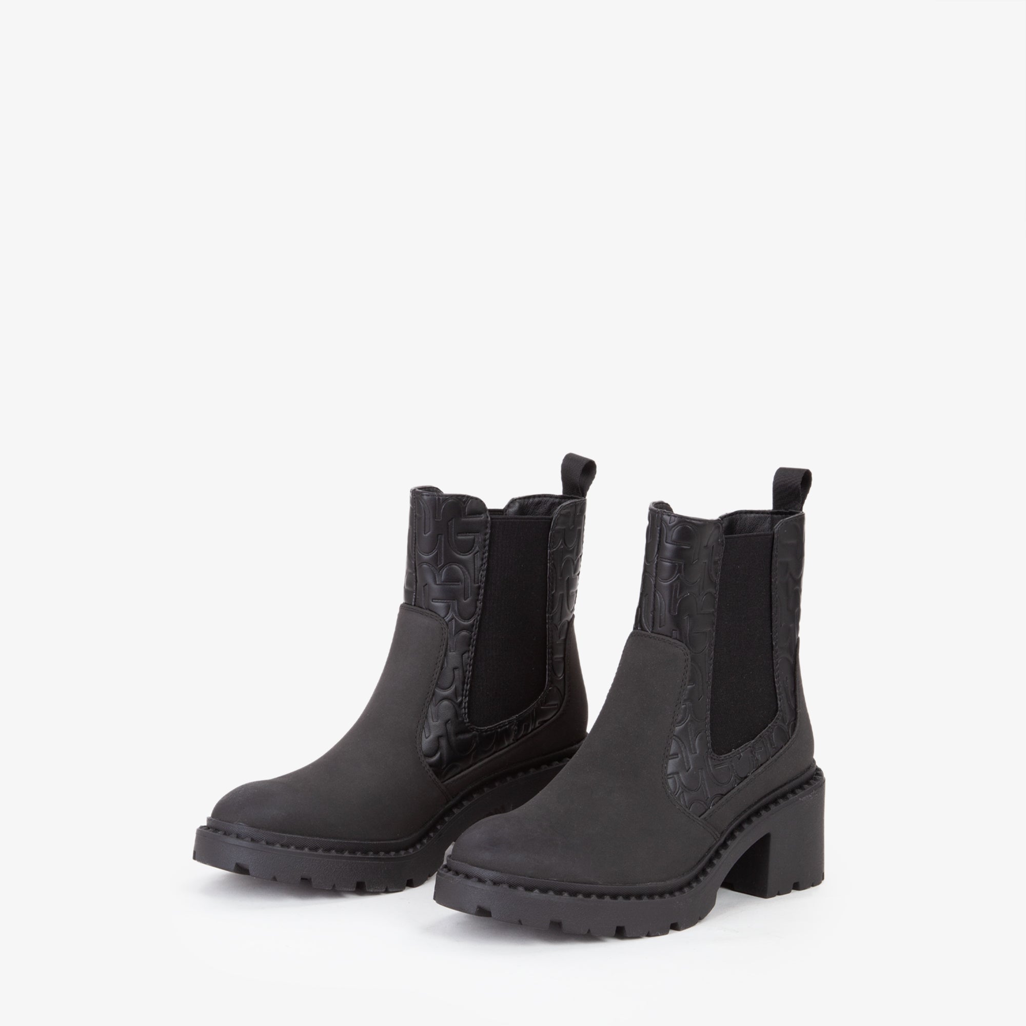 Questa scarpa è un tronchetto in materiale sintetico, con un design moderno e dinamico. La tomaia è arricchita da un pattern logatosul lato in gomma, mentre l'elastico laterale garantisce facilità nell'indosso. Il fondo è alto, con un tacco quadrato robusto e unasuola dentellata in gomma, che offre comfort e aderenza. Questo modello è perfetto per un look streetwear elegante, ideale da abbinare a pantaloni slim o gonne midi, per un outfit casual ma di tendenza. Ottimo per il tempo libero o per occasioni semi-formali.undefined