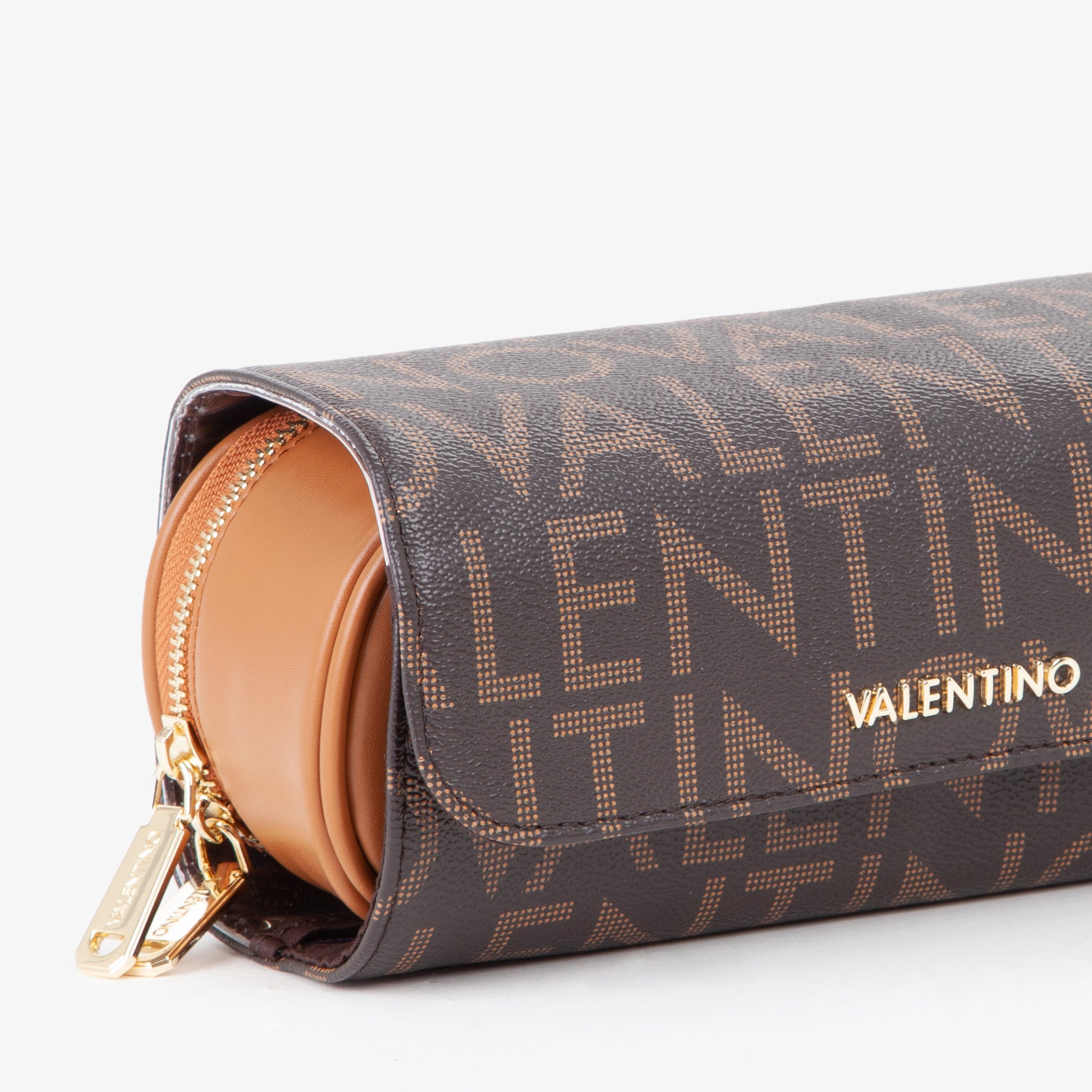 necessarie con stampa all over logato su base grana riciclata esternamente, e dettagli in nappa