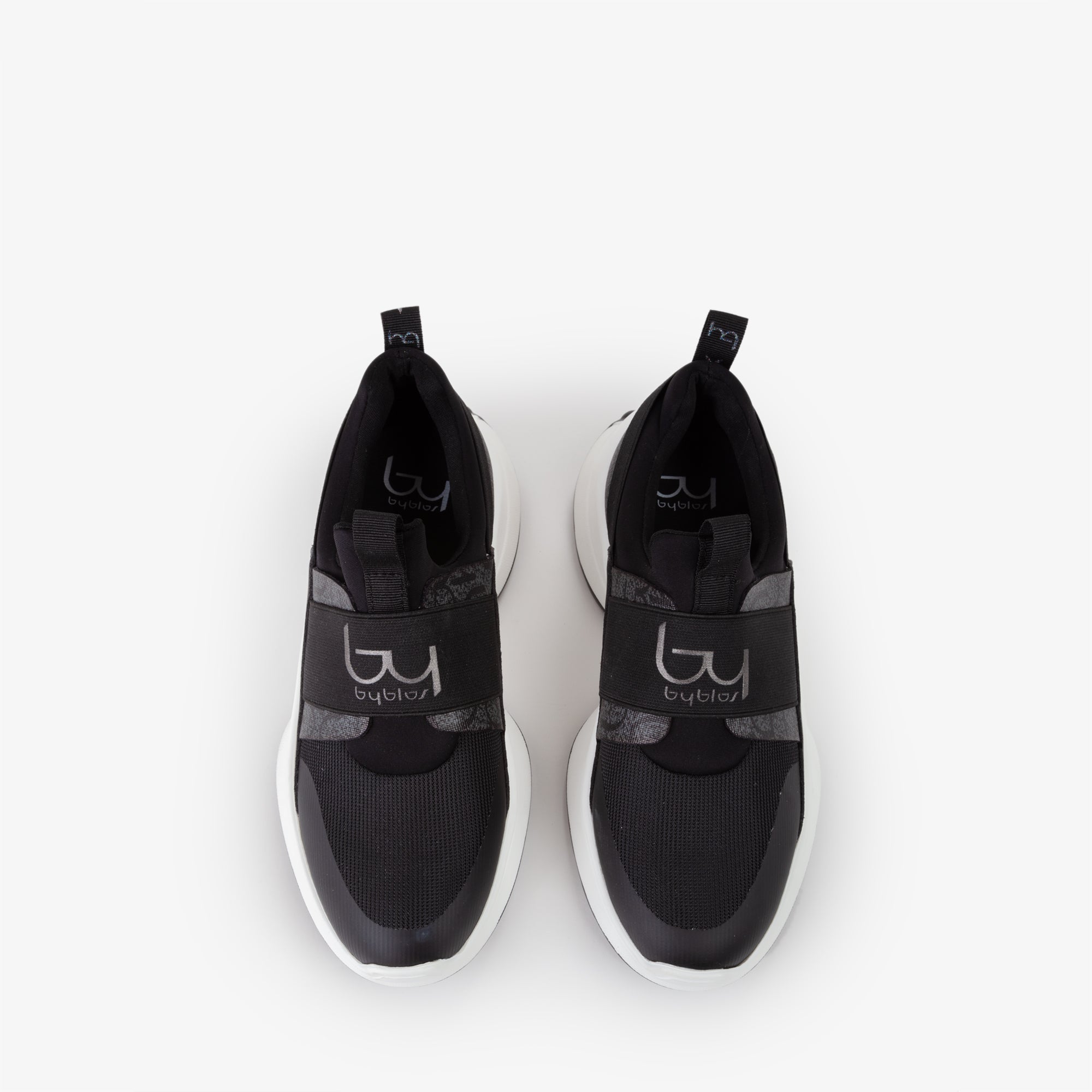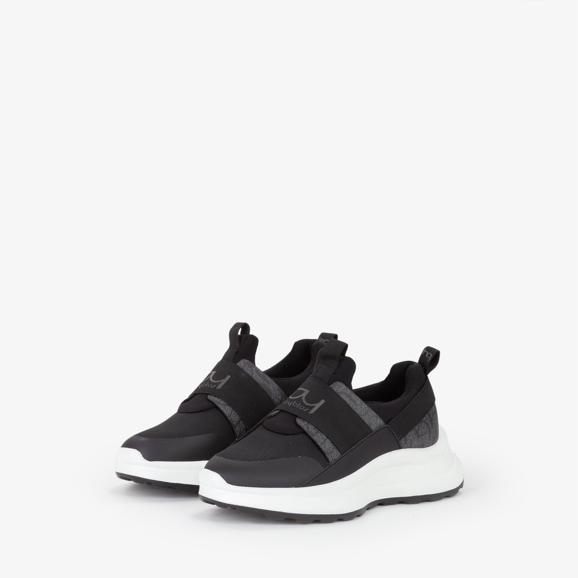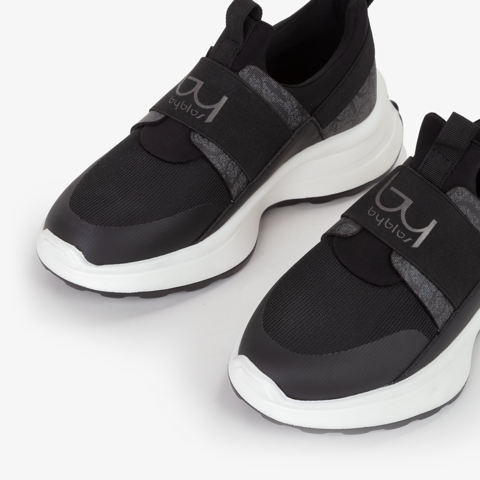Sneaker slip-on dal design sporty-chic, perfetta per chi cerca comfort e stile in un solo gesto. Realizzata in tessuto tecnico nerocon dettagli grigio mélange e fascia elastica frontale che avvolge il piede, garantendo una calzata sicura e veloce. I dettagli sonoimpreziositi da inserti monogram tono su tono, mentre la suola chunky con battistrada nero dona slancio e massima aderenza. Idealeper look casual dinamici, dalla passeggiata in città al weekend fuori porta.undefined