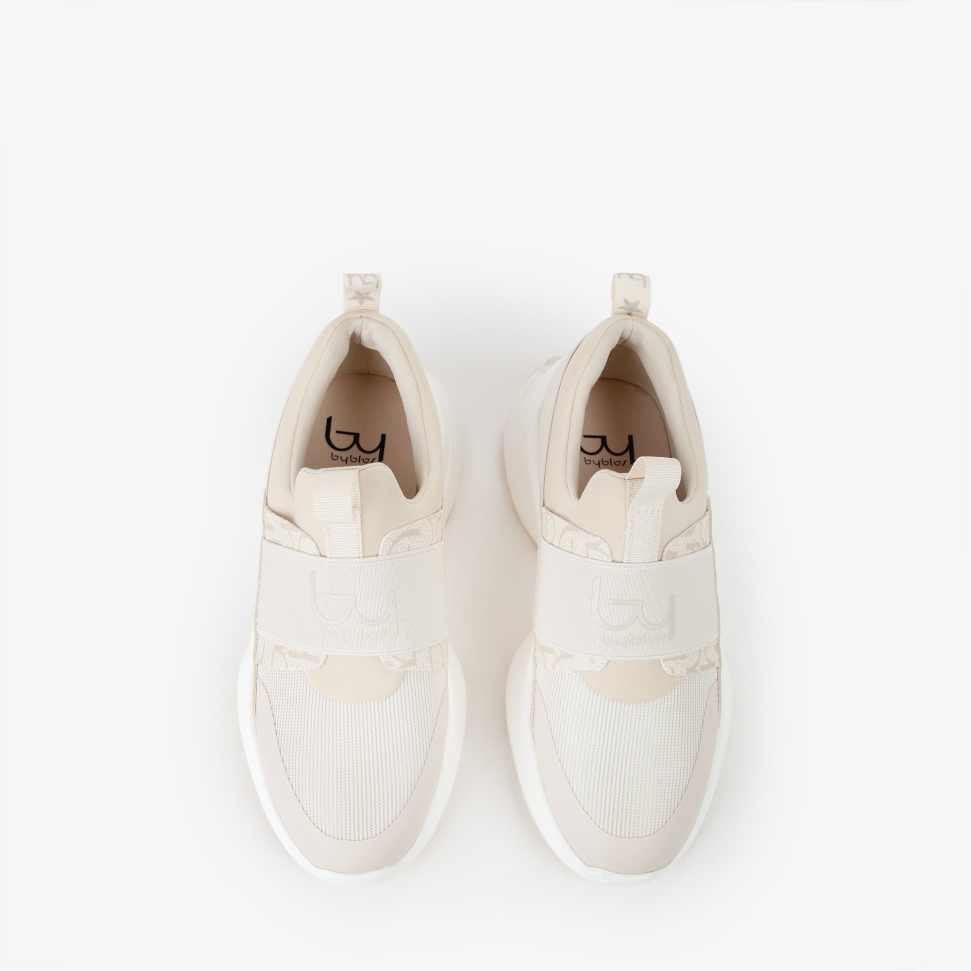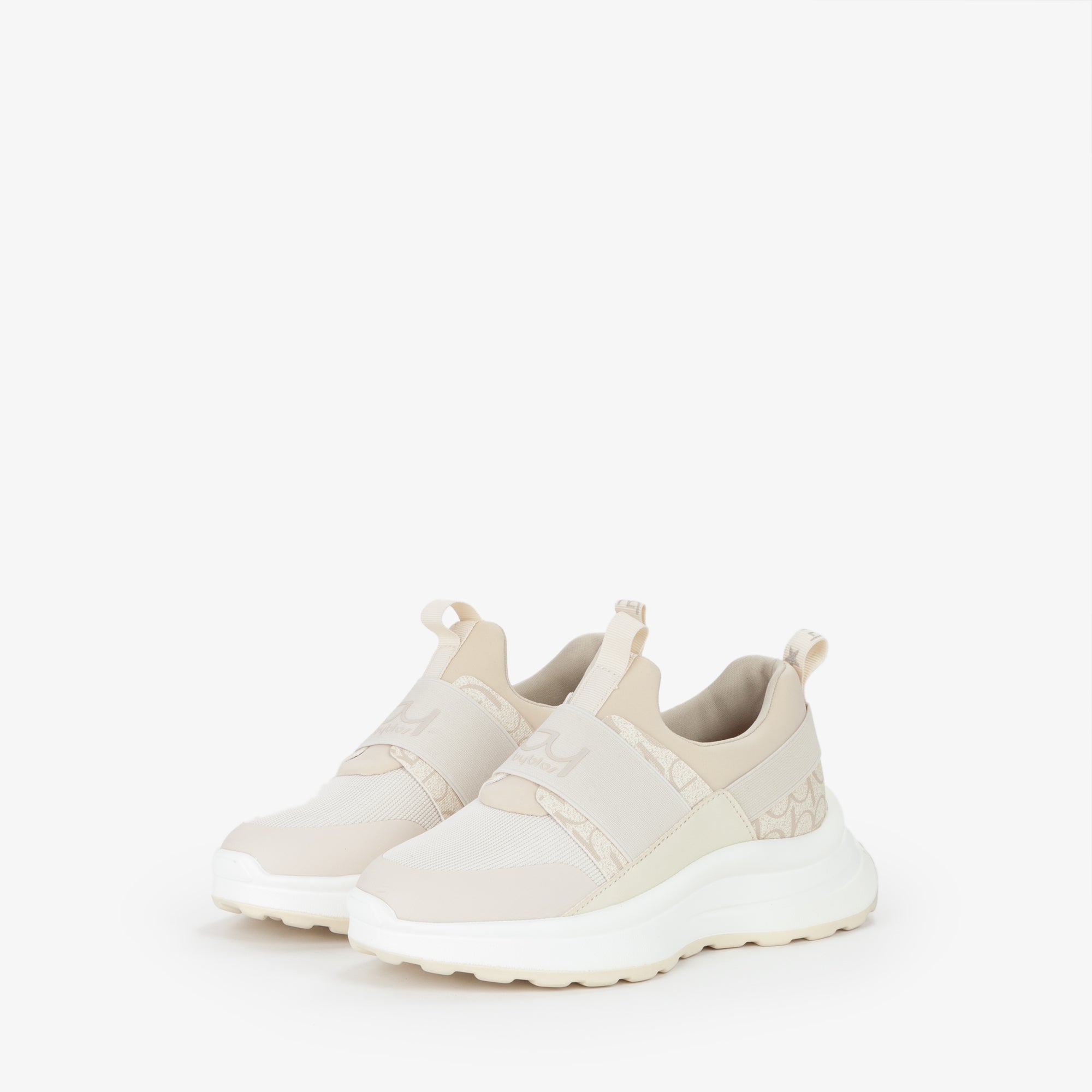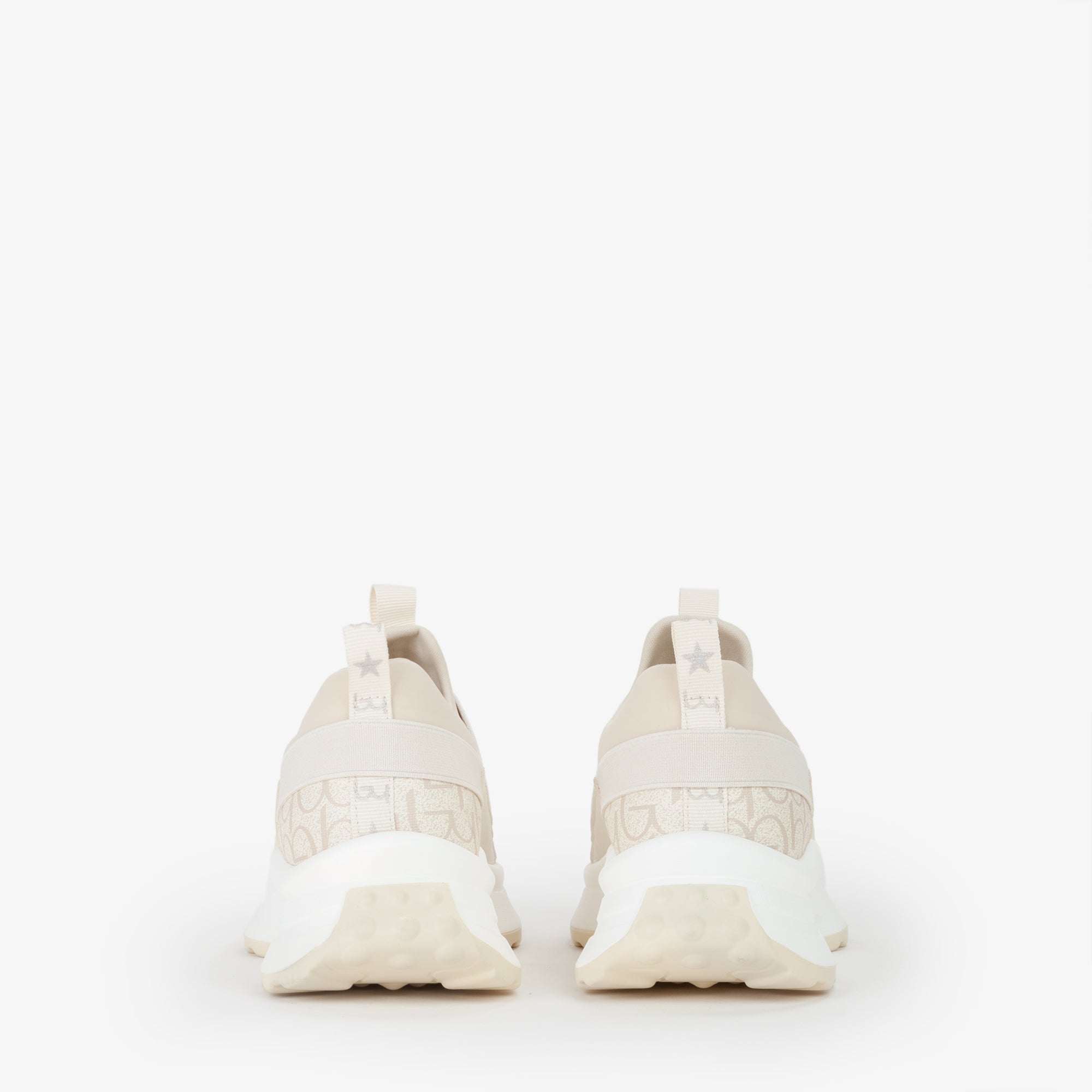 Sneaker slip-on dal design sporty-chic, perfetta per chi cerca comfort e stile in un solo gesto. Realizzata in tessuto tecnico nerocon dettagli grigio mélange e fascia elastica frontale che avvolge il piede, garantendo una calzata sicura e veloce. I dettagli sonoimpreziositi da inserti monogram tono su tono, mentre la suola chunky con battistrada nero dona slancio e massima aderenza. Idealeper look casual dinamici, dalla passeggiata in città al weekend fuori porta.undefined