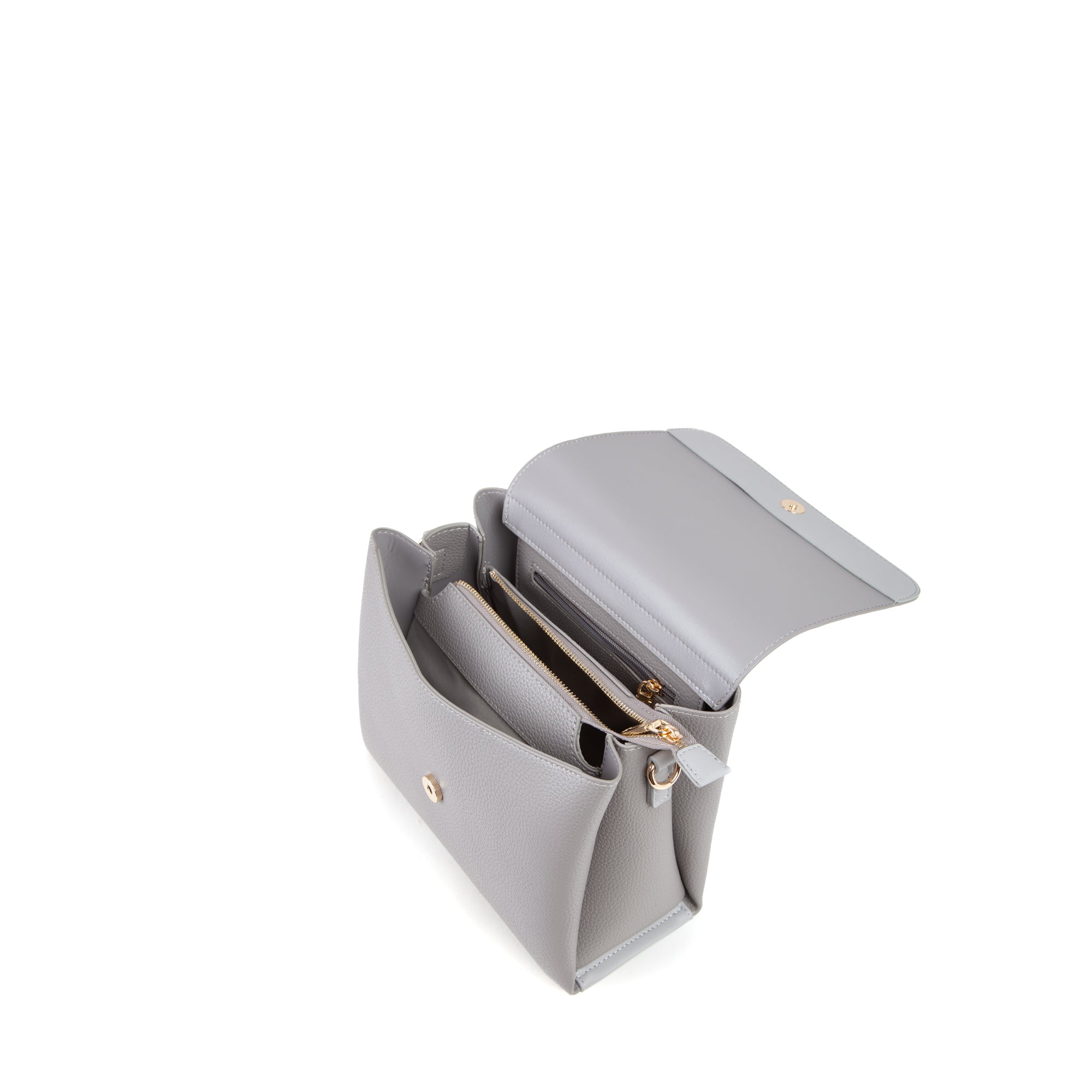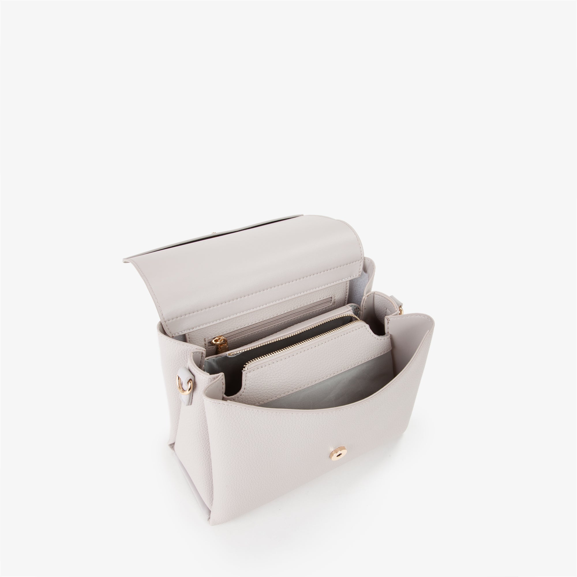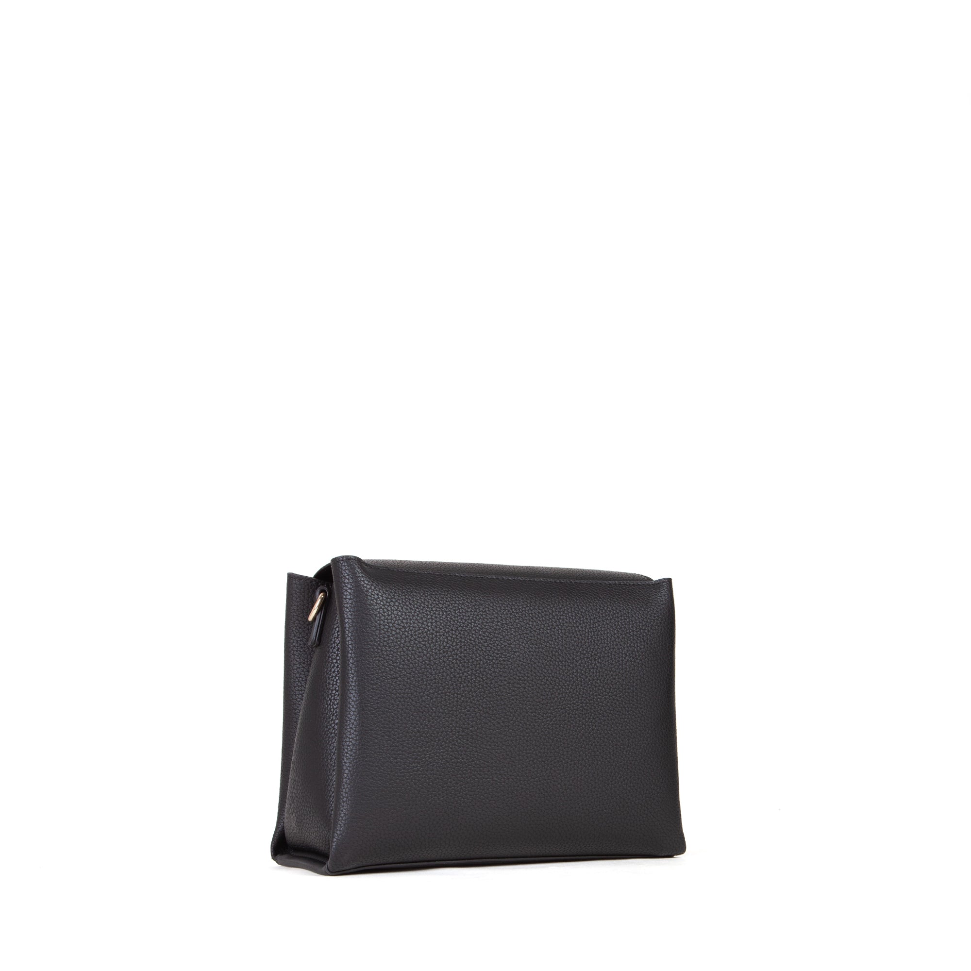 PATTINA MORBIDA, IN GRANA BOTTALATA CON DETTAGLI BICOLORE TON SUR TON. LOGO MINI SU FRONTE BORSA E MEXI LOGO METALLICO SU TRACOLLA REMOVIBILE