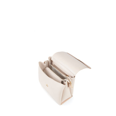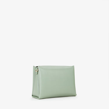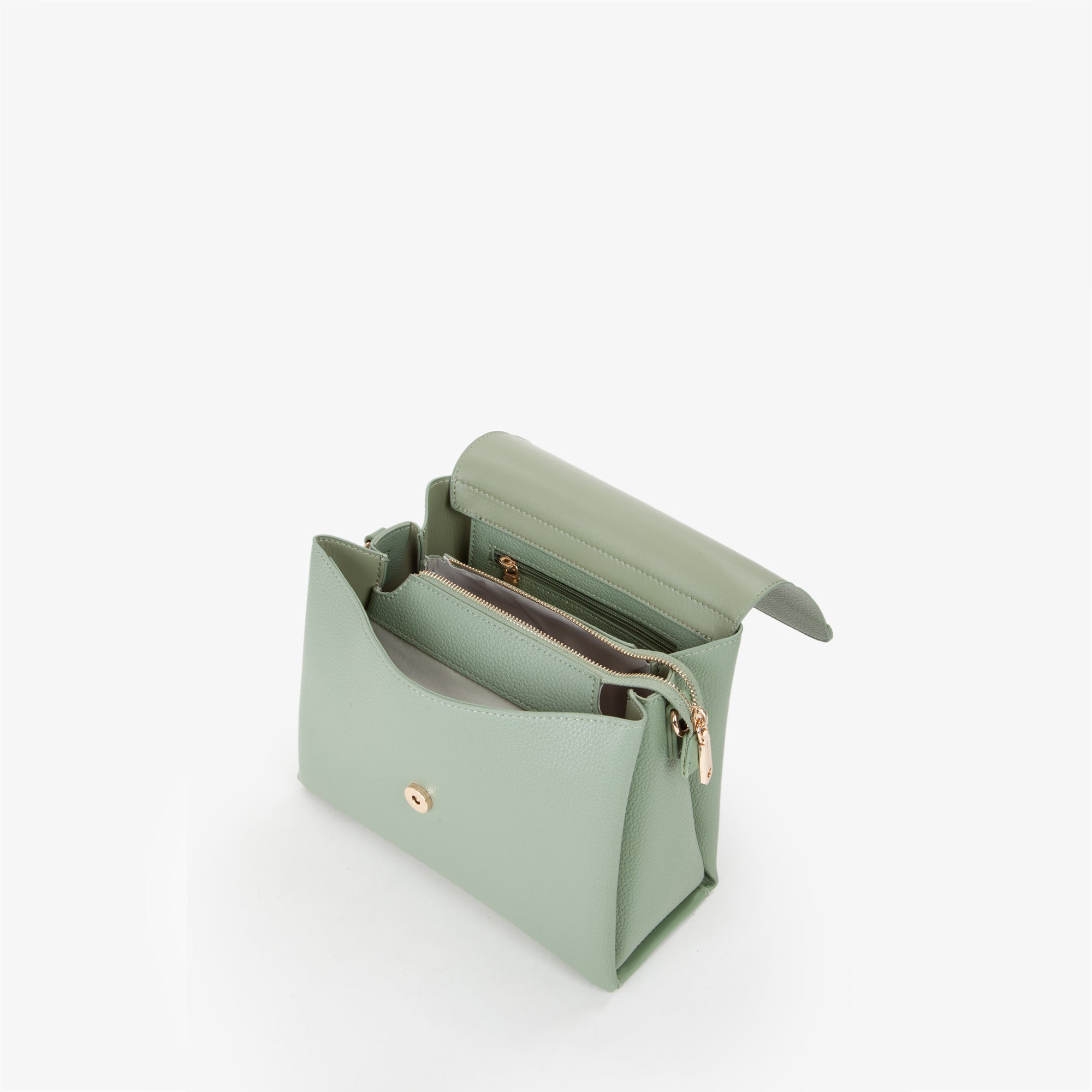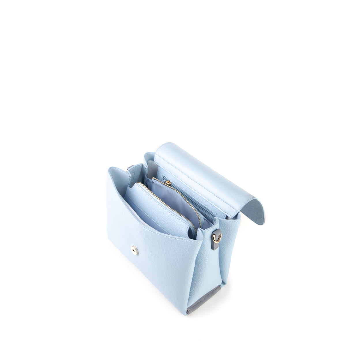 PATTINA MORBIDA, IN GRANA BOTTALATA CON DETTAGLI BICOLORE TON SUR TON. LOGO MINI SU FRONTE BORSA E MEXI LOGO METALLICO SU TRACOLLA REMOVIBILE