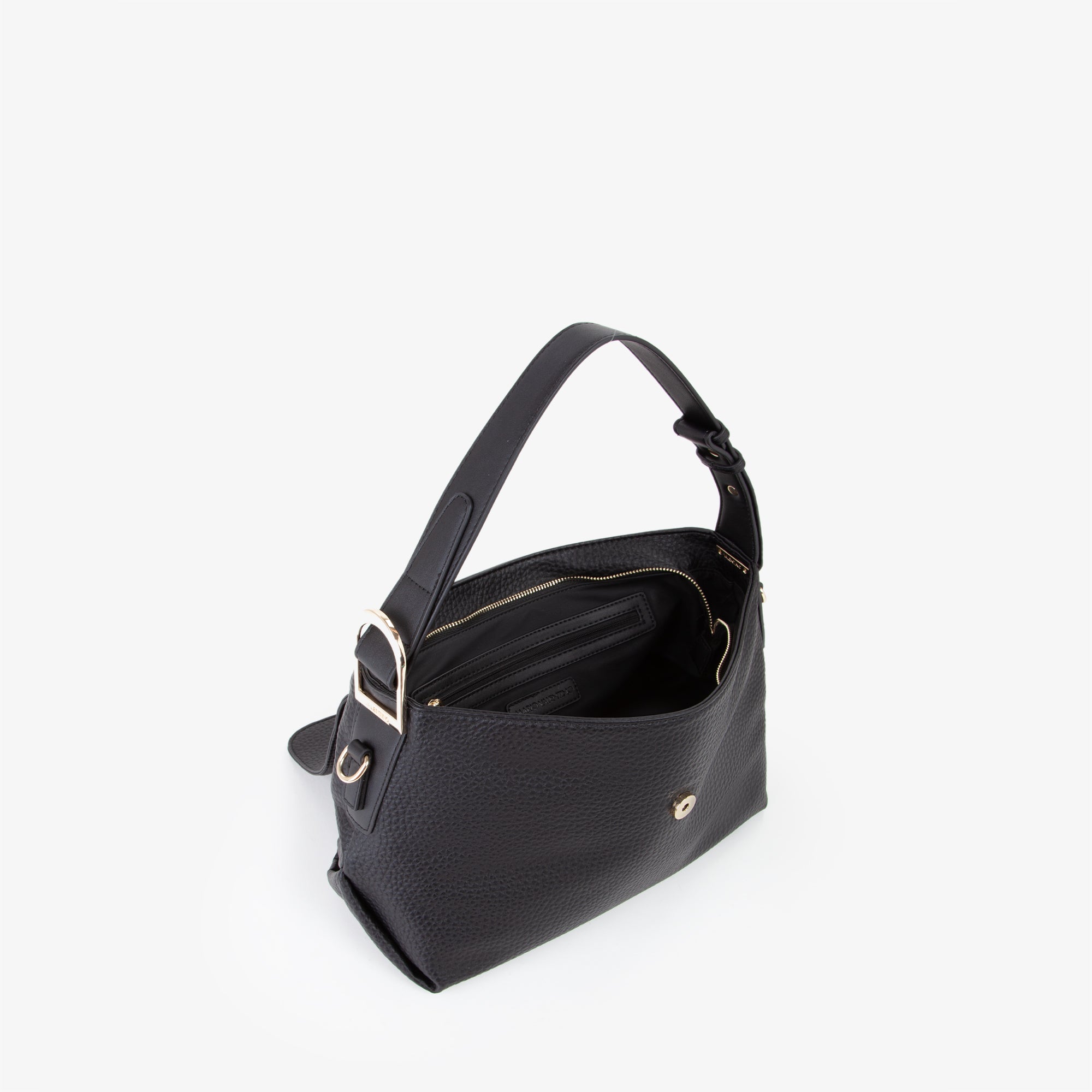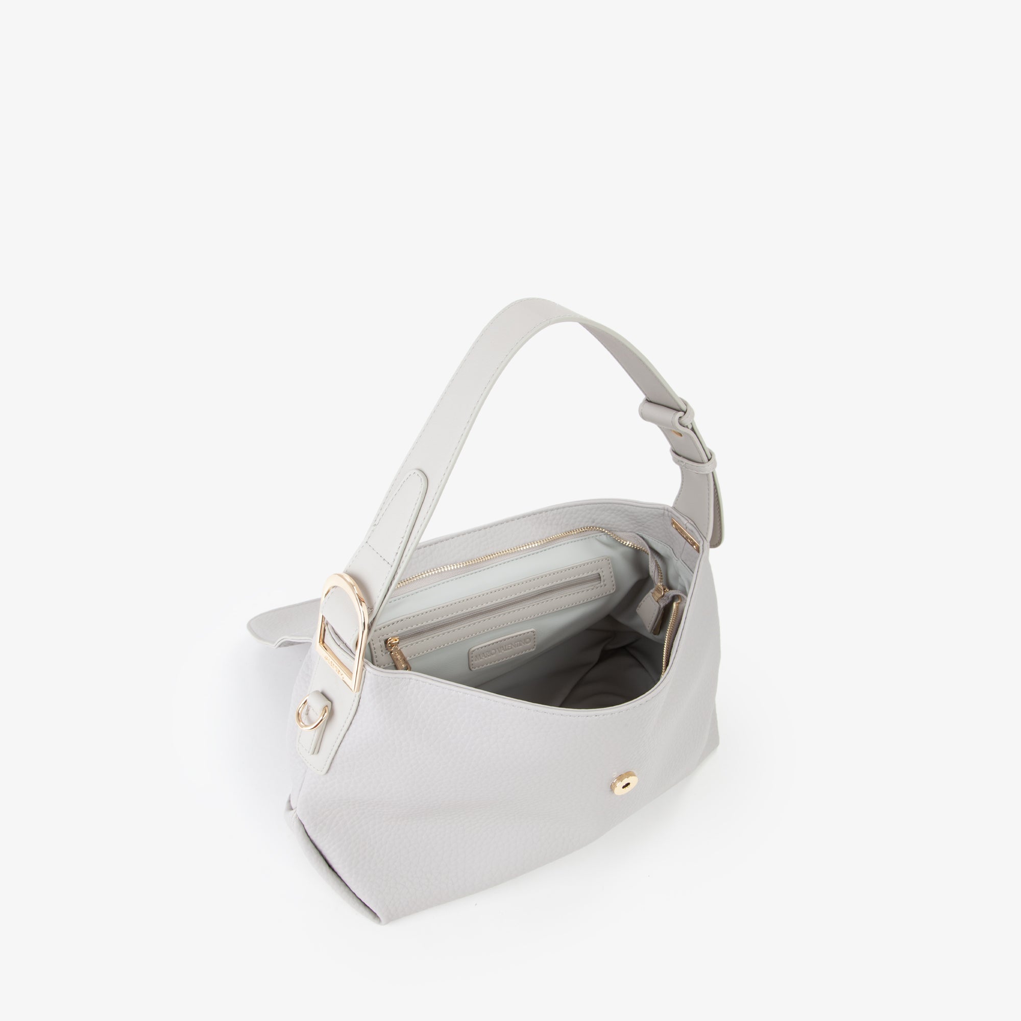 Cartella con fibbia decorativa, su cui è inciso il logo. Quest' ultimo è presente anche gommato sul davanti.