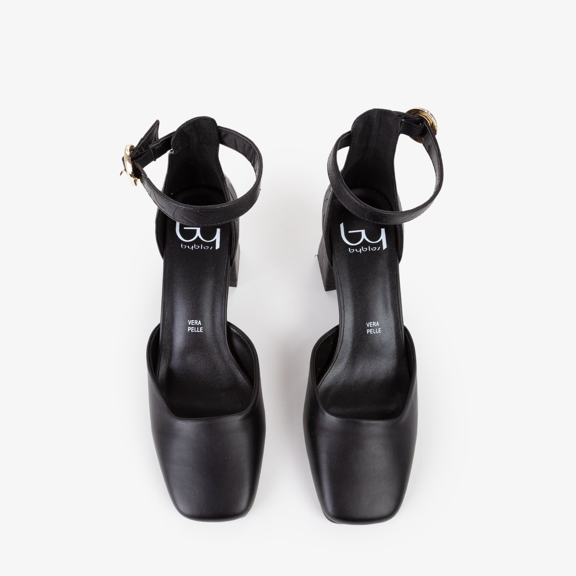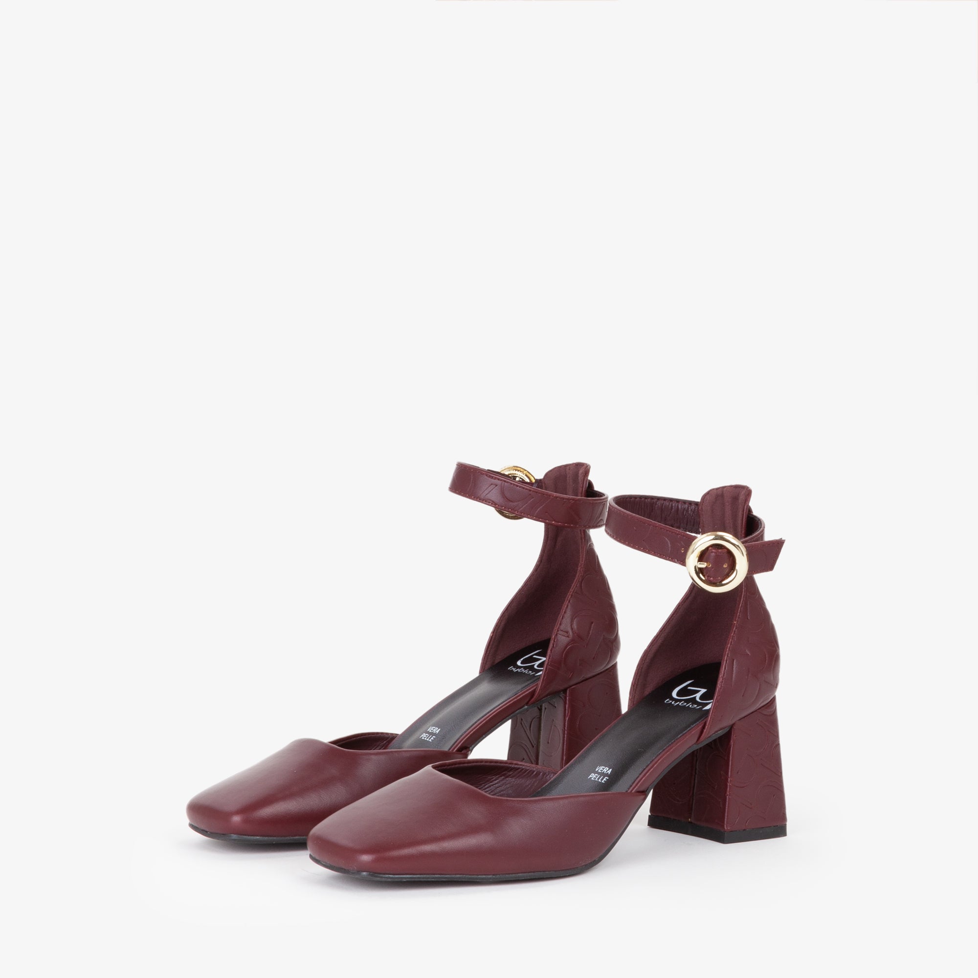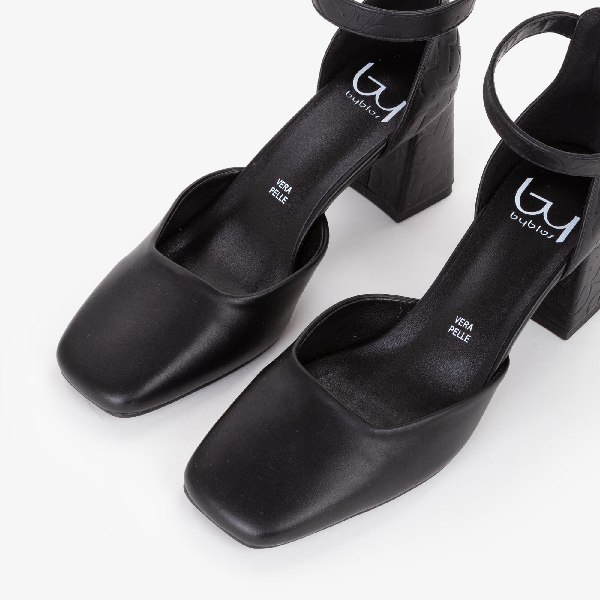 Questa scarpa è un décolleté in sintetico, caratterizzata da una punta squadrata che conferisce un look moderno e raffinato. La tomaia è decorata con un pattern logato sulla parte posteriore del tacco, mentre il cinturino alla caviglia, con una fibbia dorata, aggiunge un dettaglio elegante e sicuro. Questa tipologia di struttura con tacco quadrato assicura stabilità e comfort. Perfetta per occasioni formali o serate eleganti, questa scarpa si abbina a pantaloni a palazzo, abiti midi o gonne tubino, per un look sofisticatoe femminile. Ideale per eventi speciali o per un look da ufficio elegante.undefined