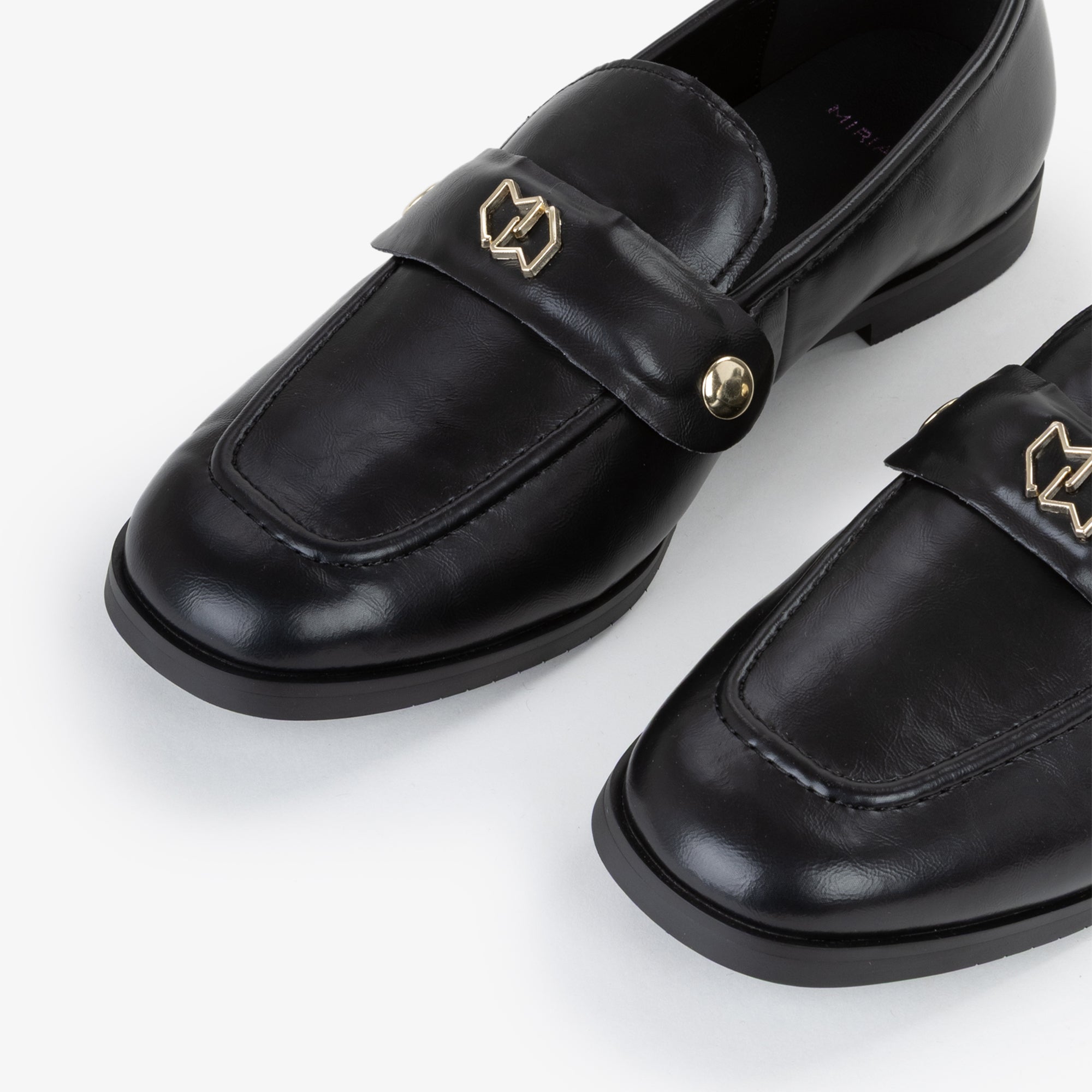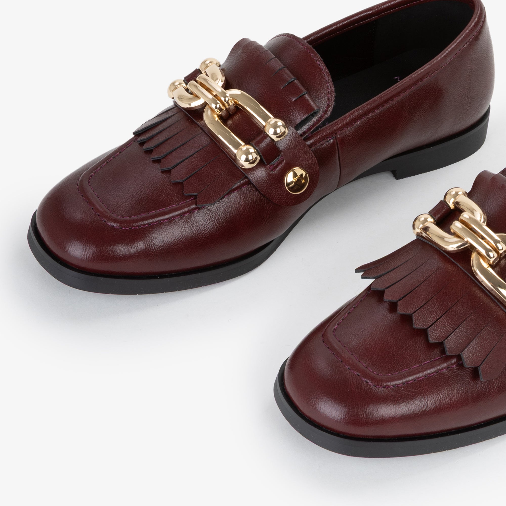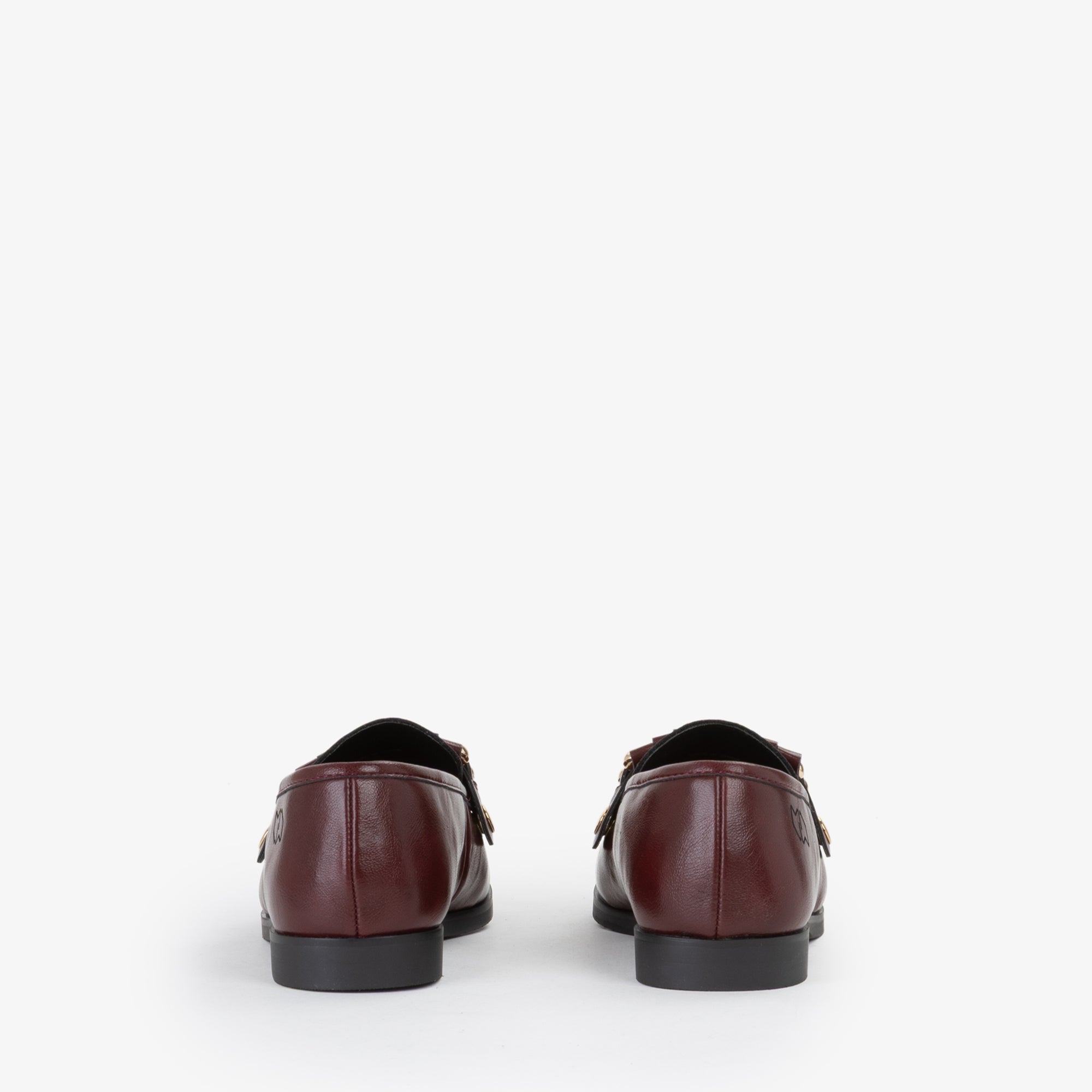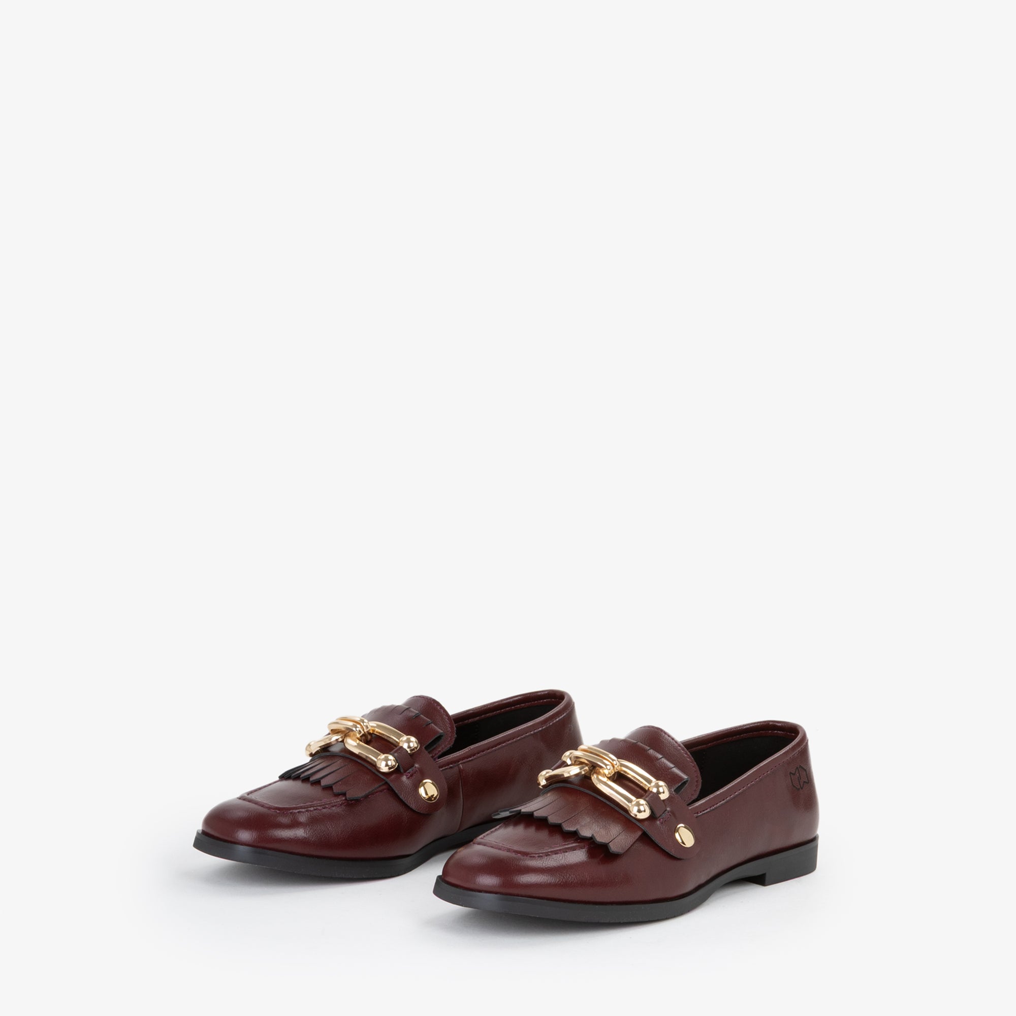 Mocassino dal design elegante e versatile, arricchito da doppio accessorio intercabiabile, uno con frange e fibbia dorata, l'altrosemplice con il logo MIRIADE. Gli accessori consentono di personalizzare il look in base alloccasione. La suola bassa garantisce comfort per un uso quotidiano, mentre le finiture metalliche donano un tocco sofisticato. Perfetto per passare con disinvoltura da unoutfit formale a uno casual-chic.