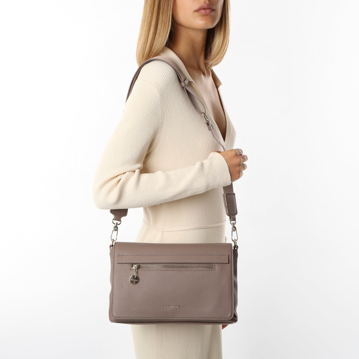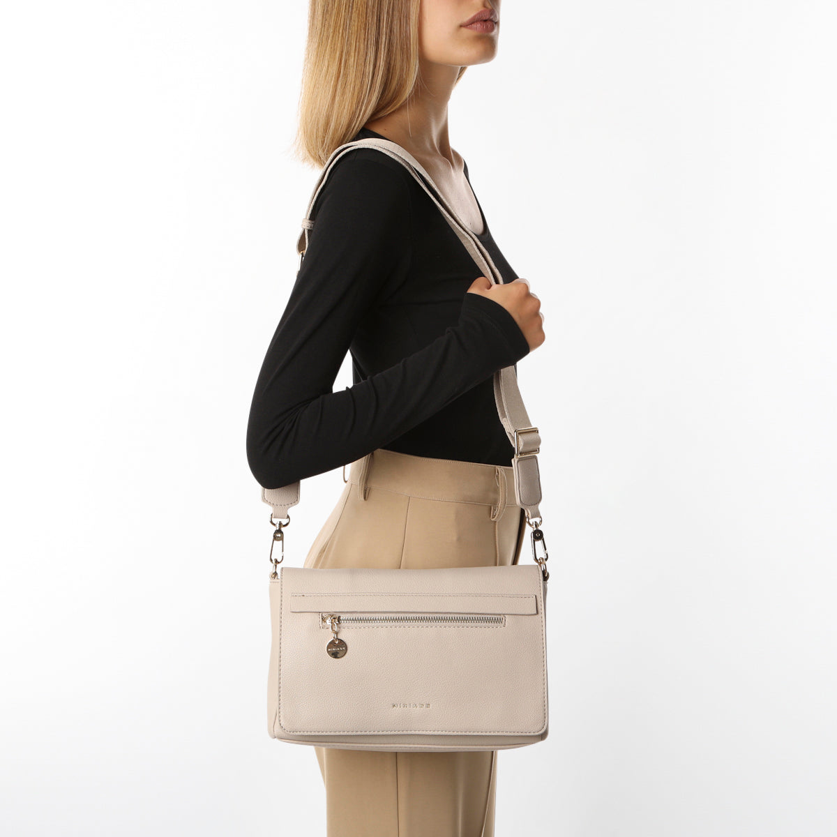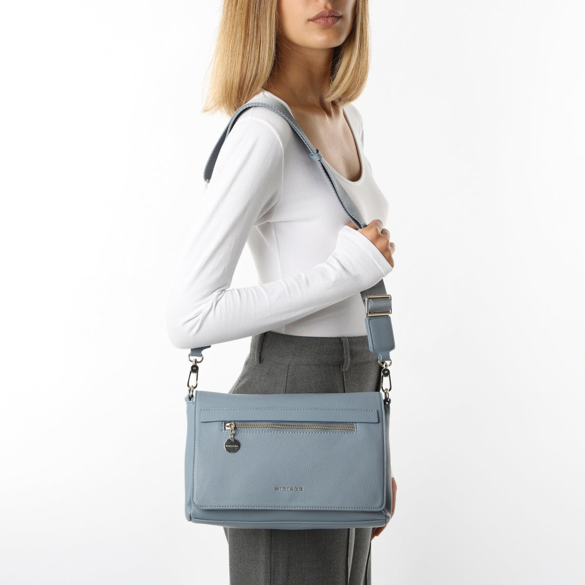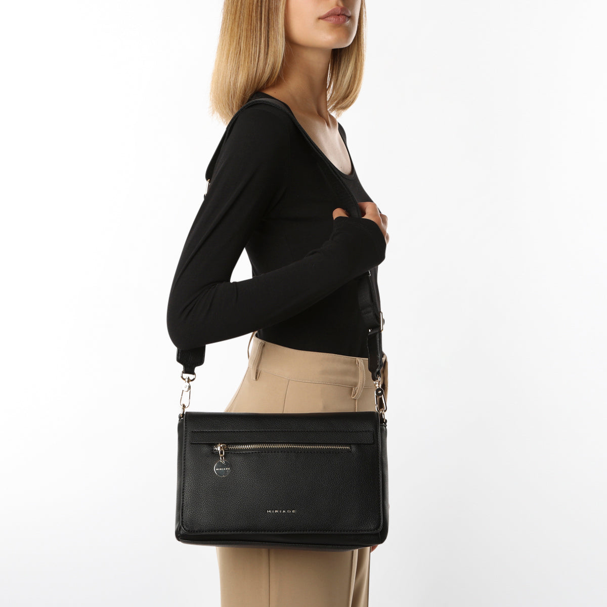 Elegante e funzionale, la borsa a spalla ERINA di Miriade è perfetta per avere a portata di mano i vostri oggetti personali. È dotata di molteplici scomparti per tenere tutto organizzato e di un'agevole chiusura magnetica. Il design è innovativo oltre che resistente grazie alla finitura in PVC. Che siate dirette in ufficio o fuori a correre, la borsa a tracolla ERINA è l'accessorio perfetto per voi. Disponibile nei colori nero, beige, azzurro, cuoio, taupe e cipolla.