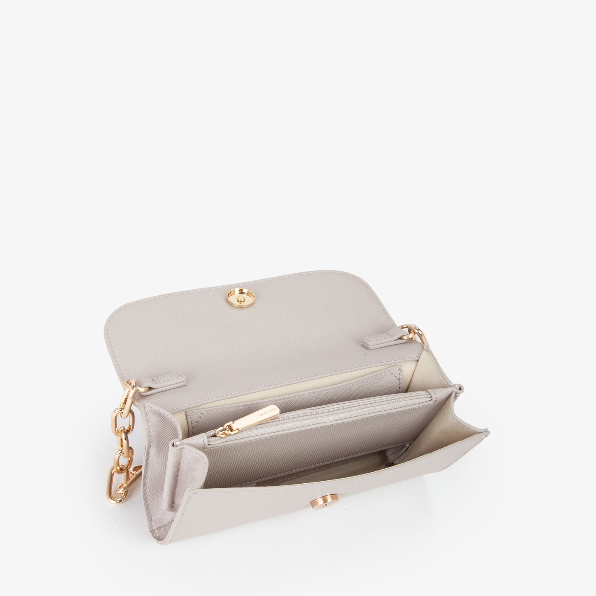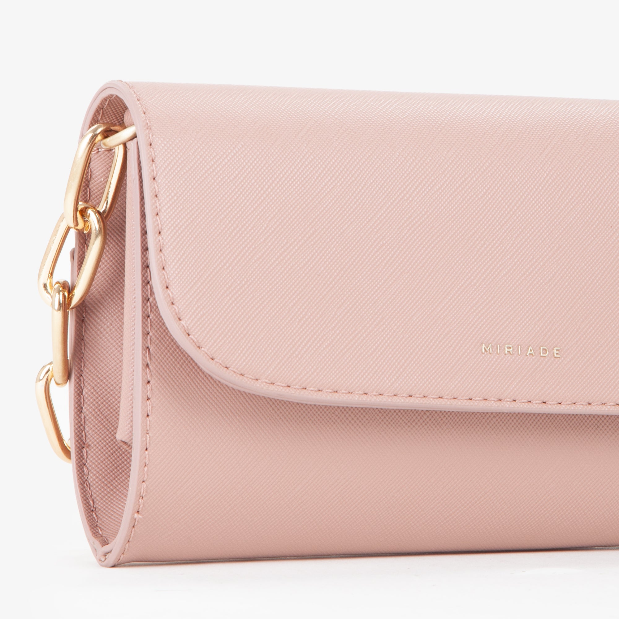 elegante pattina in saffiano, un accessorio indispensabile per chi cerca stile e funzionalità. -Questa borsa offre una texture resistente e un aspetto raffinato, perfetto per ogni occasione.-è dotata di una tracolla con catena, che offre la versatilità di portarlaanche a spalla.-Le sue dimensioni la rendono ideale per contenere tutti gli oggetti essenziali.-Il logo MIRIADE sulla parte frontale aggiunge un tocco di eleganza e autenticità. -La borsa è perfetta per l'uso quotidiano, grazie alla sua combinazione di praticità e stile senza tempo.