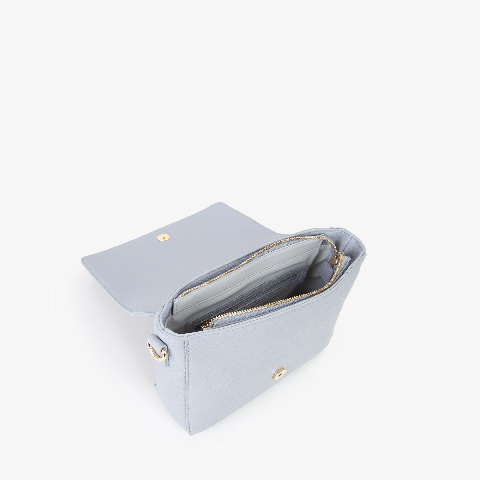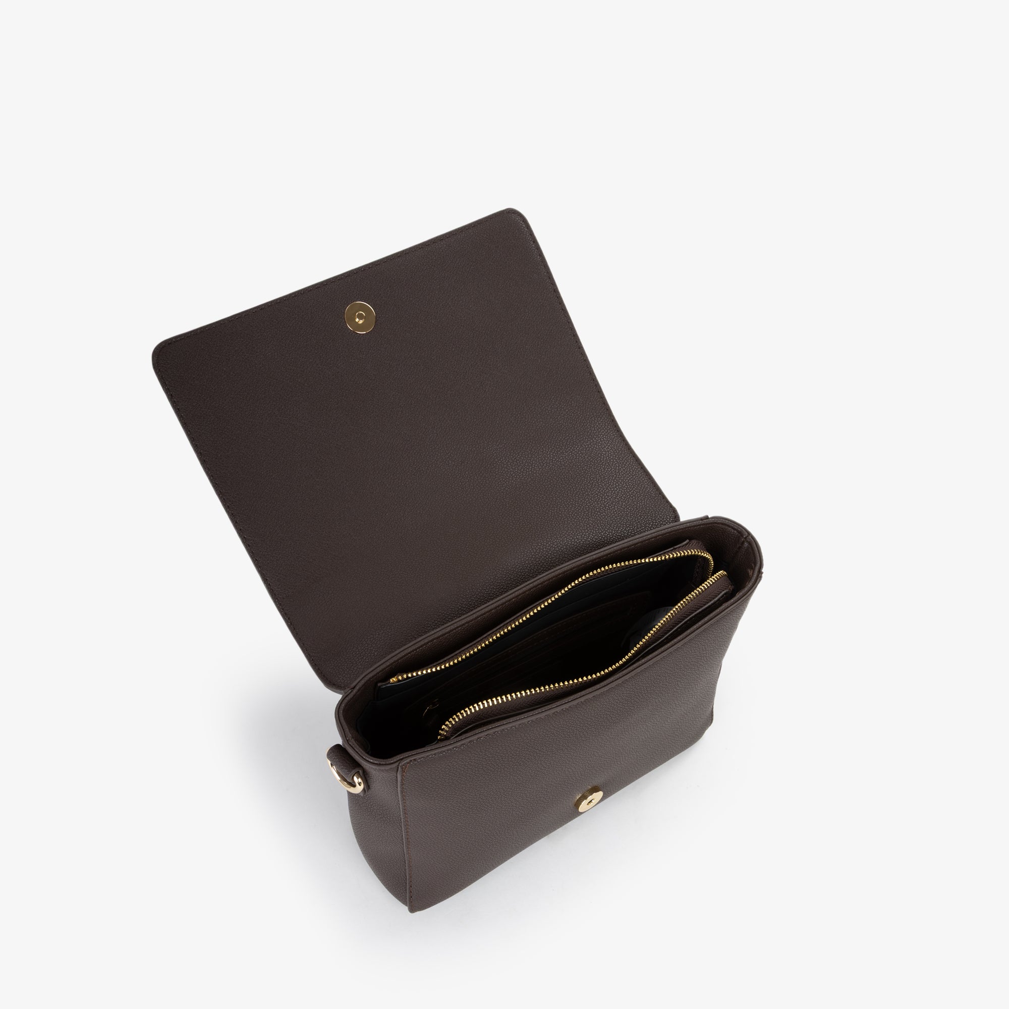 Pattina in grana con logo marchiato a fuoco. Dispone di una tracolla in nastro personalizzata e staccabile.