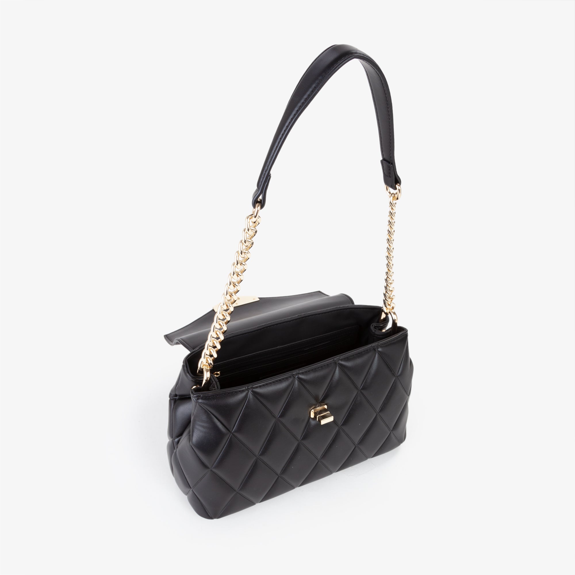 TRACOLLA CON PATTINA IN NAPPA E DISEGNO MATELASSE' SUL CORPO BORSA E LETTERE METALLICHE