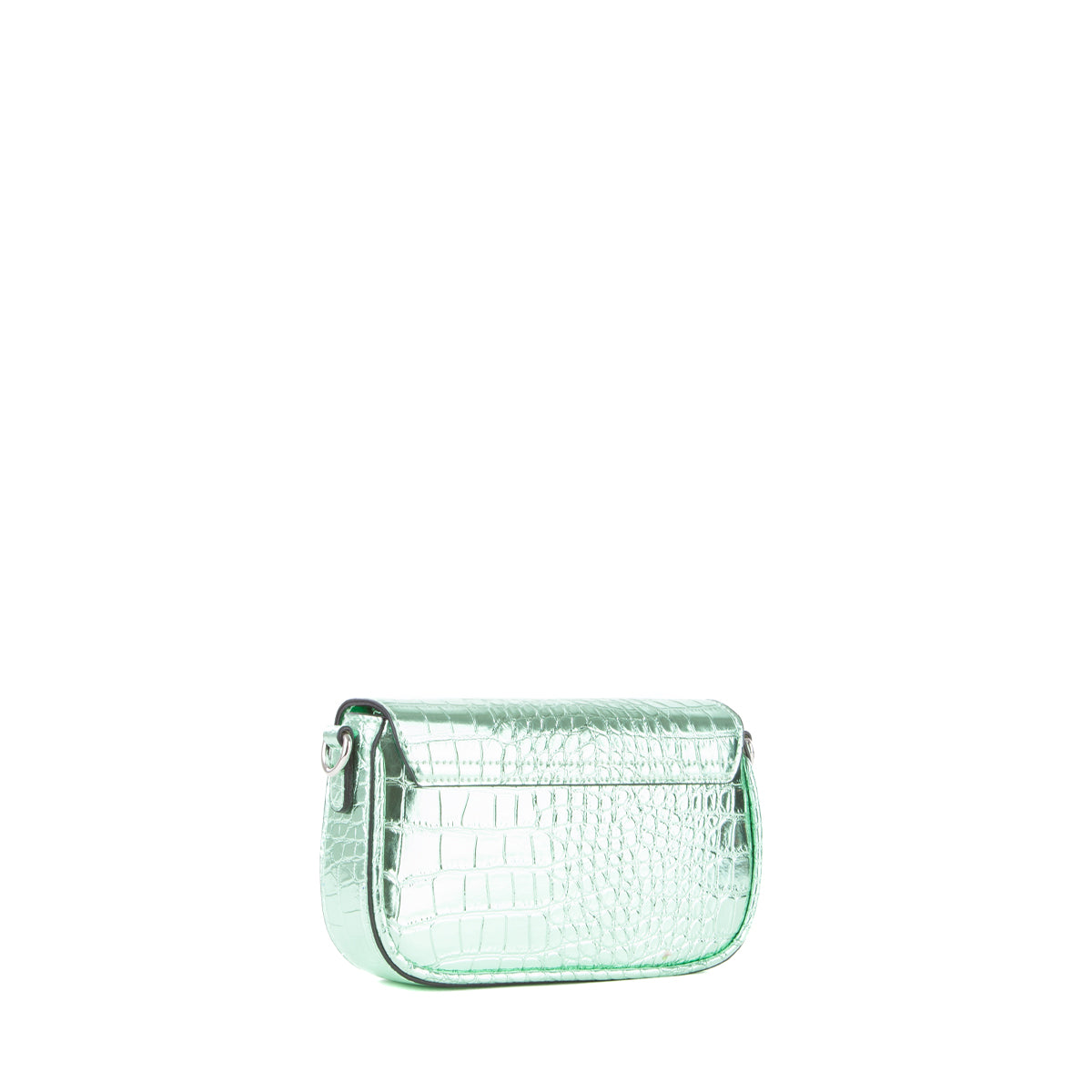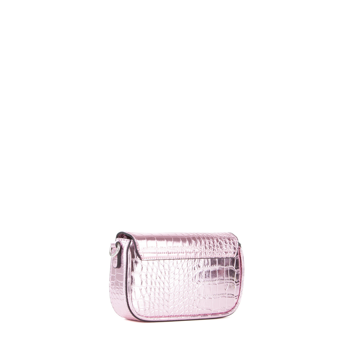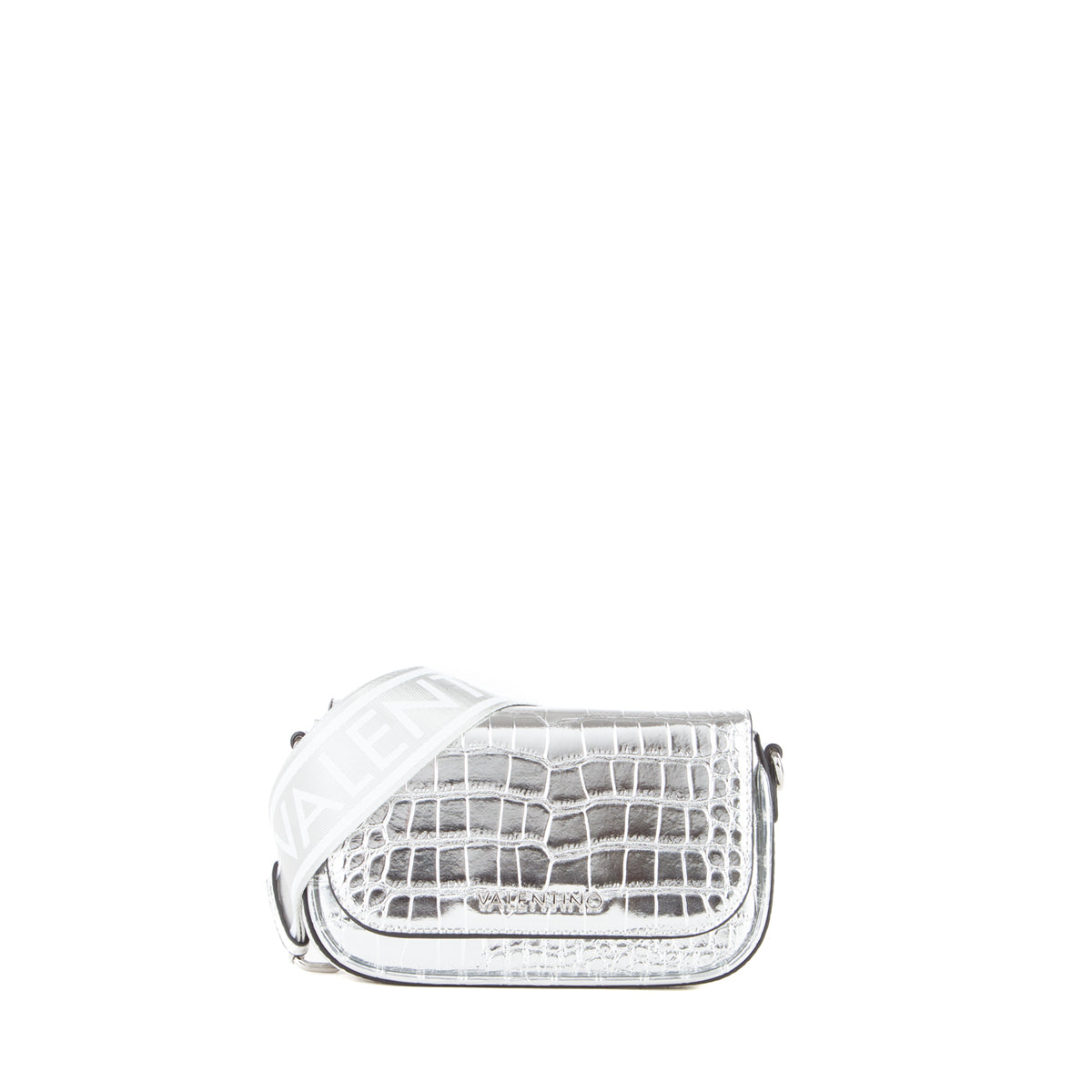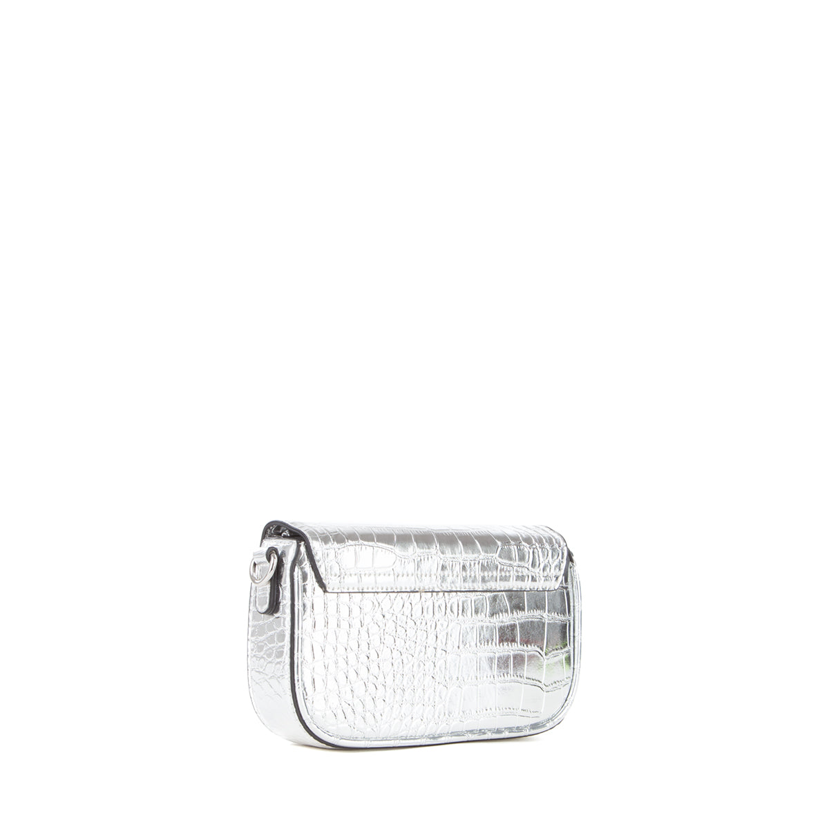 Pattina in cocco metallizzato con personalizzazione in gomma in argento. Dispone di una tracolla in nastro con personalizzazione a contrasto, e una in nappa in tinta.