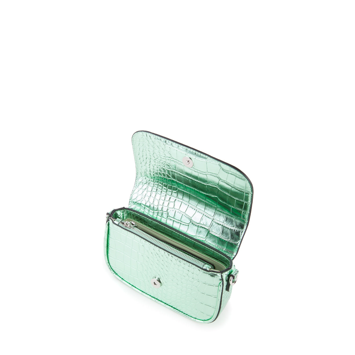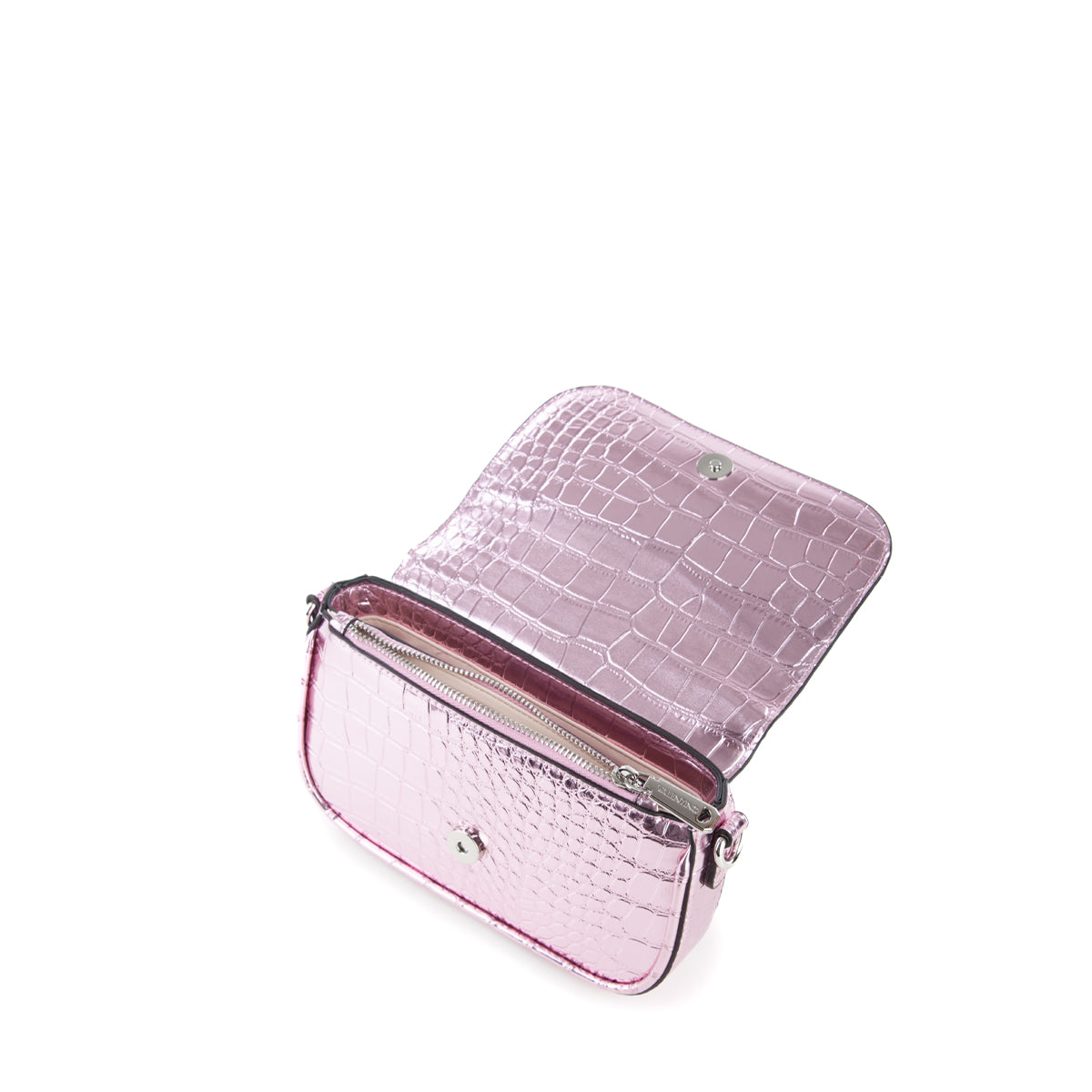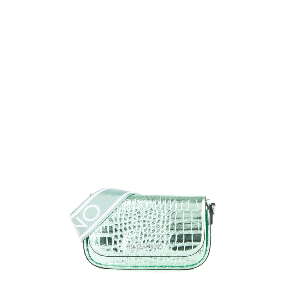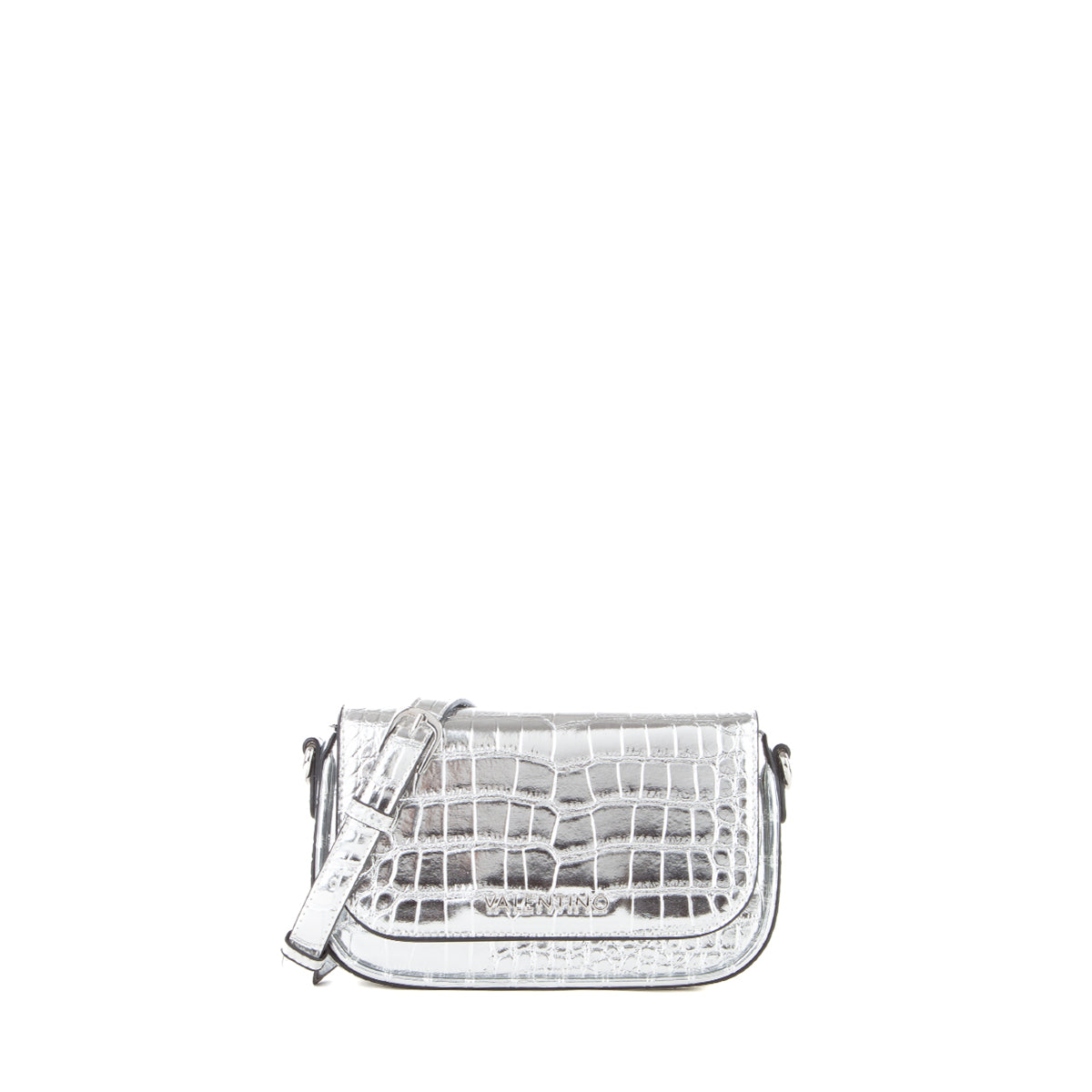 Pattina in cocco metallizzato con personalizzazione in gomma in argento. Dispone di una tracolla in nastro con personalizzazione a contrasto, e una in nappa in tinta.