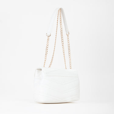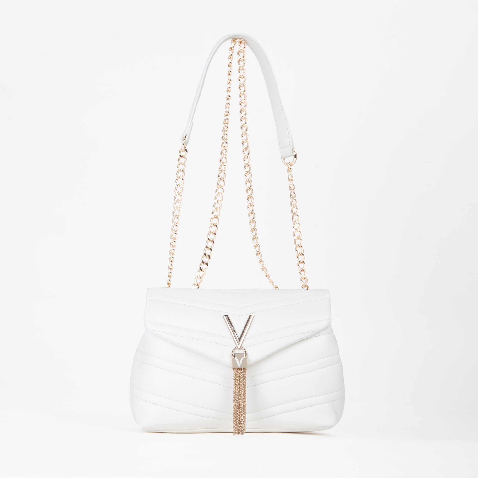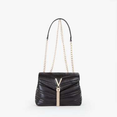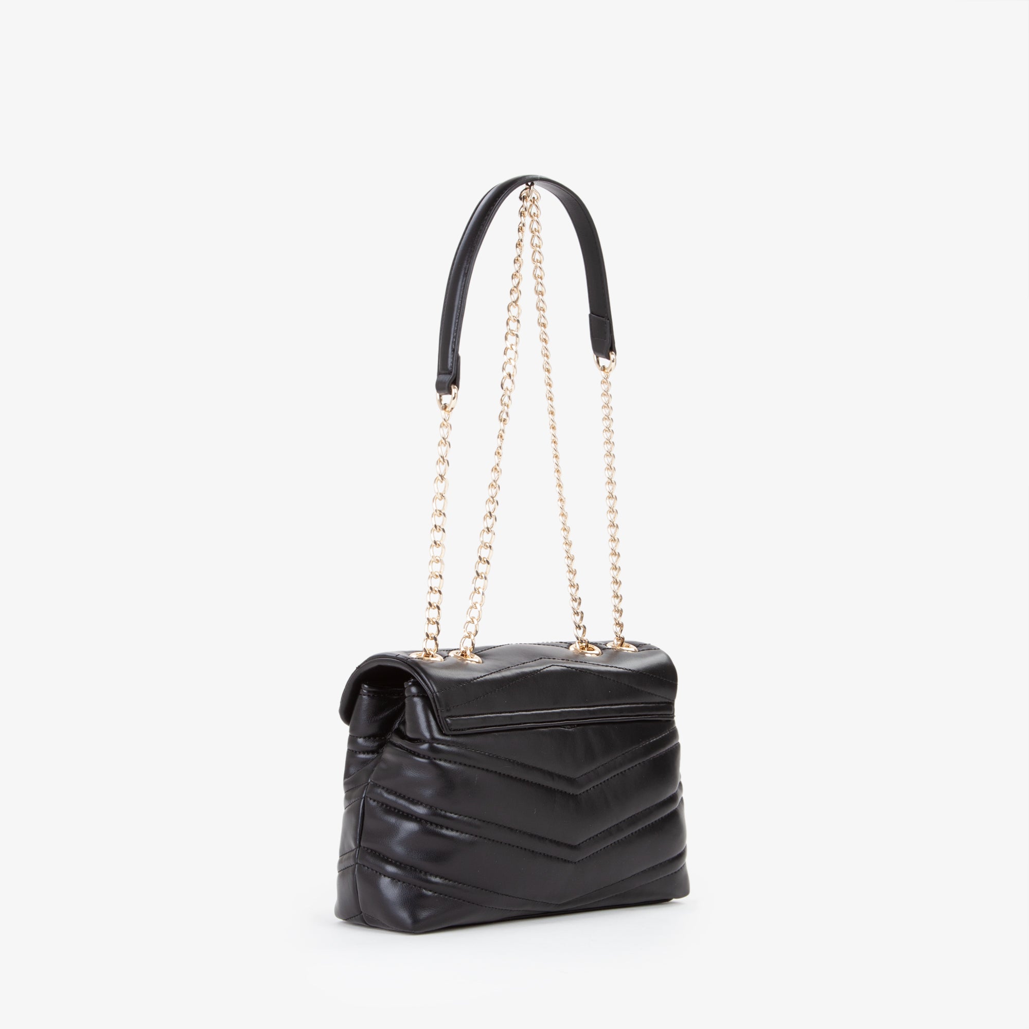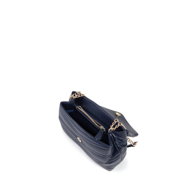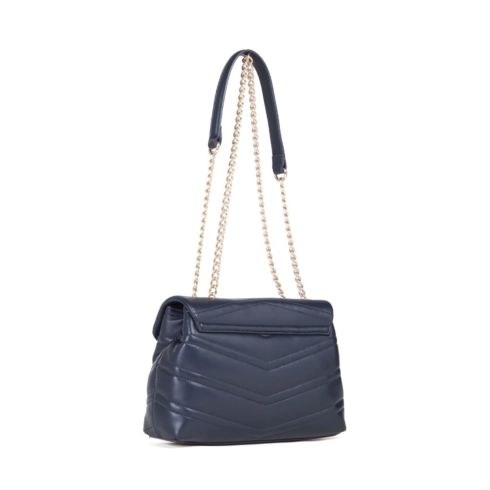 Incantevole pattina di piccole dimensioni, in nappa con lavorazione matelassé.-Sul fronte è presente il logo ed è dotata di una tracolla in catena.