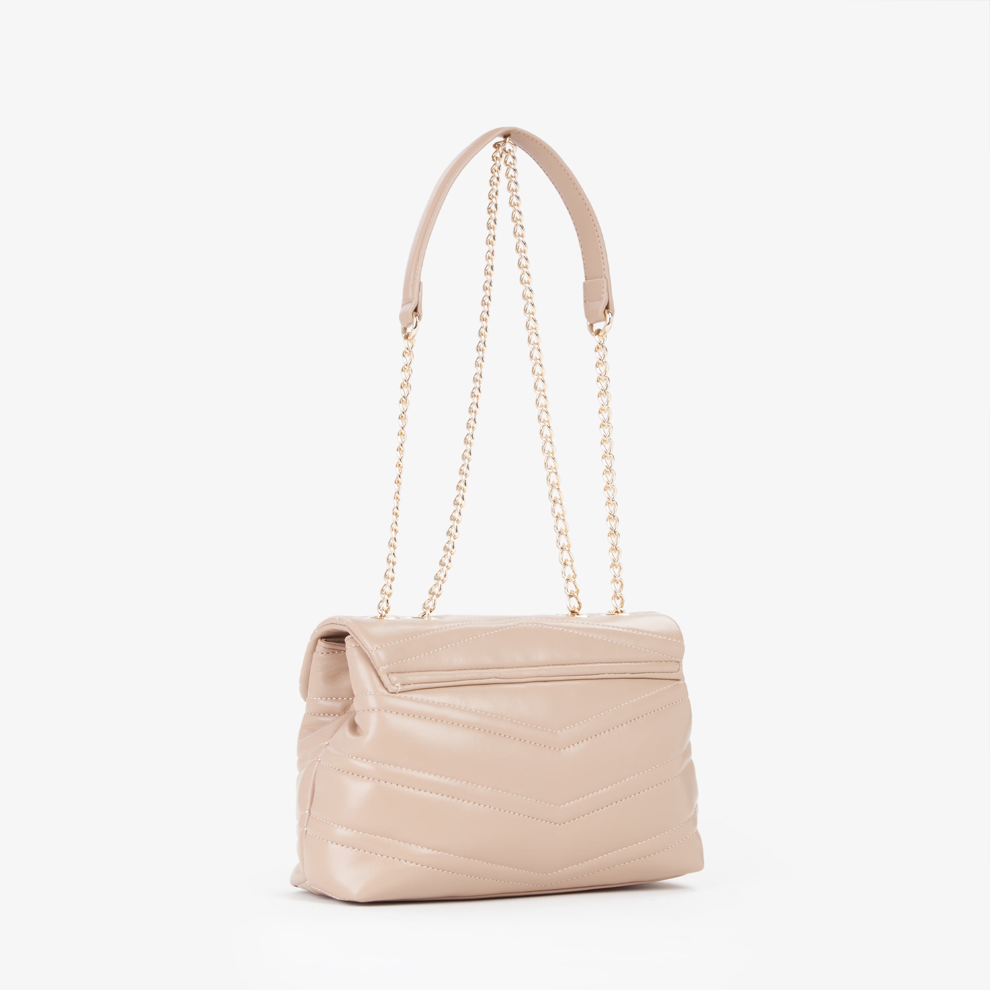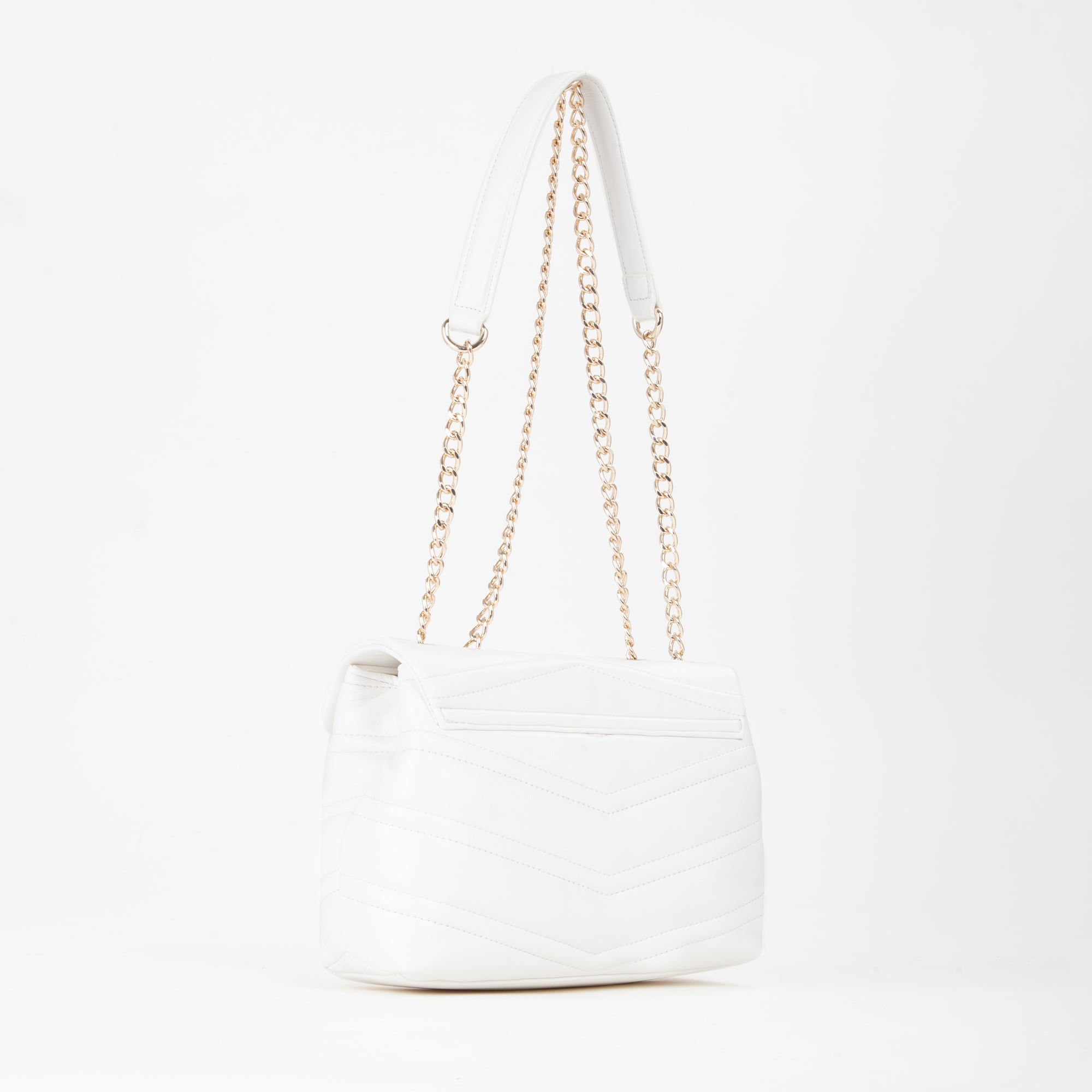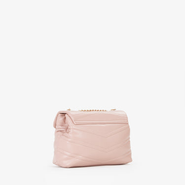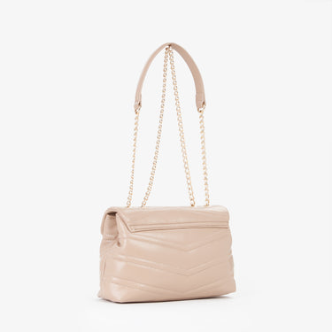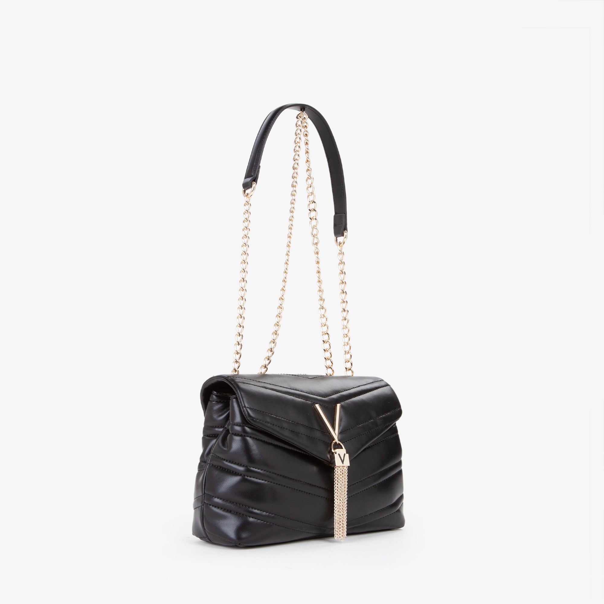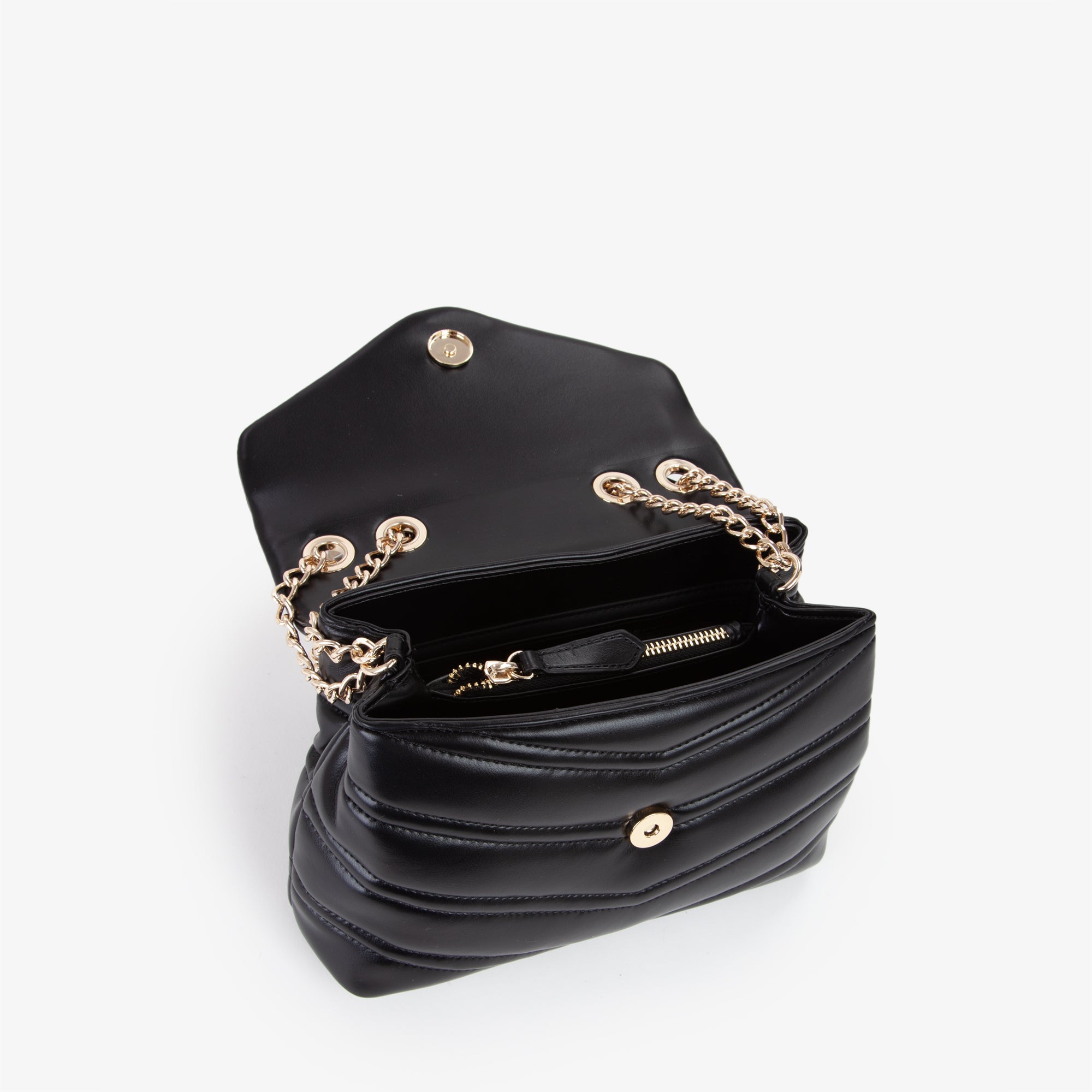 Incantevole pattina di piccole dimensioni, in nappa con lavorazione matelassé.-Sul fronte è presente il logo ed è dotata di una tracolla in catena.