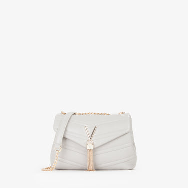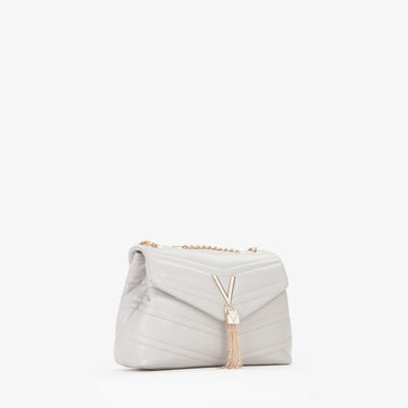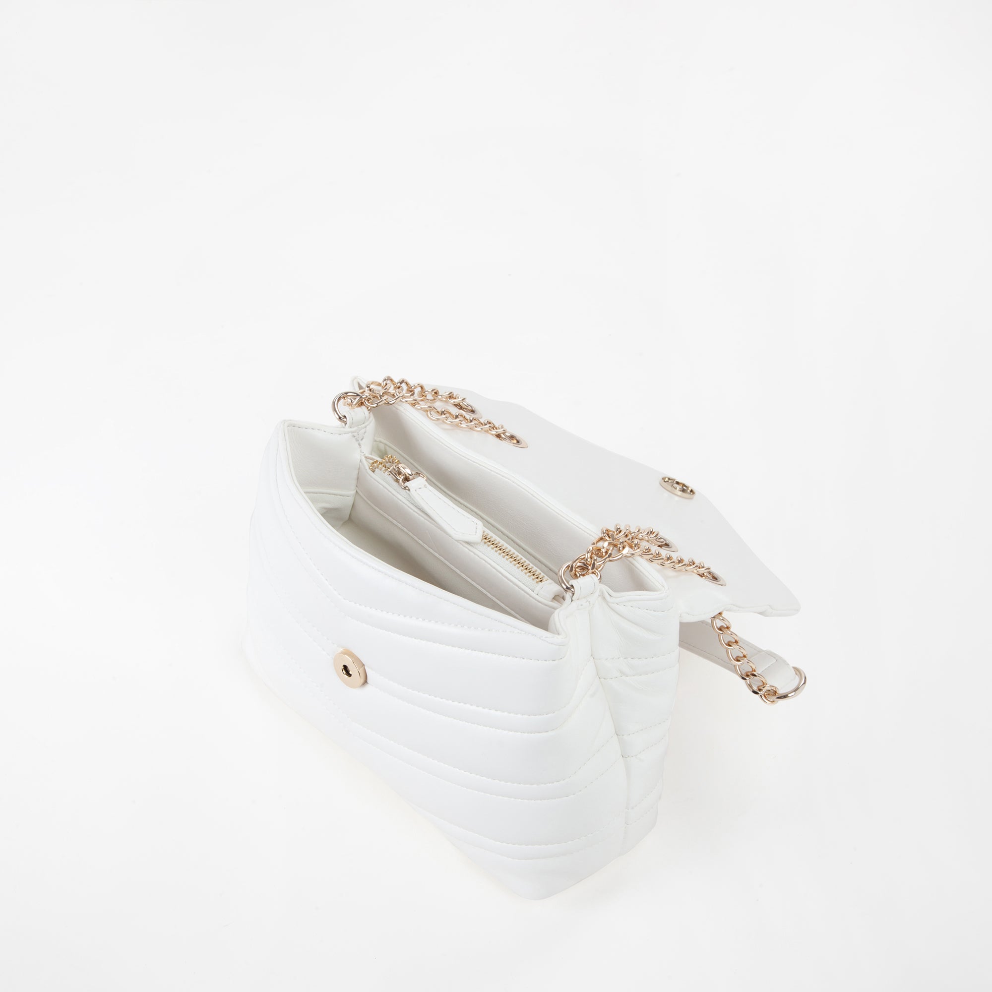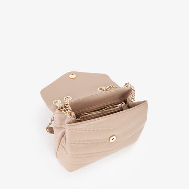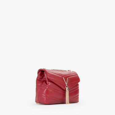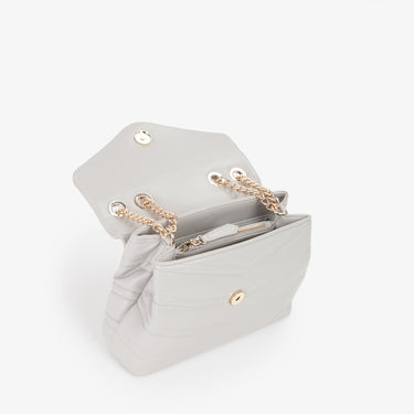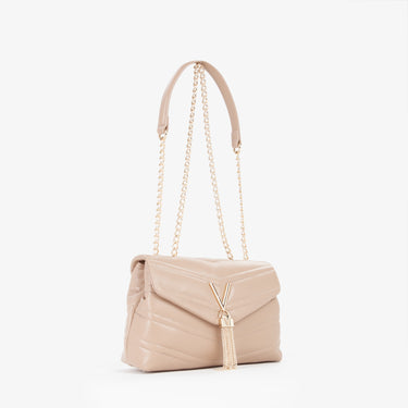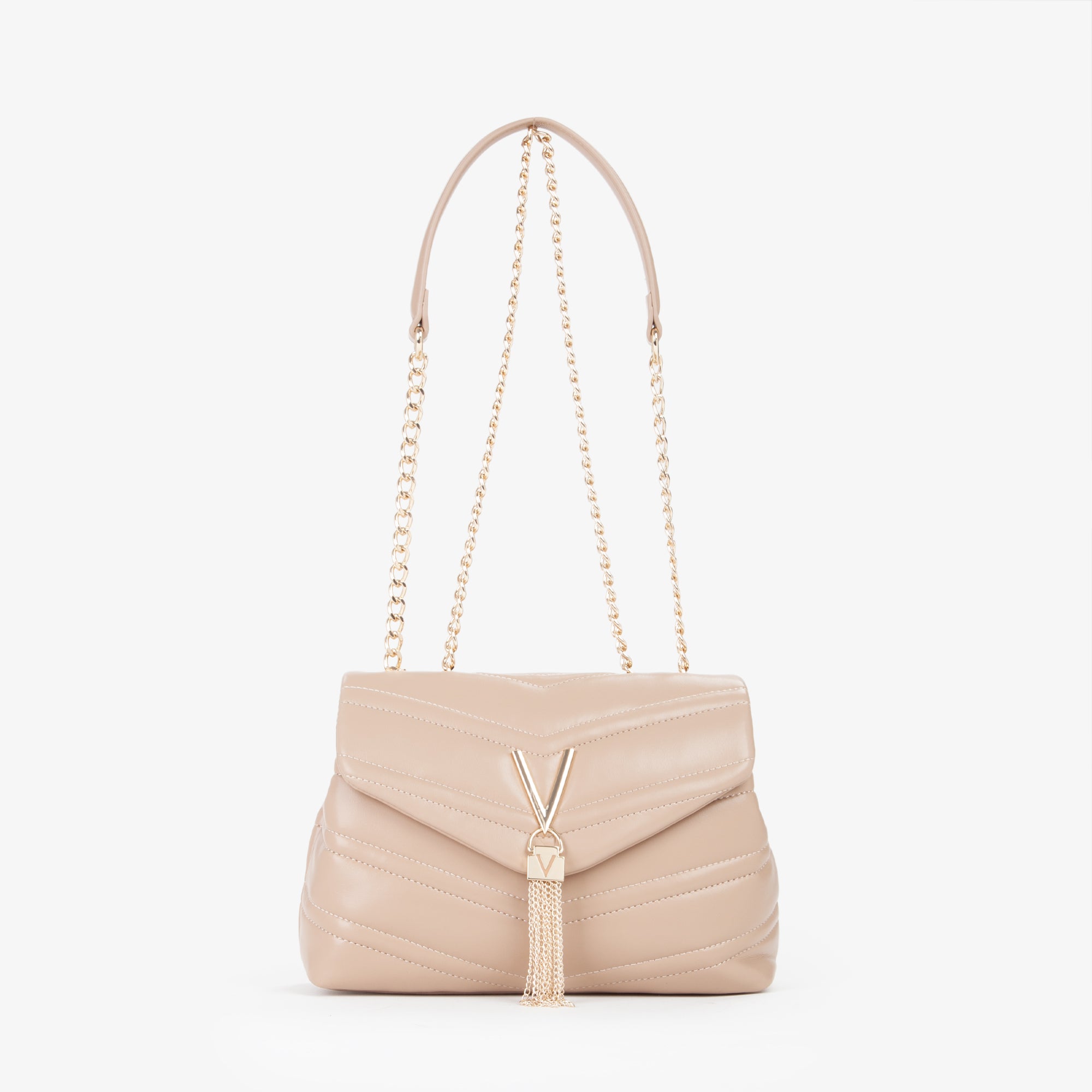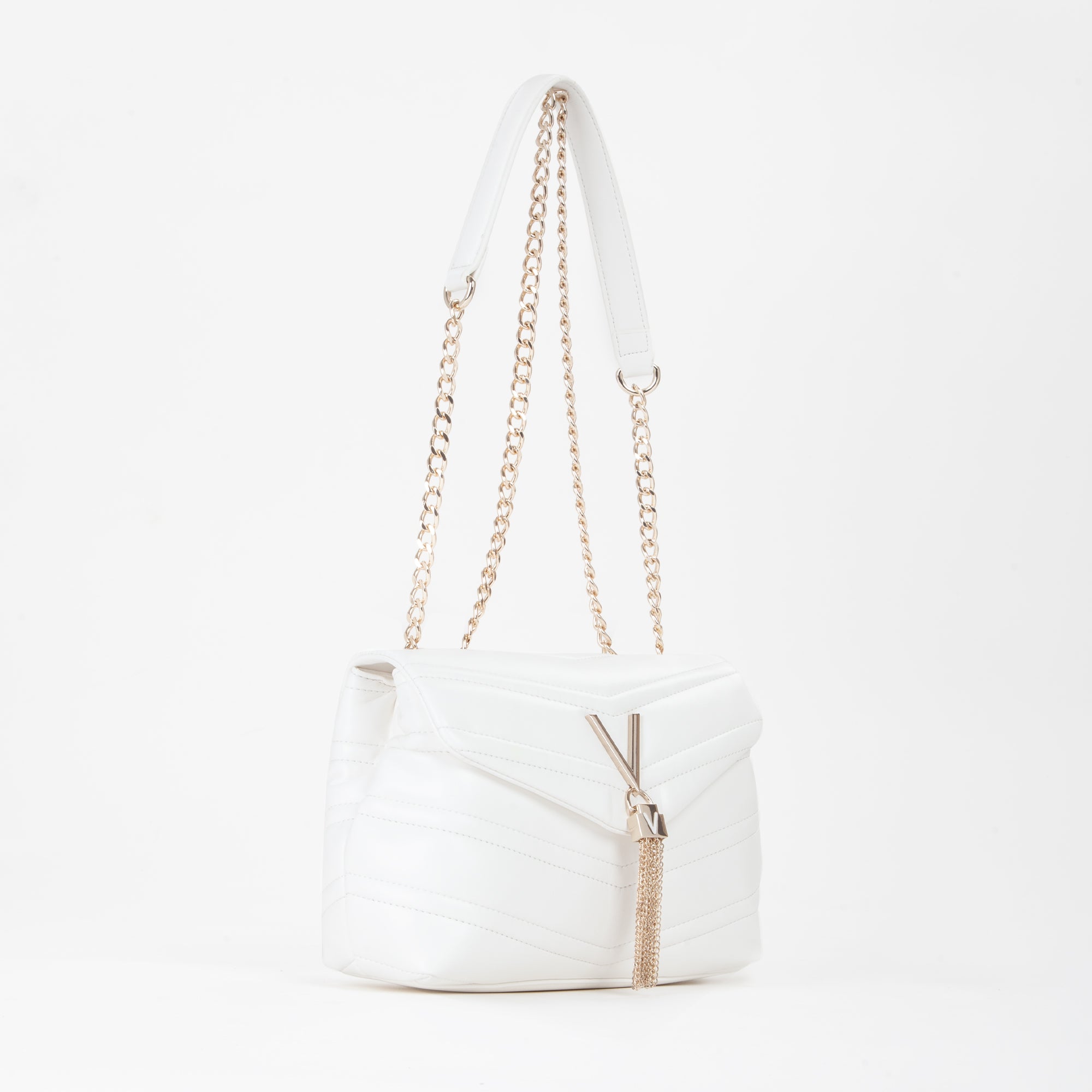 Incantevole pattina di piccole dimensioni, in nappa con lavorazione matelassé.-Sul fronte è presente il logo ed è dotata di una tracolla in catena.