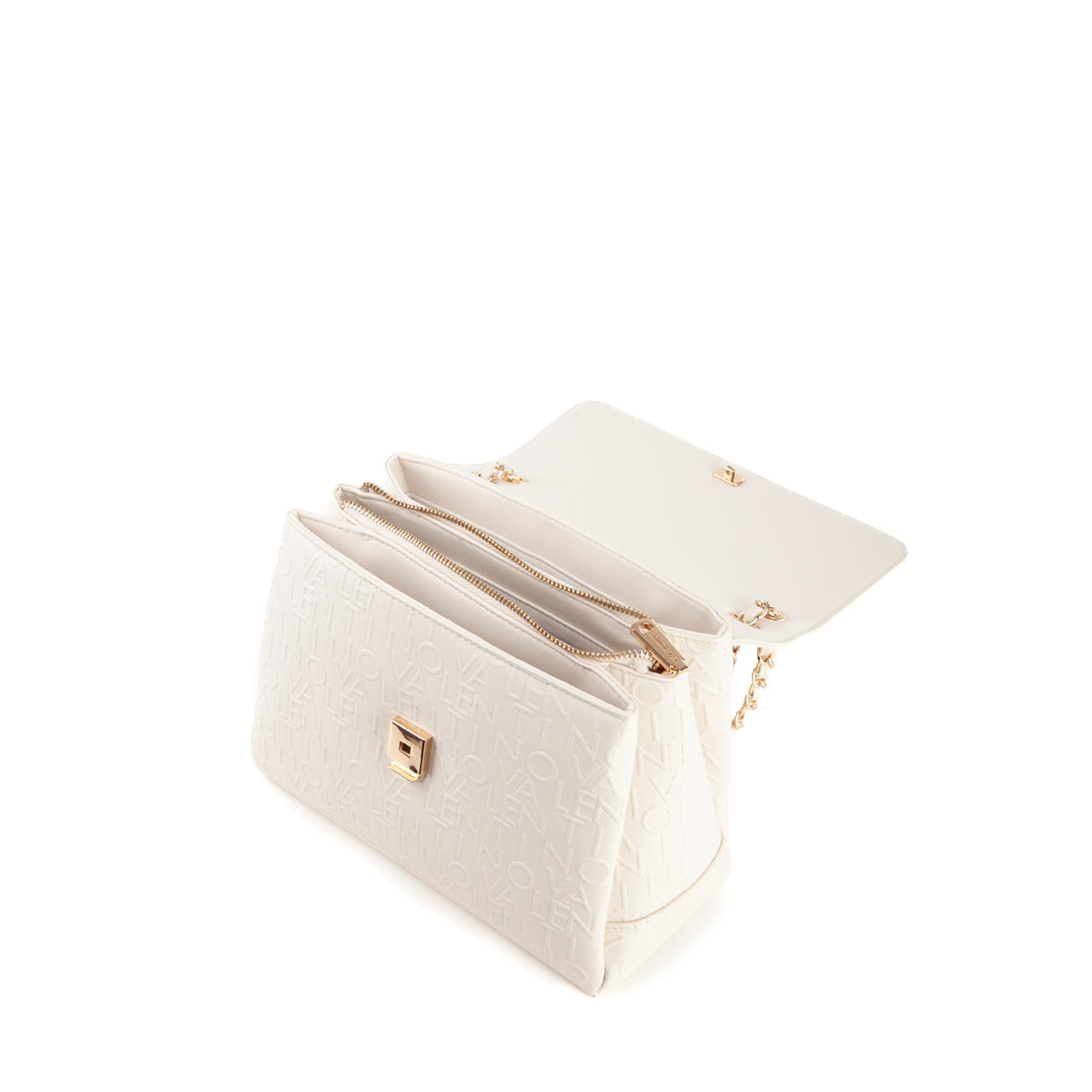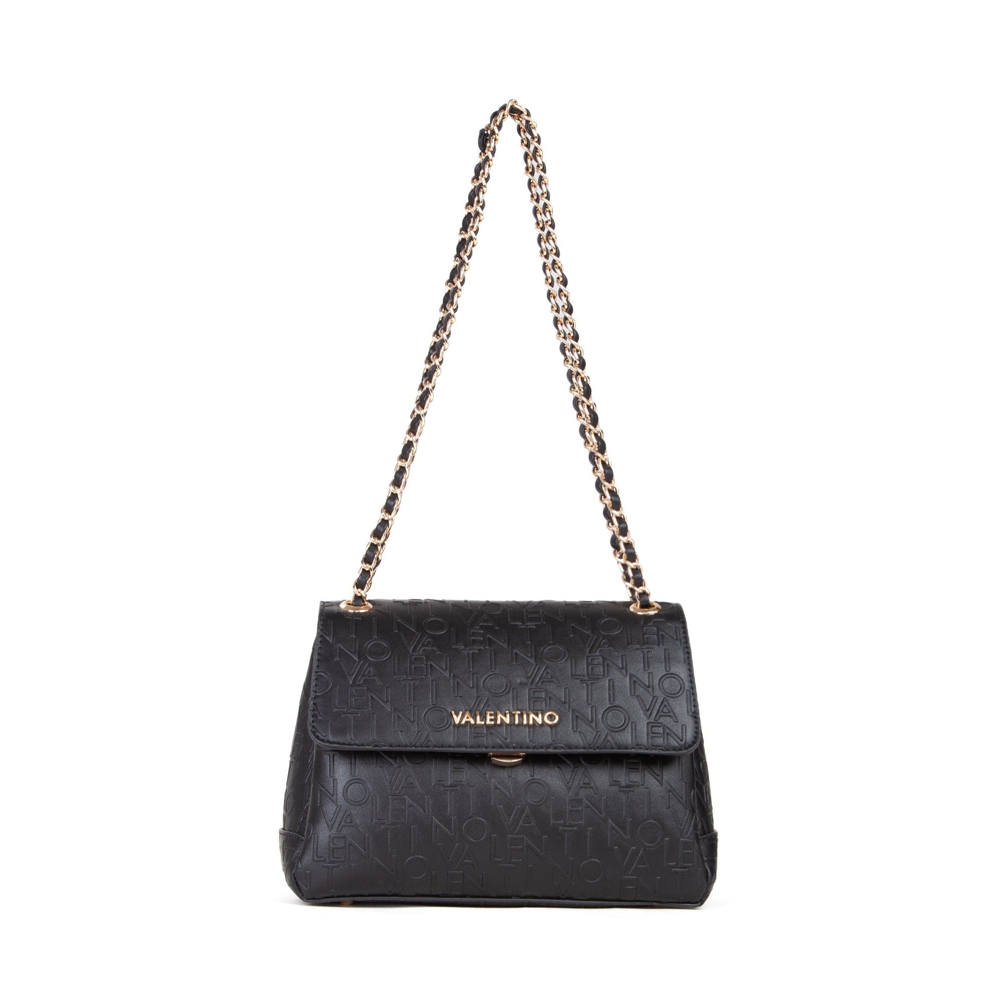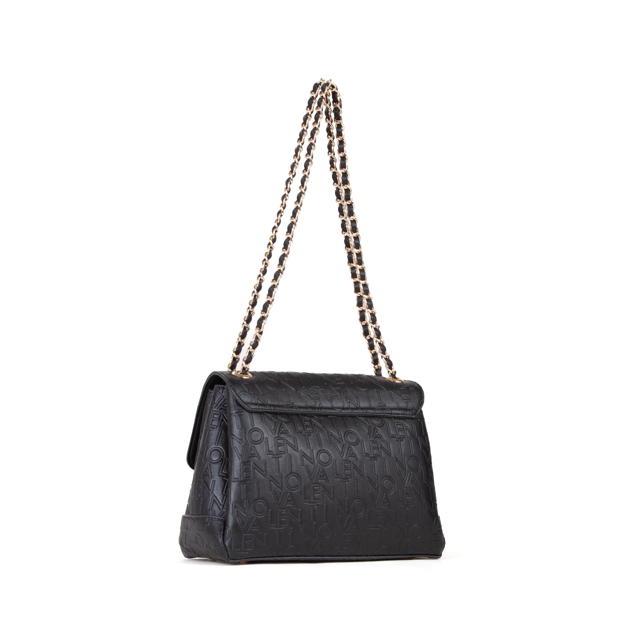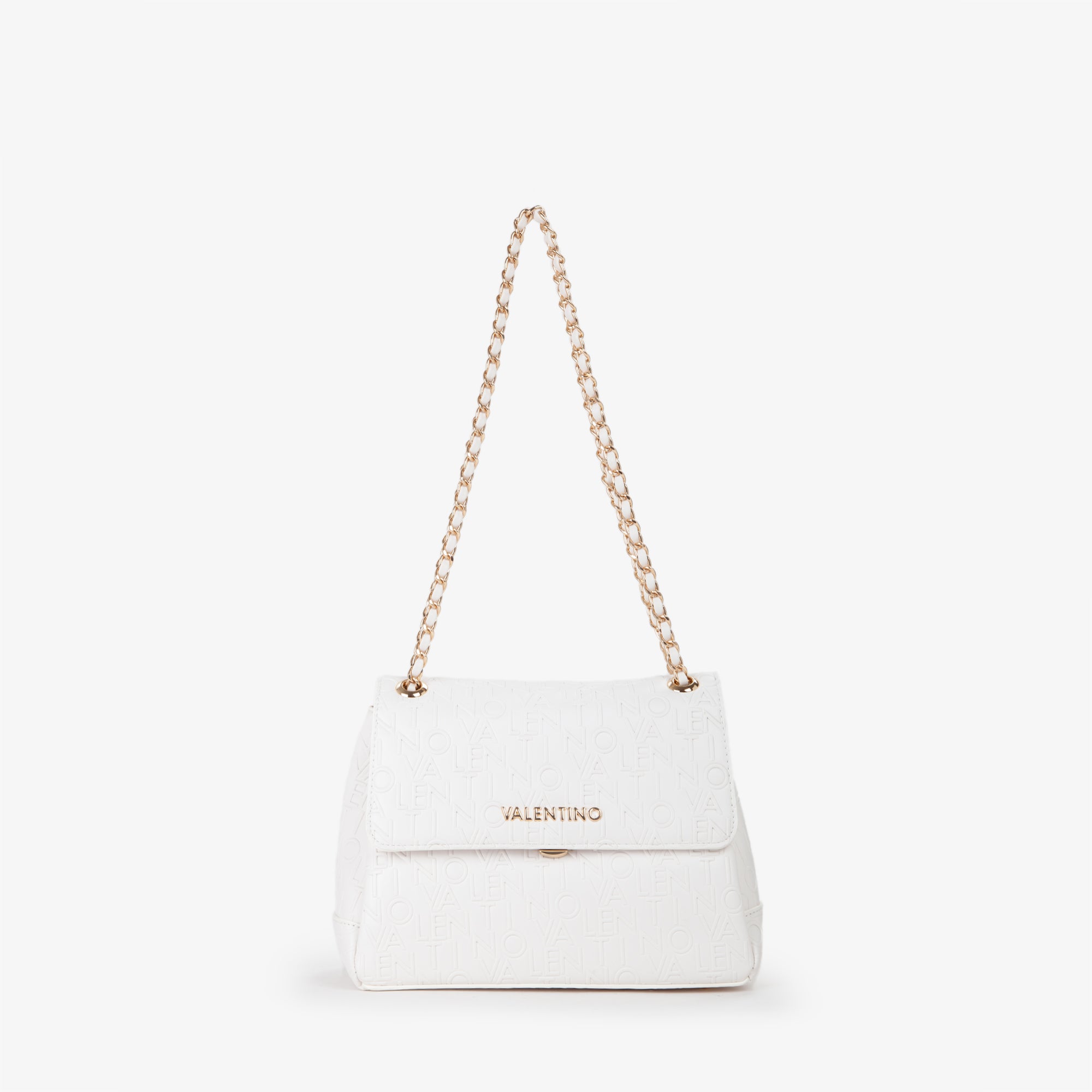 tracolla in nappa morbida logata con artwork allover rised up. Tracolla regolabile in catena infilata. Personalizzazione con letteremetalliche su patta.