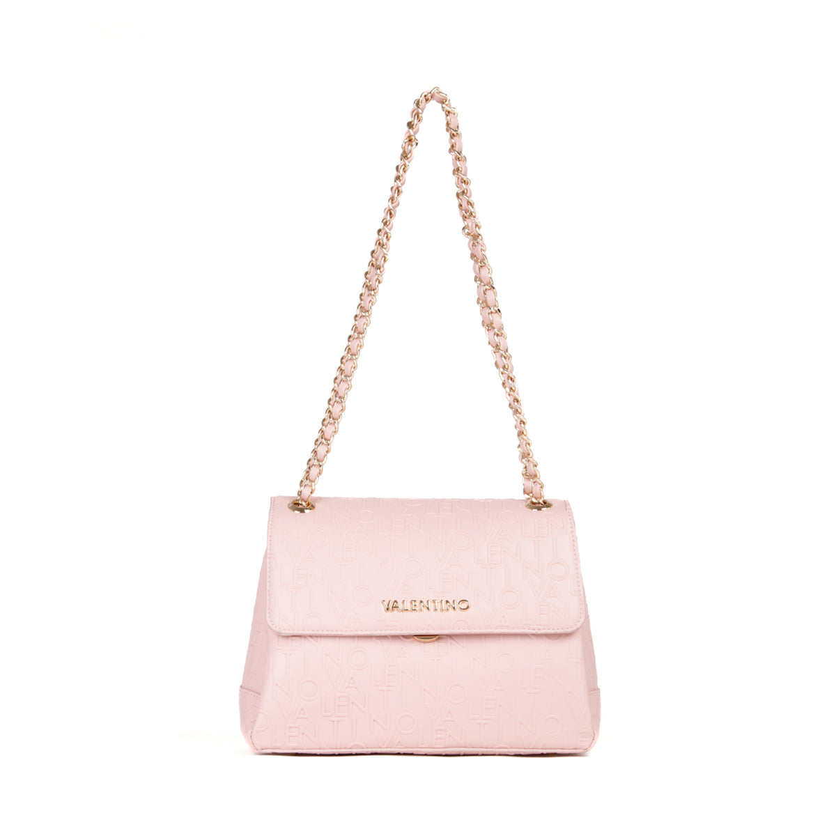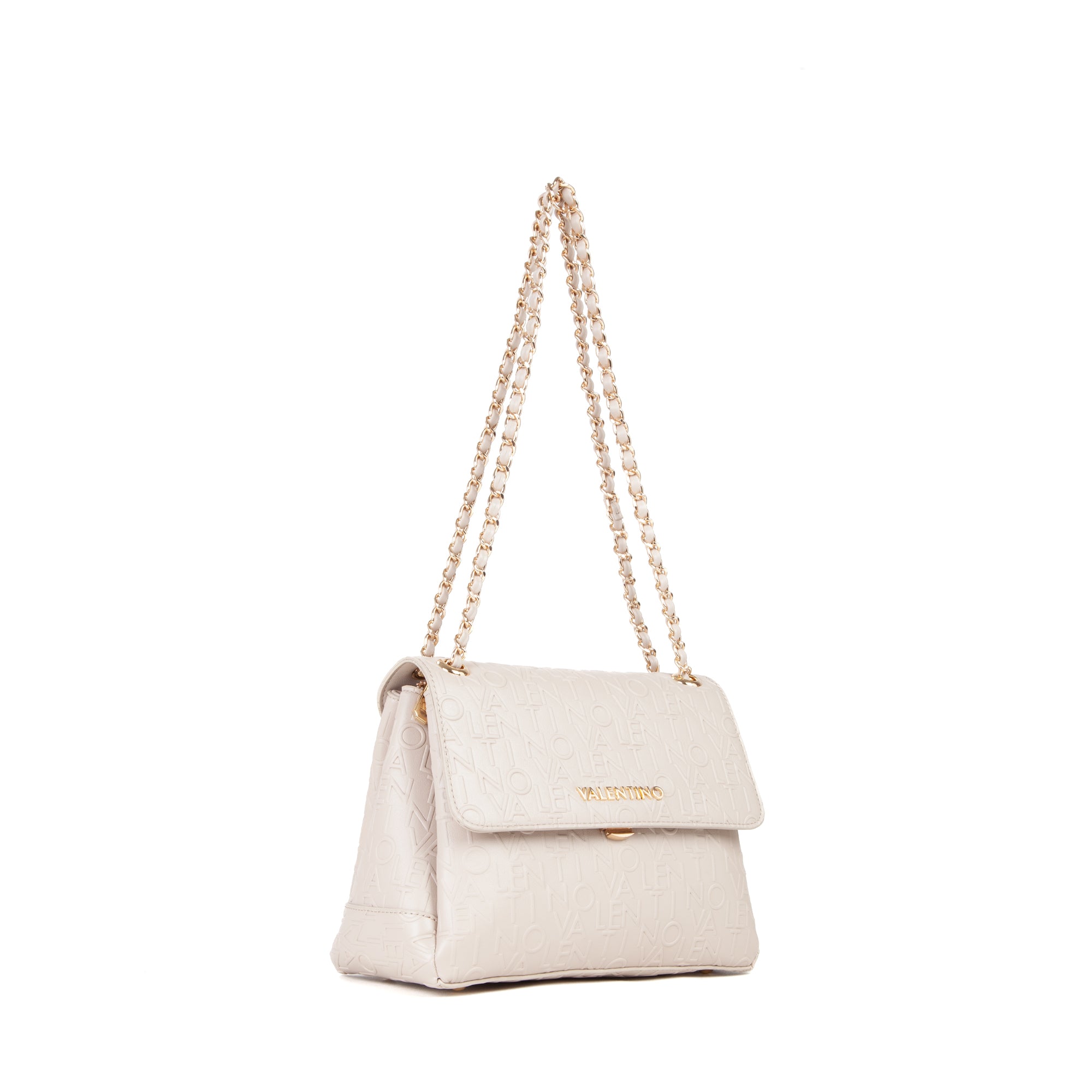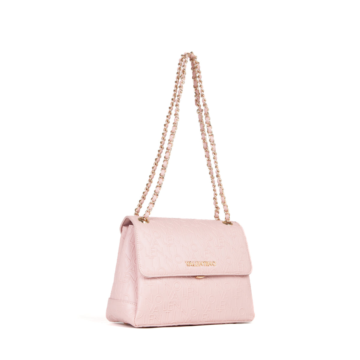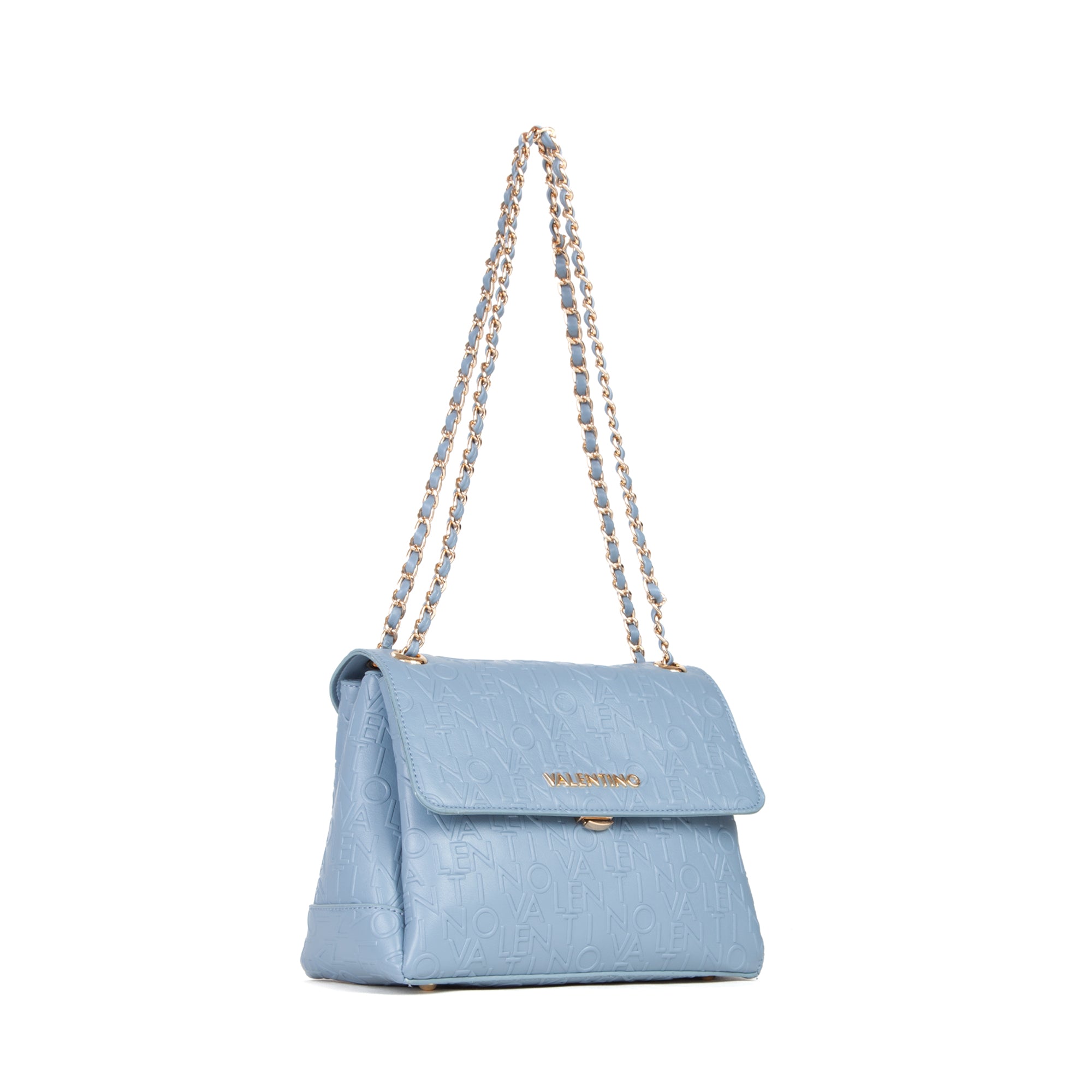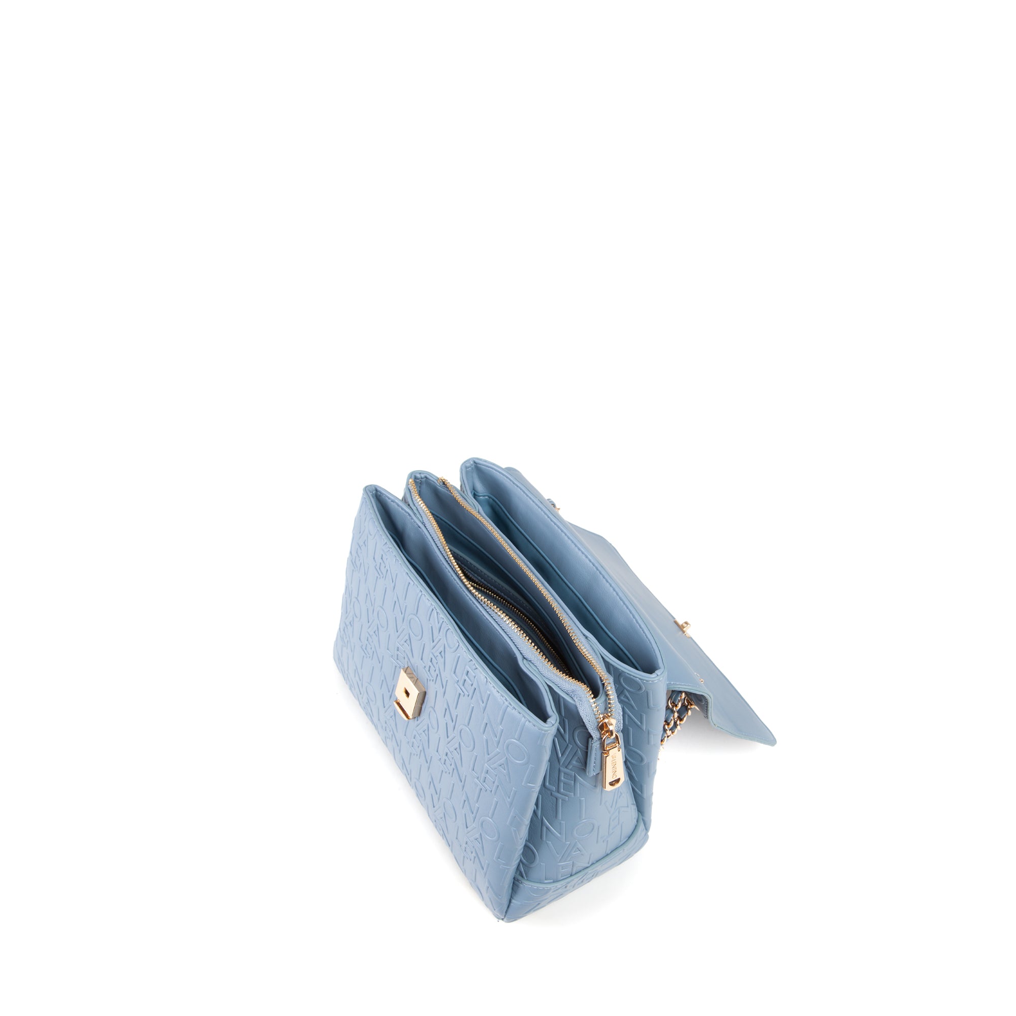 tracolla in nappa morbida logata con artwork allover rised up. Tracolla regolabile in catena infilata. Personalizzazione con letteremetalliche su patta.