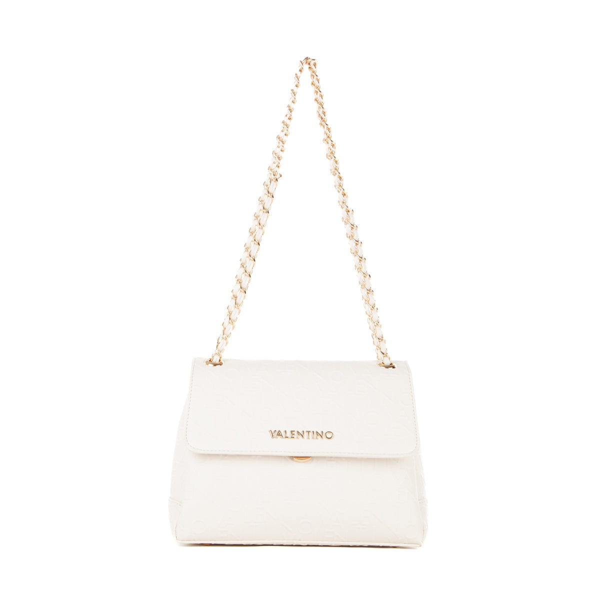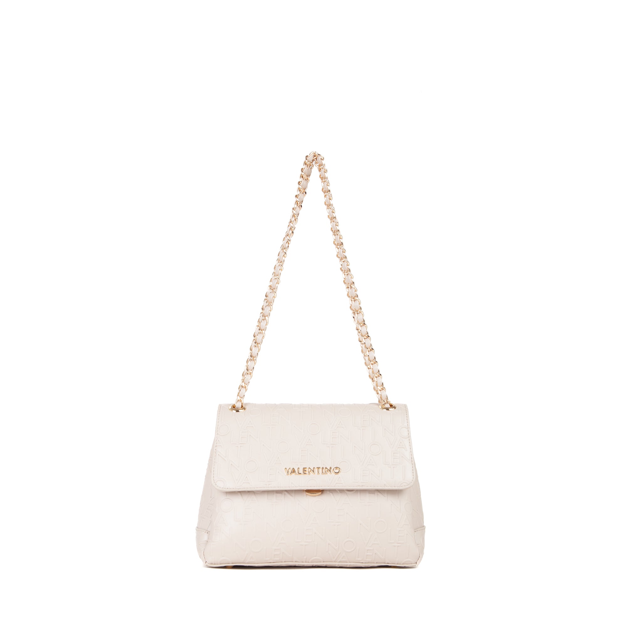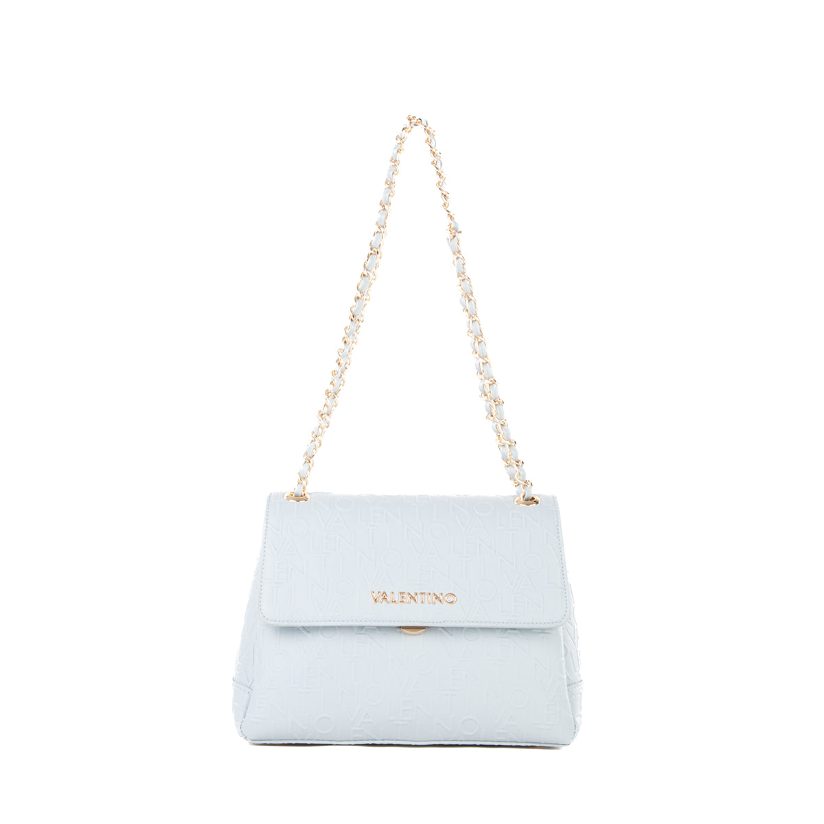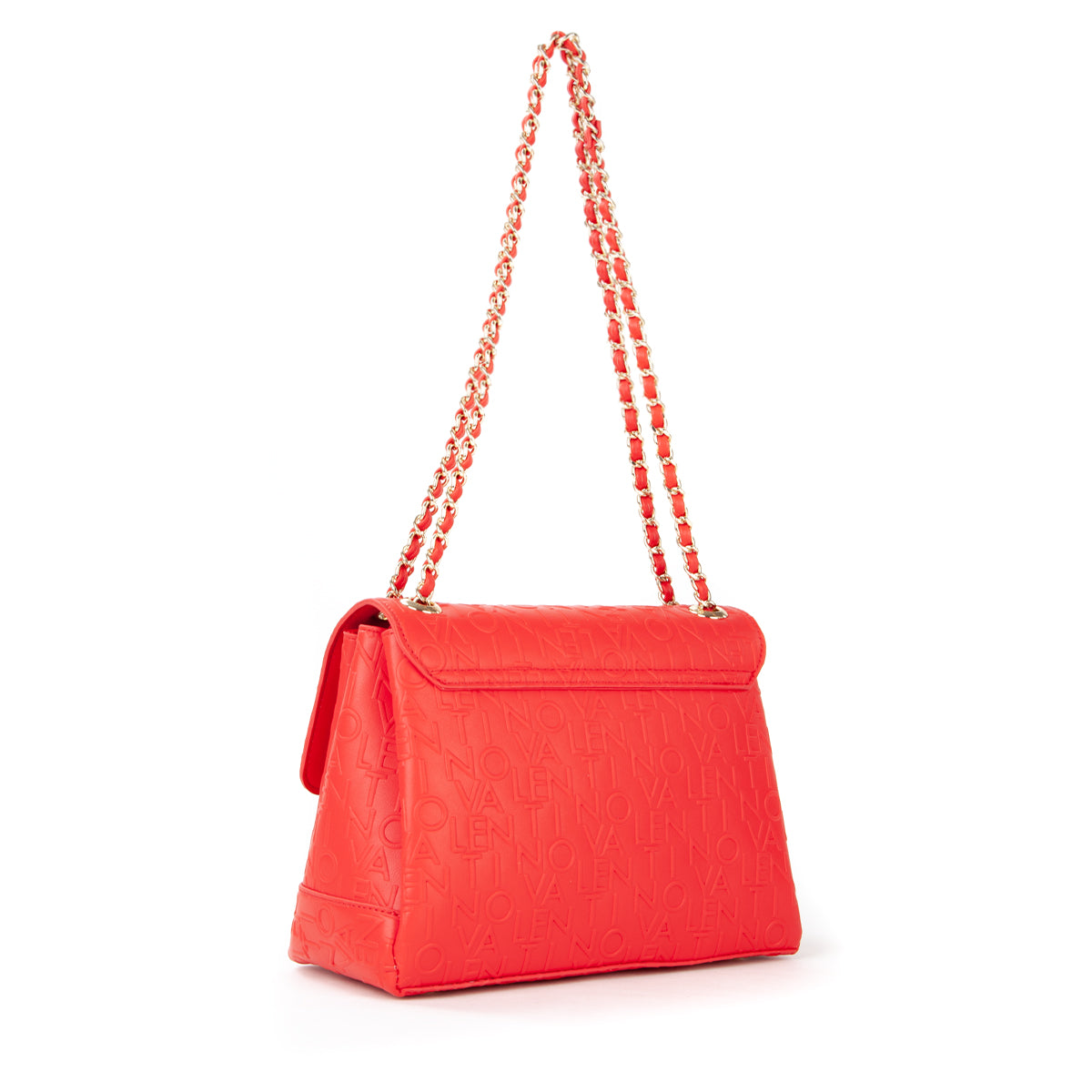 tracolla in nappa morbida logata con artwork allover rised up. Tracolla regolabile in catena infilata. Personalizzazione con letteremetalliche su patta.