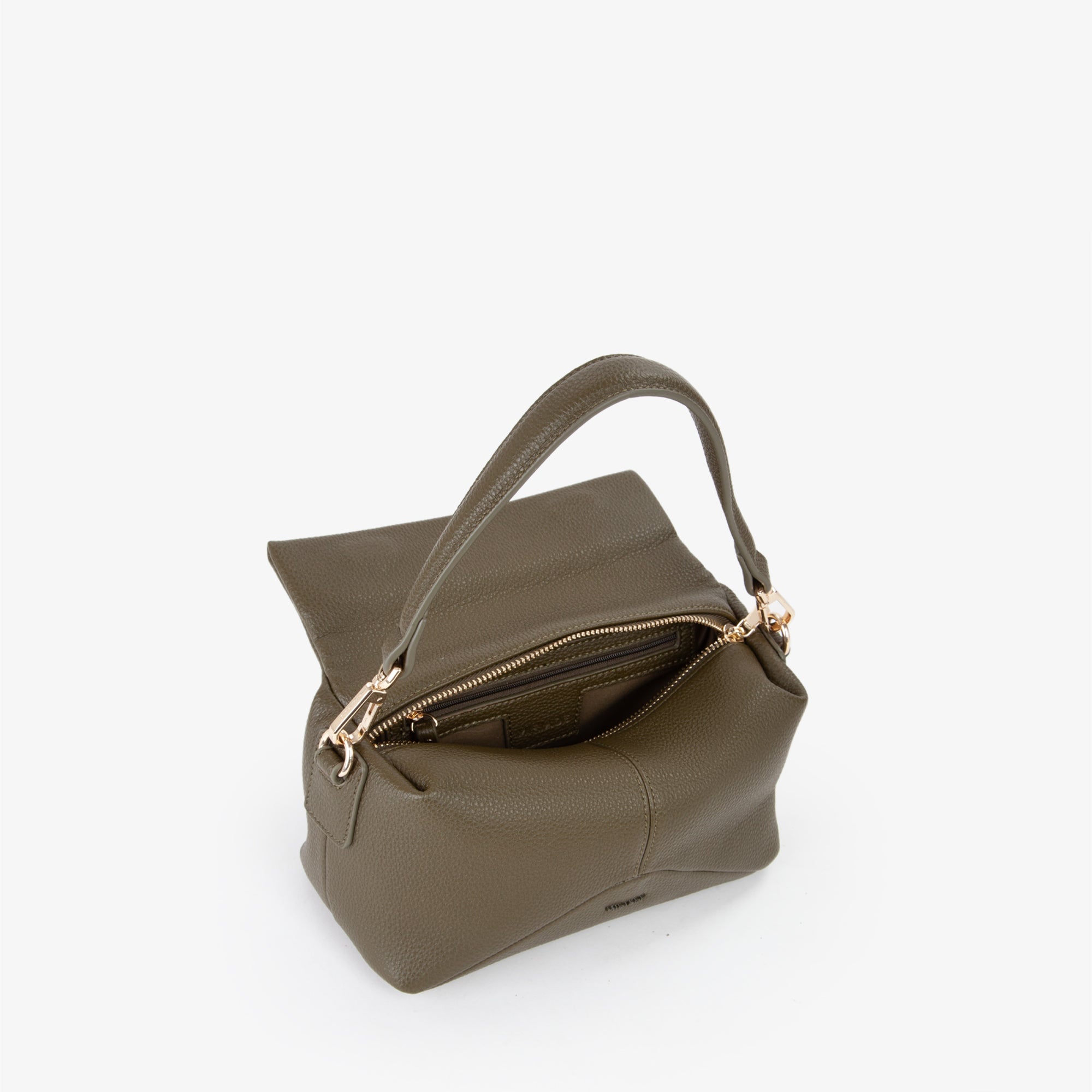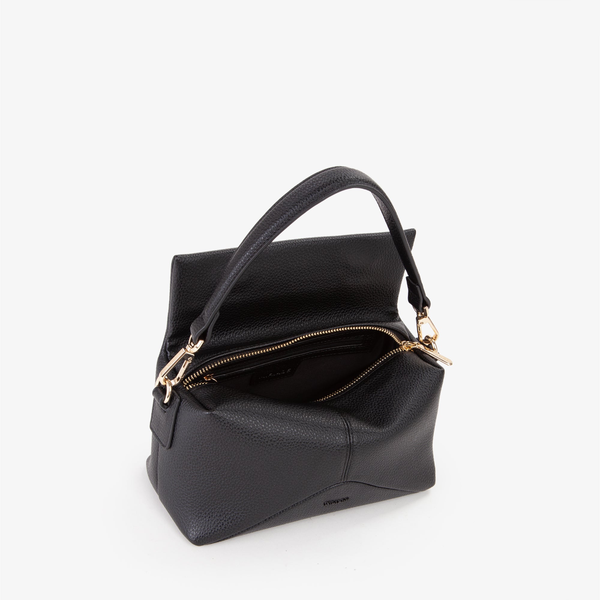 La borsa è dotata di un manico staccabile, che permette di portarla comodamente a mano. Inoltre, è presente una tracolla regolabilee staccabile, offrendo la versatilità di portarla anche a spalla. Questa combinazione di elementi rende la borsa ideale per l'uso quotidiano, adattandosi facilmente alle proprie esigenze.-Il dettaglio taglio sulla parte frontale forma una V rovesciata, creando unelemento distintivo che aggiunge un tocco di eleganza al design minimalista.-Perfetta per chi cerca un accessorio pratico e alla moda, questa borsa basica è un must-have nel guardaroba di ogni donna.undefined