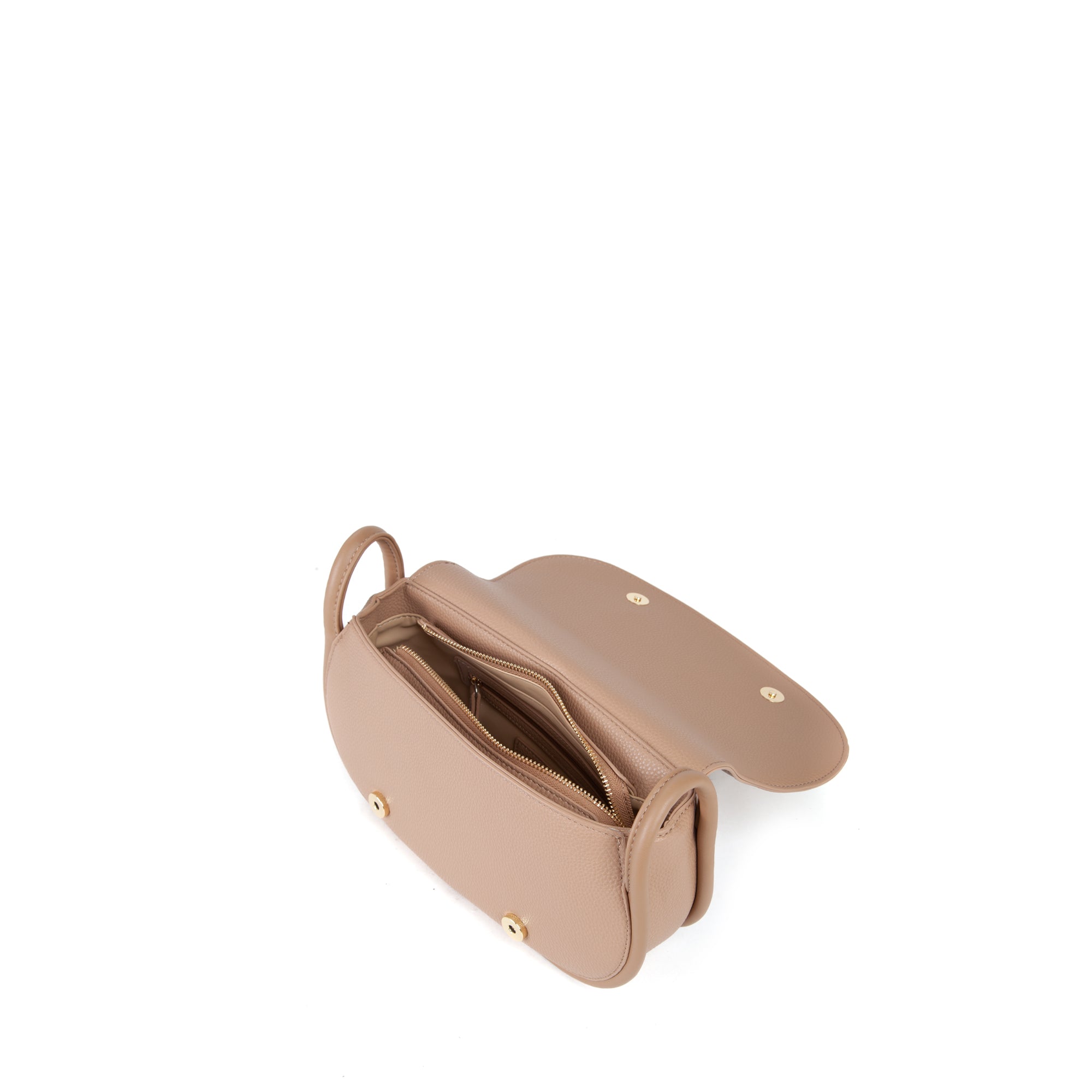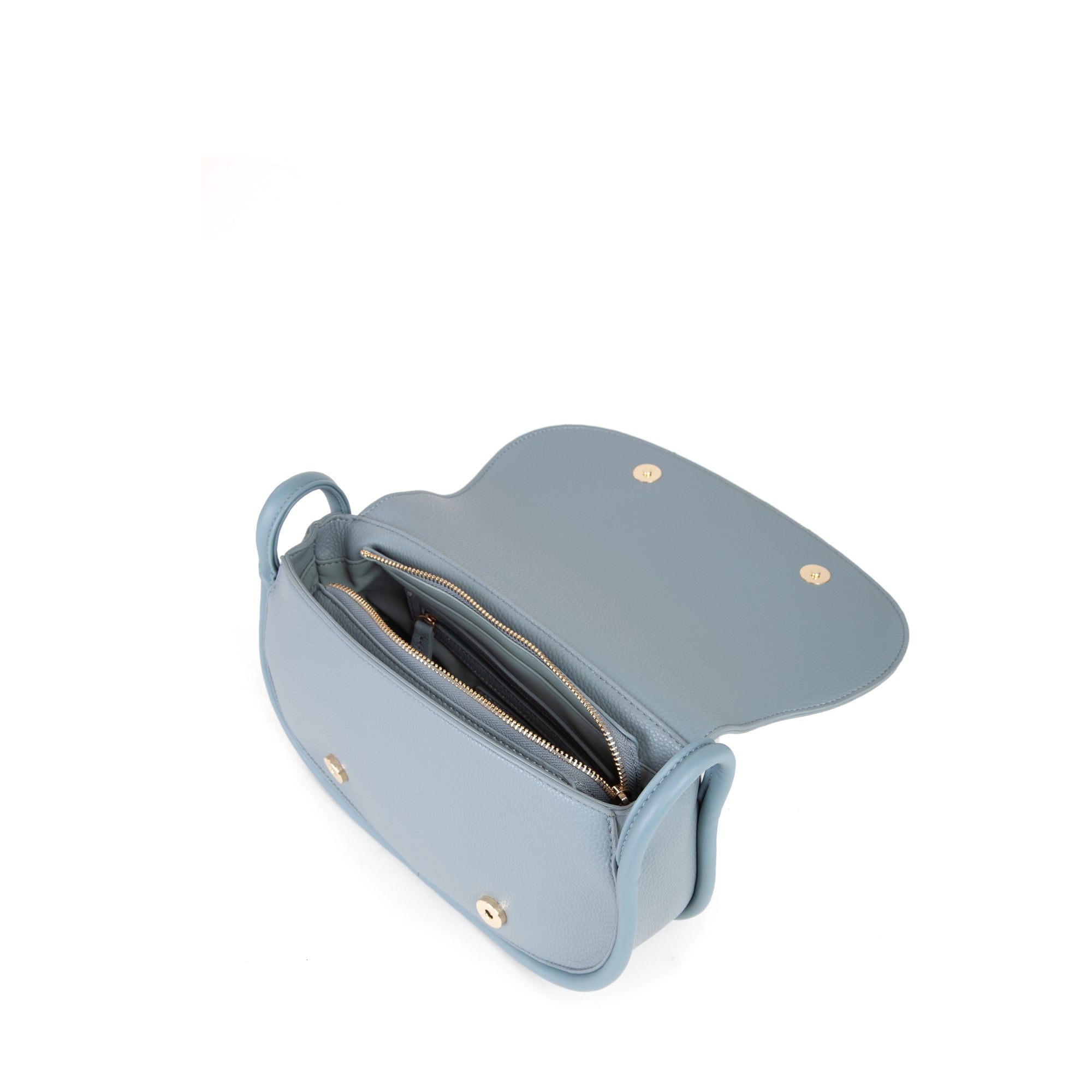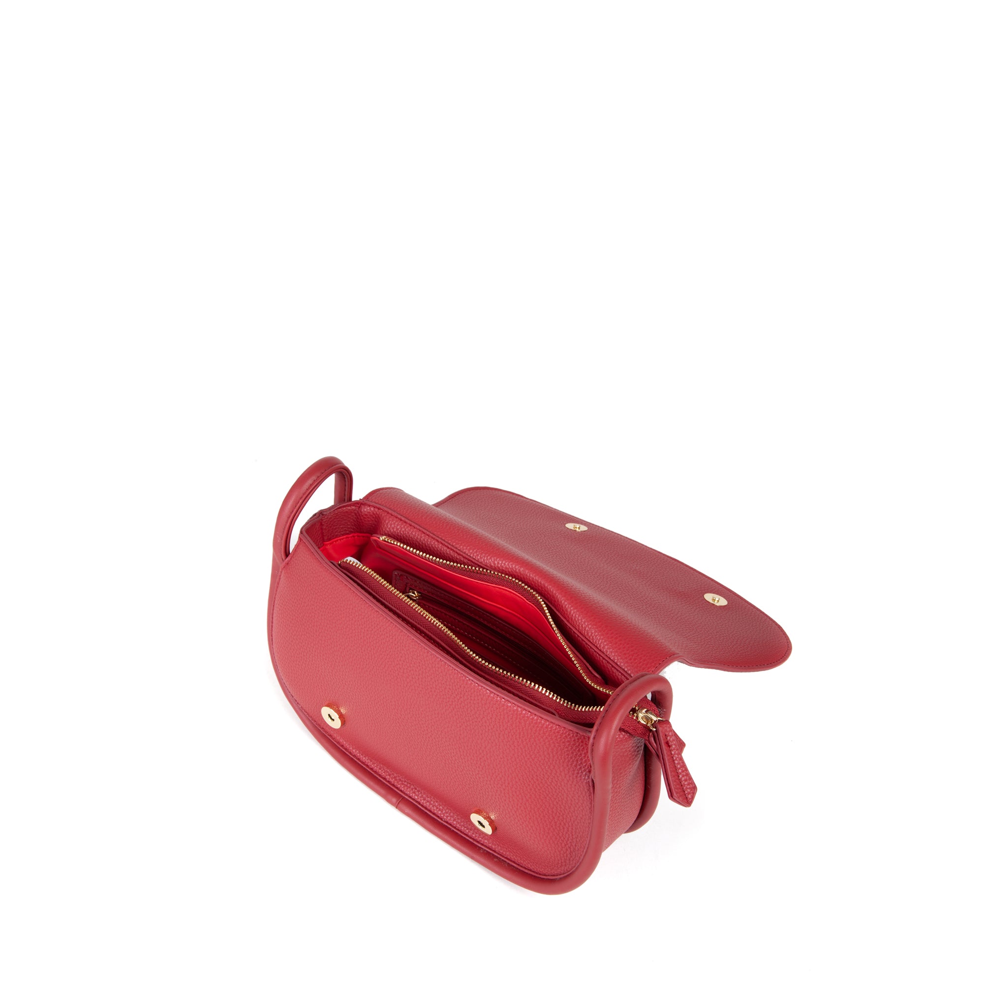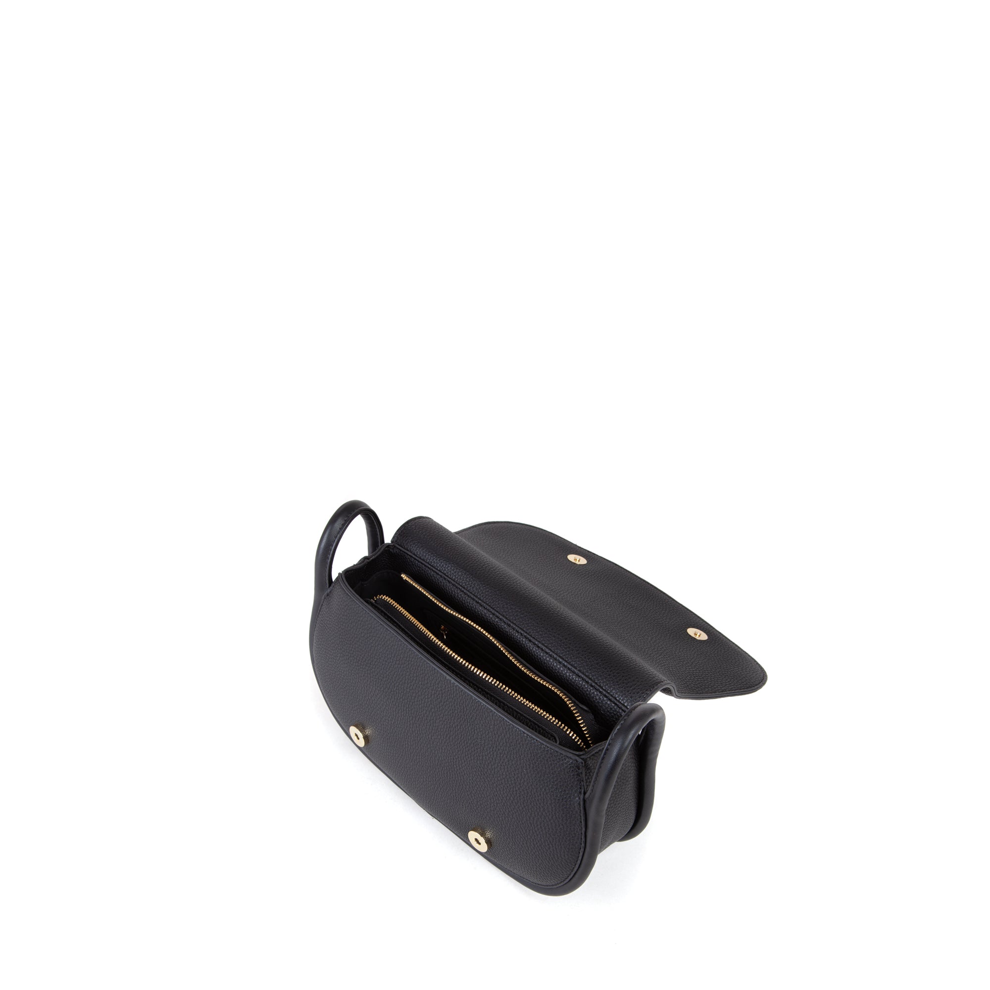 Pattina in grana e riporti in nappa, con tracolla a spalla in catena e spallaccio in corpo borsa. Il logo è in metallo sul fronte borsa. Dispone di una tracolla staccabile e regolabile.