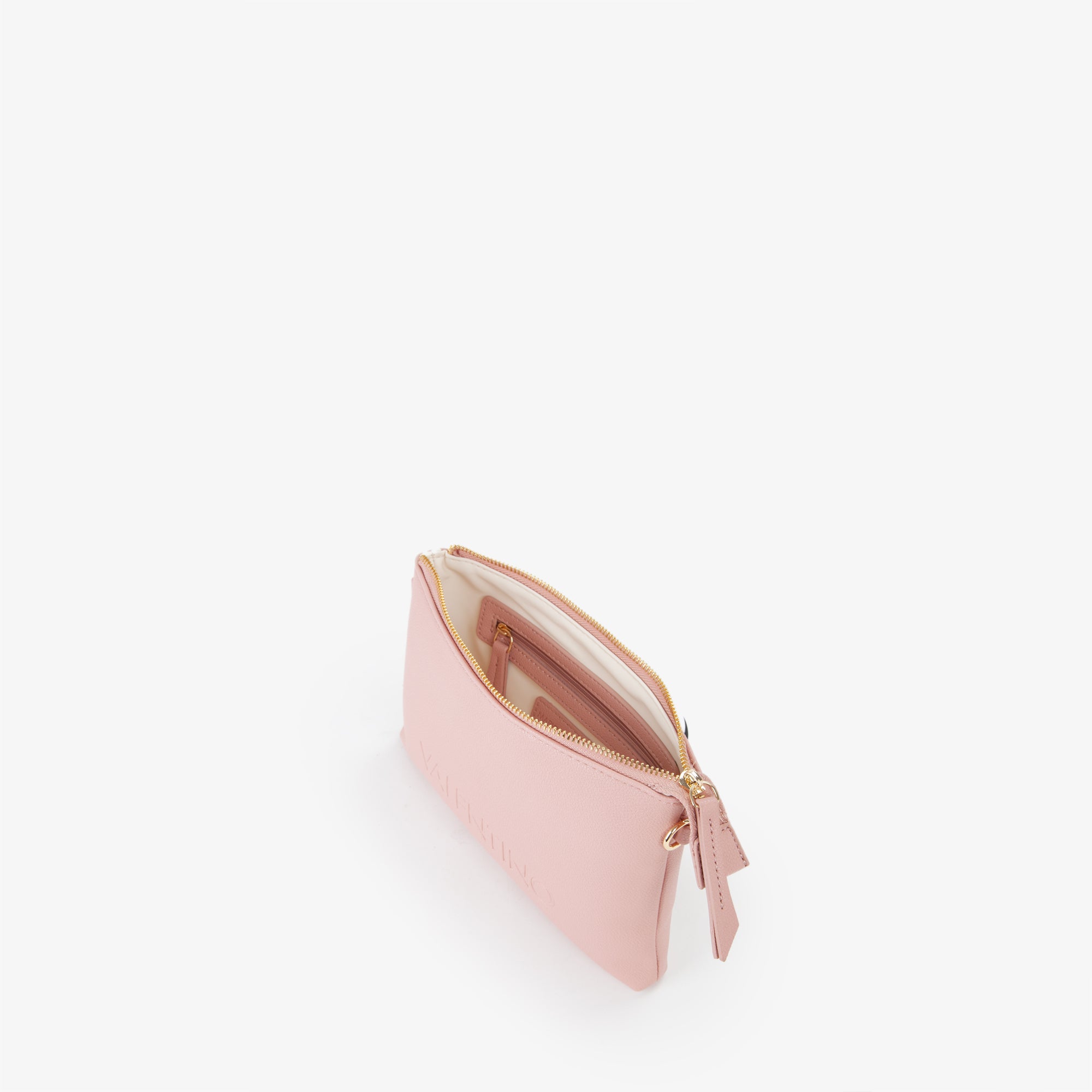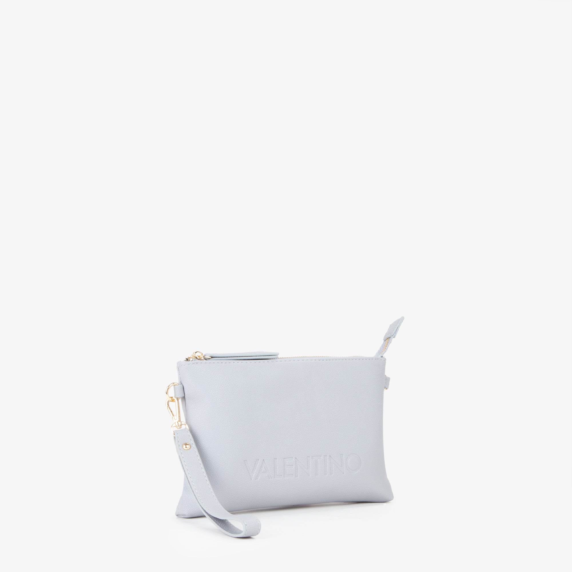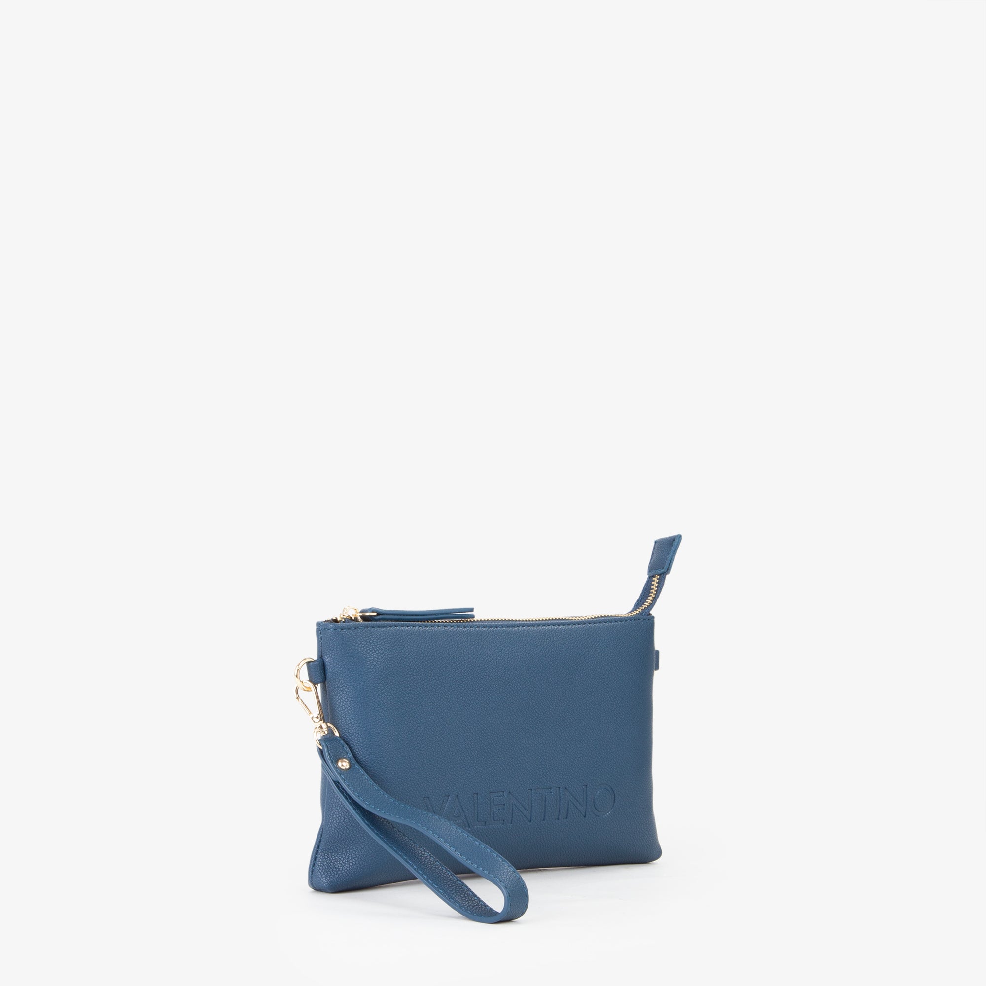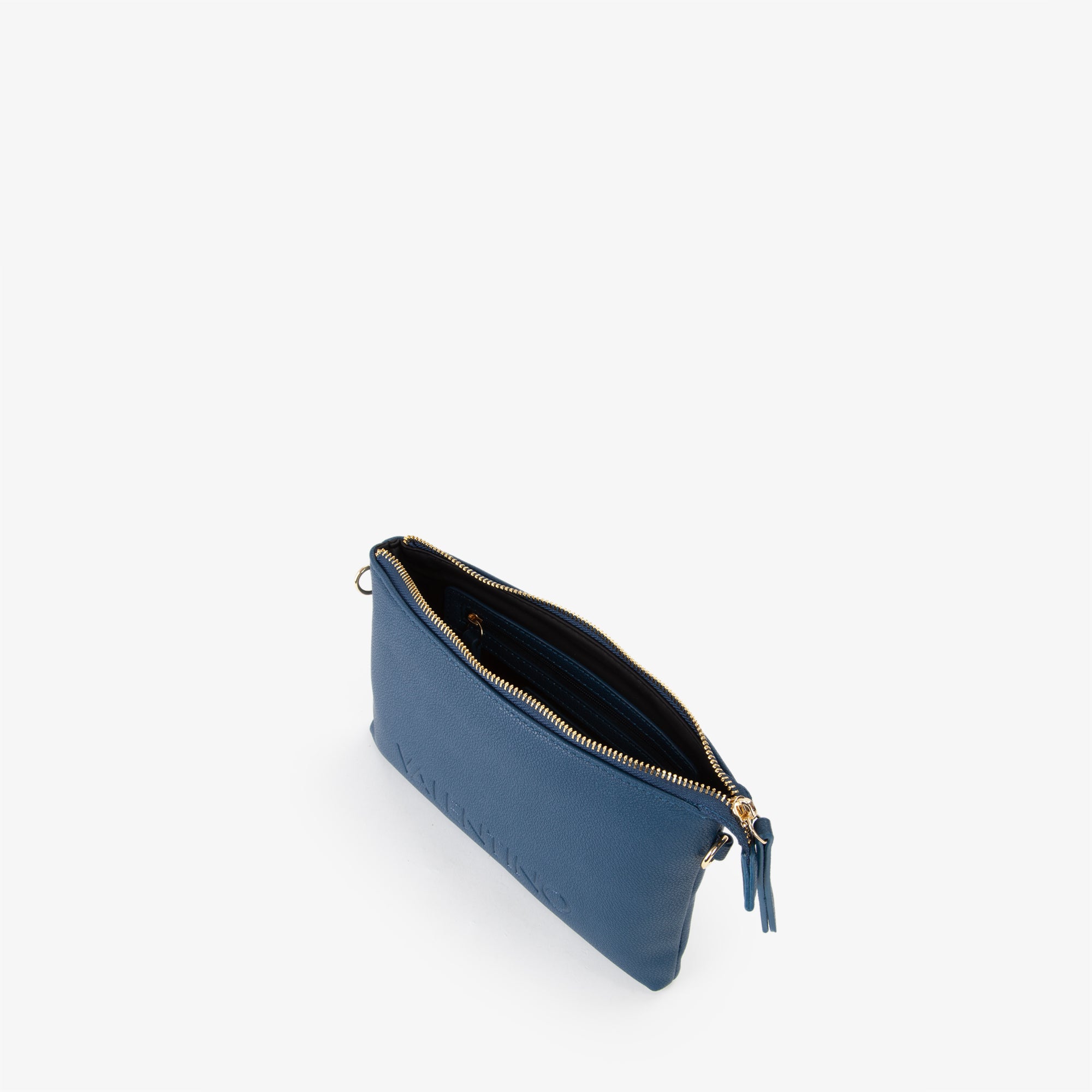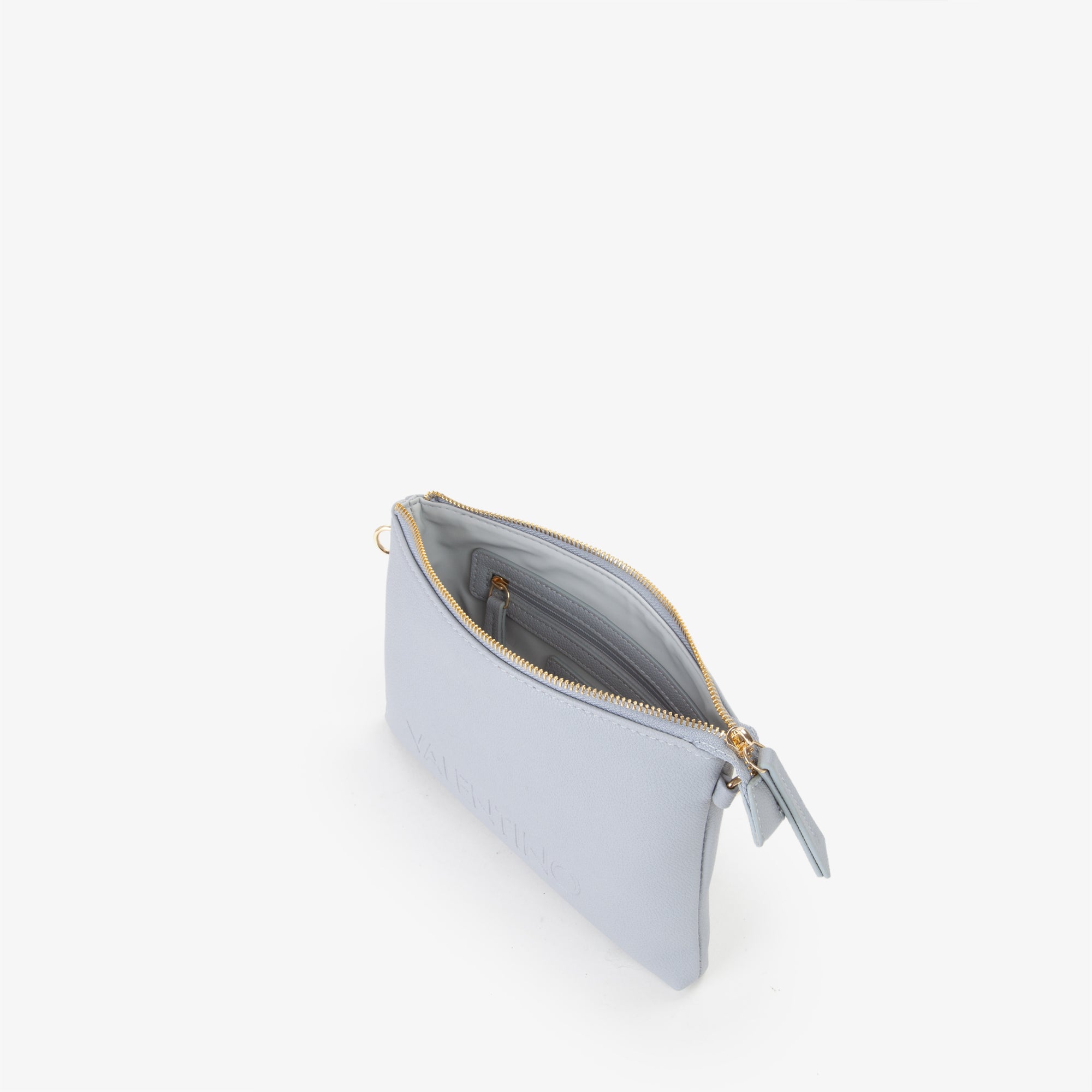 Pochette in grana con logo marchiato a fuoco. Dispone di una tracolla in nastro personalizzata e staccabile.