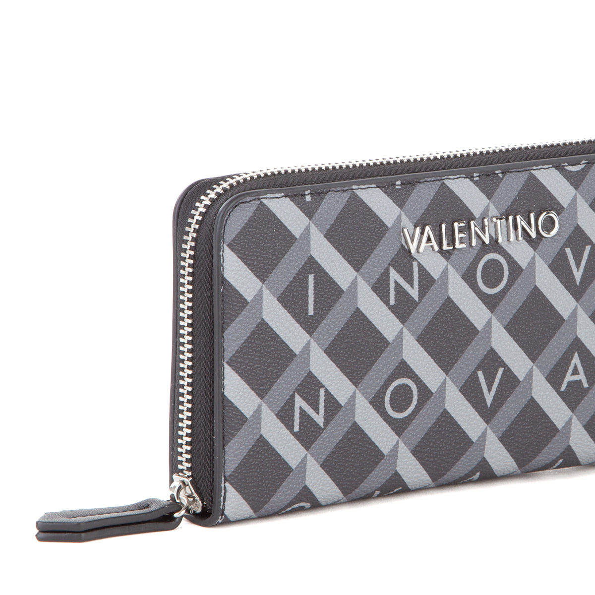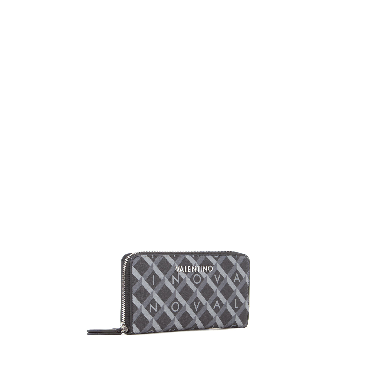 Portafoglio con zip, in morbida grana, con stampa logata multicolor