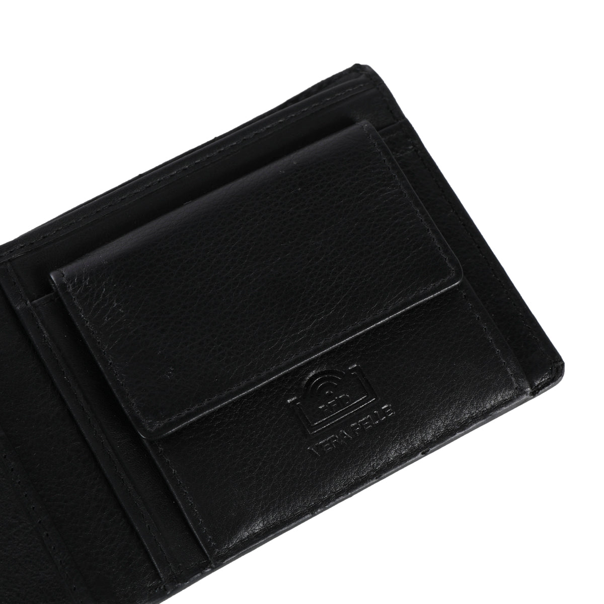 Portafogli in pelle , con logo in gomma e in tinta al materiale, pellame Opaco per un prodotto trasversale semplice .