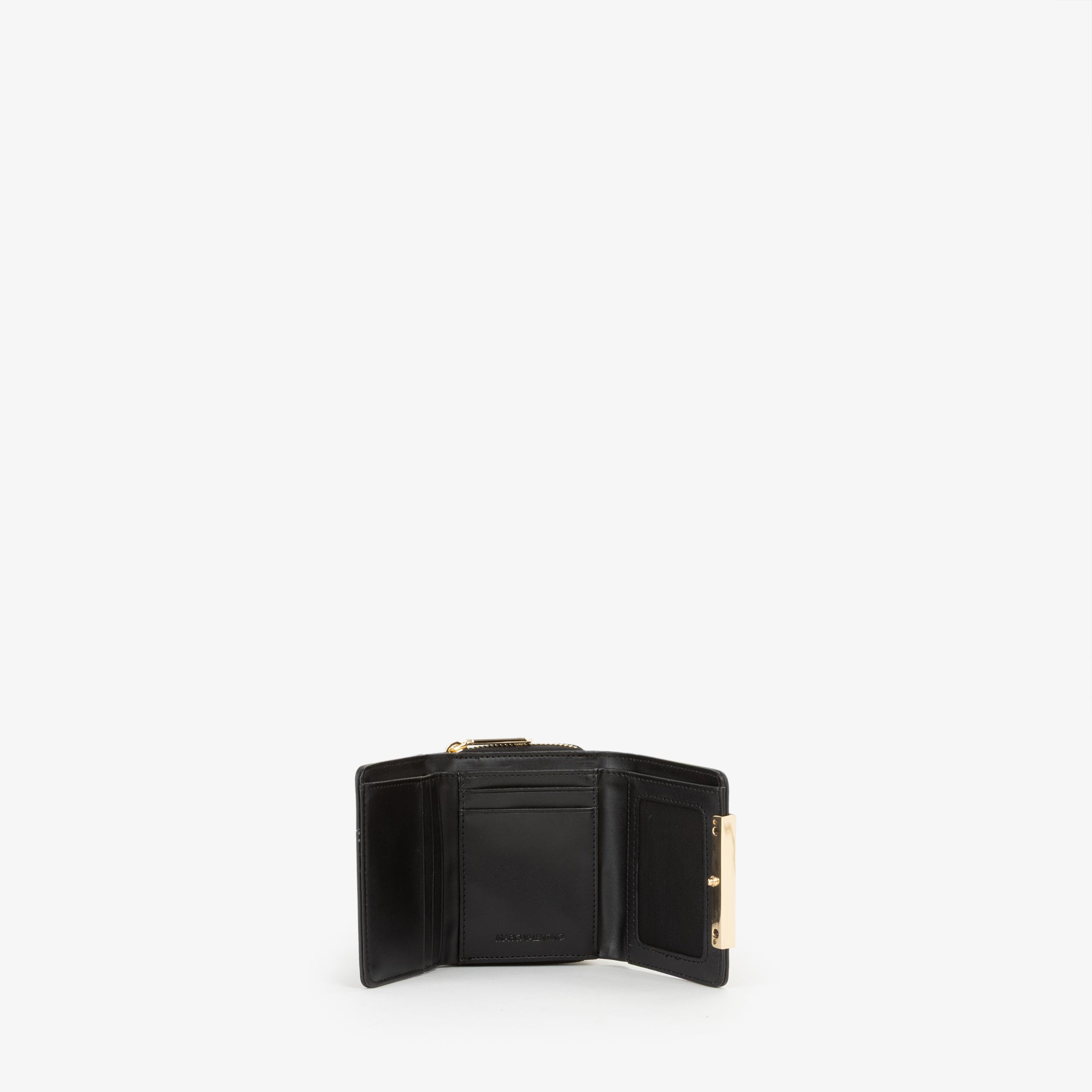 Portafoglio con patta, è presente il logo sulla parte si metallo, che funge da chiusura