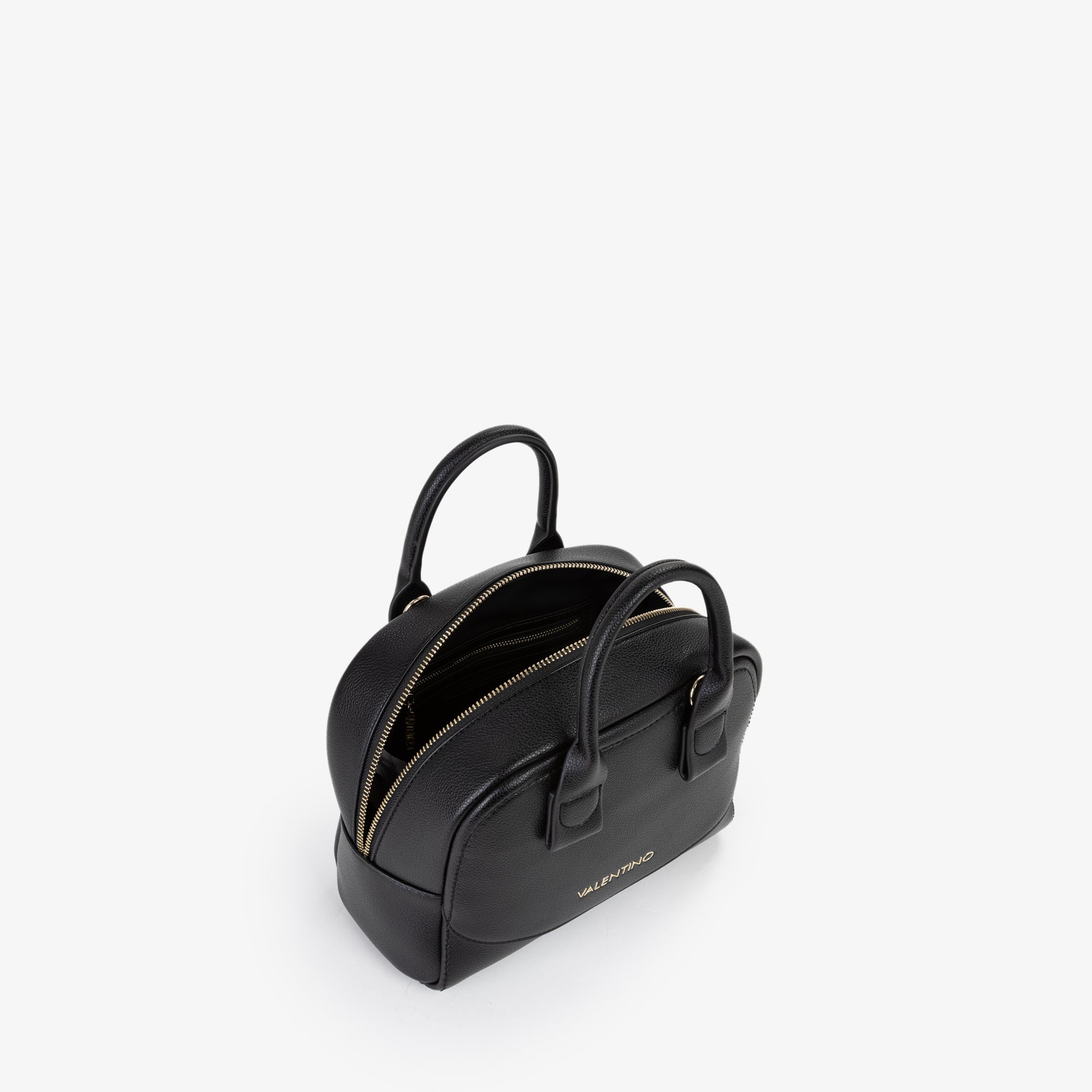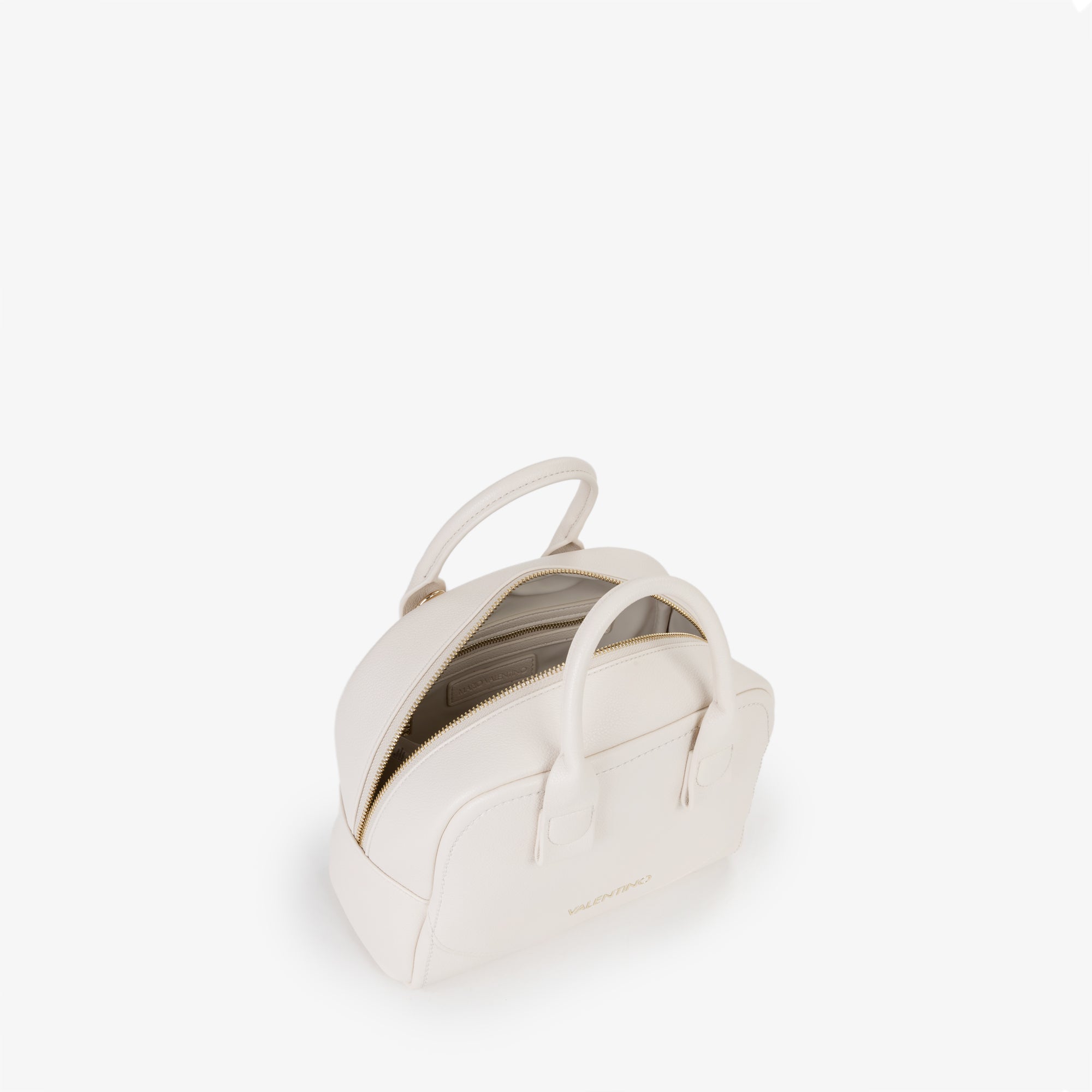 Morbido bauletto, con particolare attacco manico e con logo lettere in gomma. Presente anche una tracolla in nastro logata.