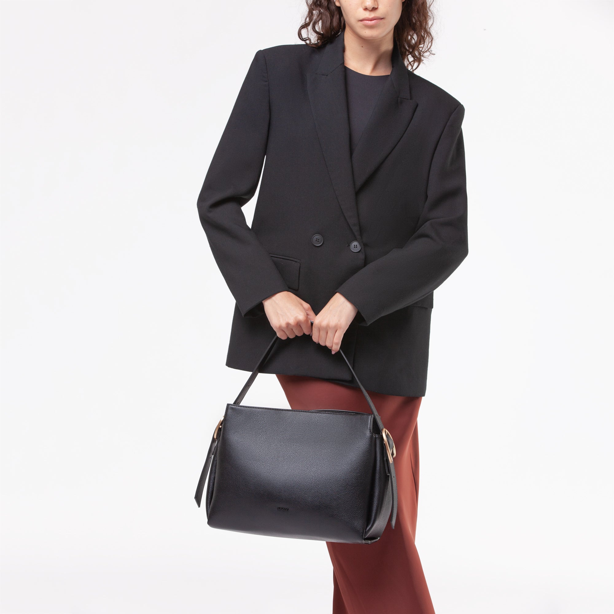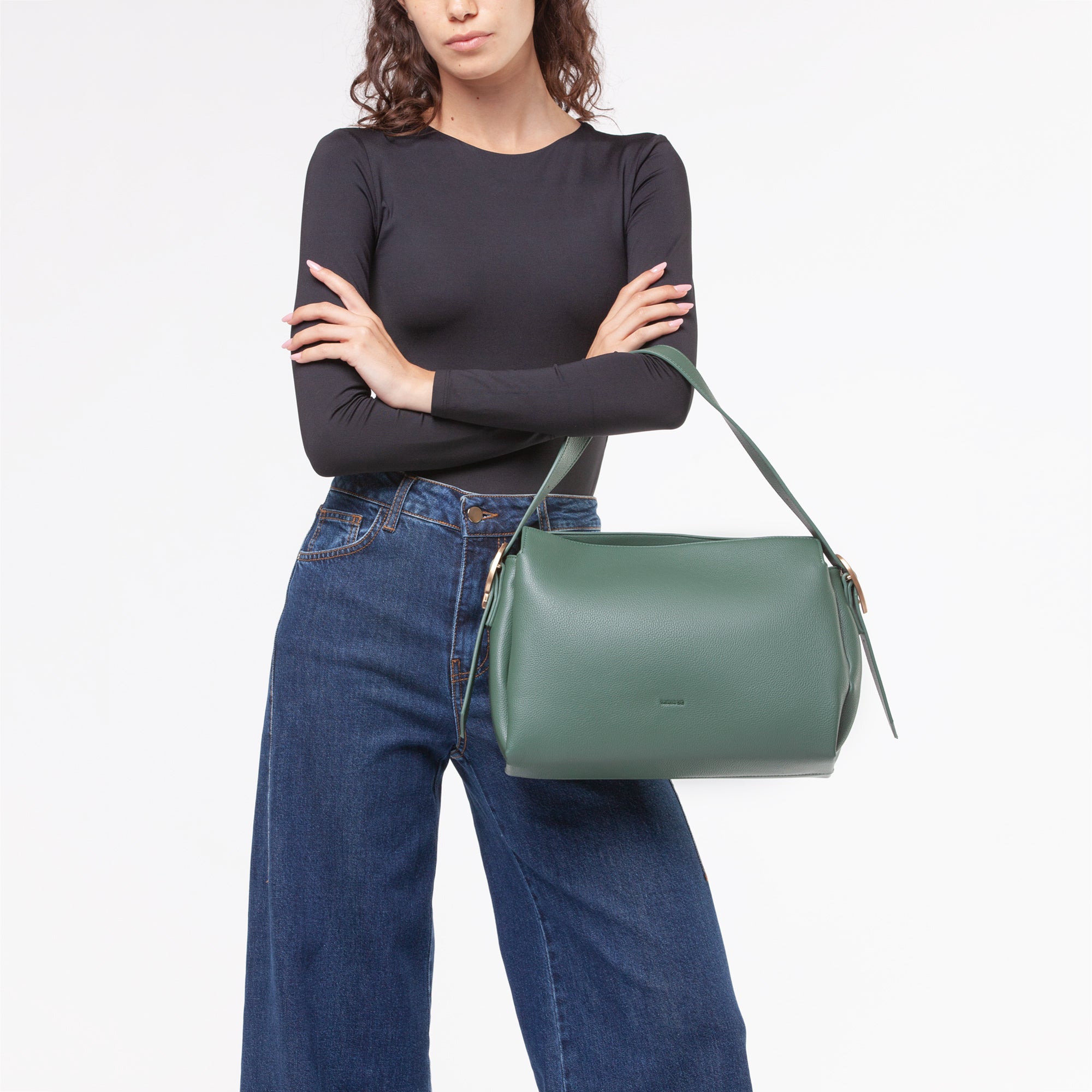 sacca in grana morbida, un accessorio elegante e versatile perfetto per ogni occasione.-Il design della sacca è caratterizzato da unmanico regolabile, che permette di adattare la lunghezza per un comfort ottimale. Il manico è fissato alla borsa tramite una fibbiaovale, un dettaglio distintivo che aggiunge un tocco di eleganza e raffinatezza.-Le dimensioni della sacca sono ideali per l'uso quotidiano, offrendo stabilità e comfort durante il trasporto. La chiusura superiore è pratica e sicura, permettendo di portare con setutti gli oggetti essenziali con stile.