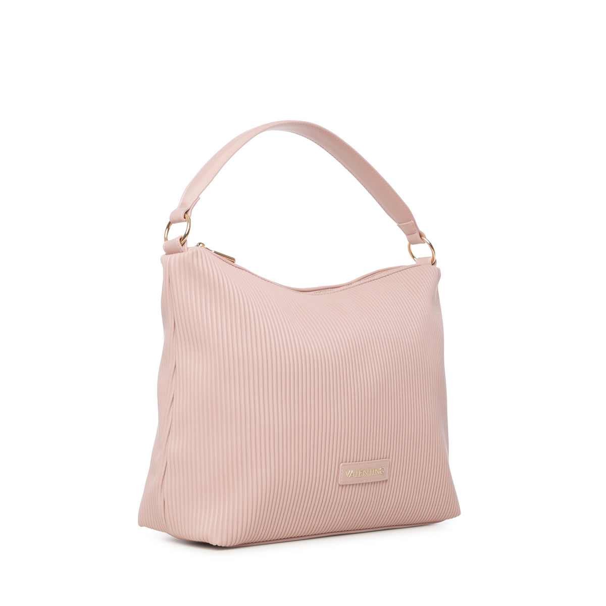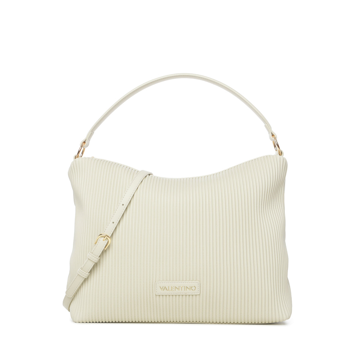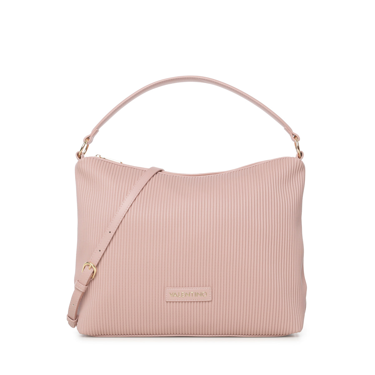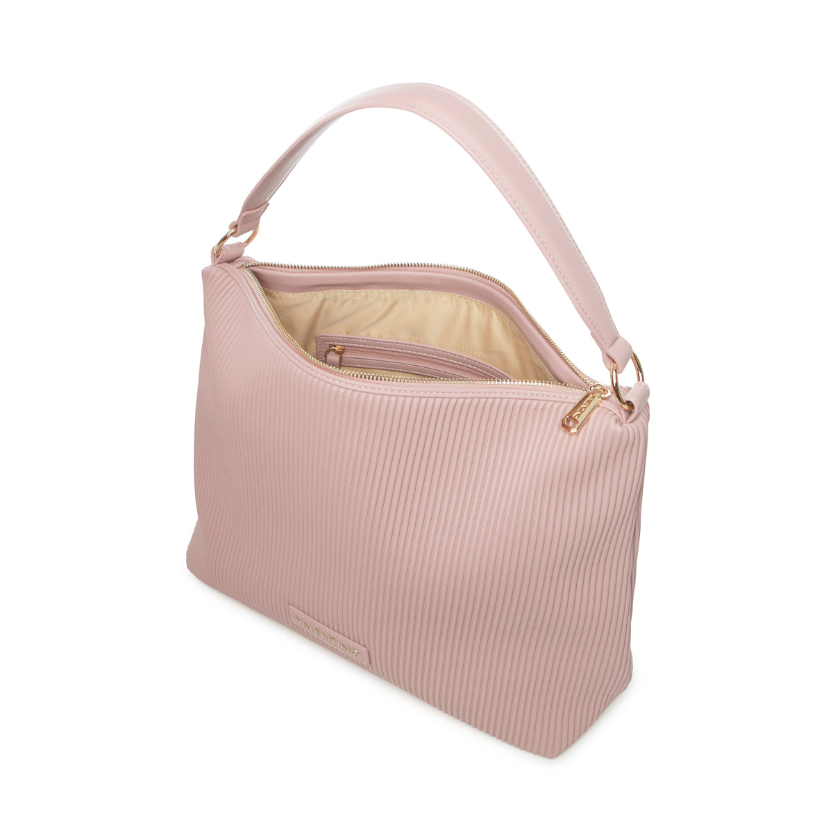 sottospalla in morbido plissé con riporti in nappa in tono. Chiusura con zip, tracolla extra regolabile e personalizzazione con lettere metalliche su patch.