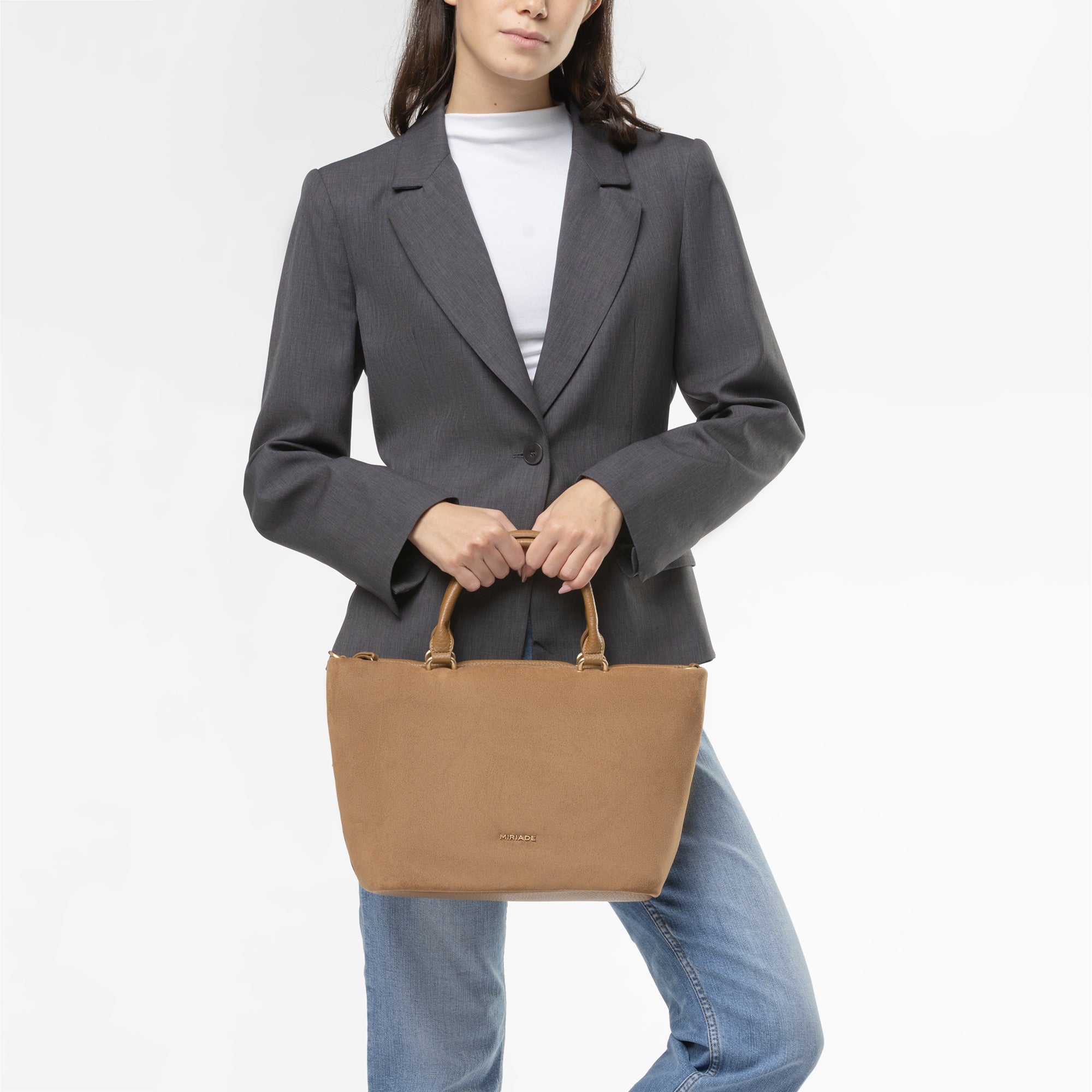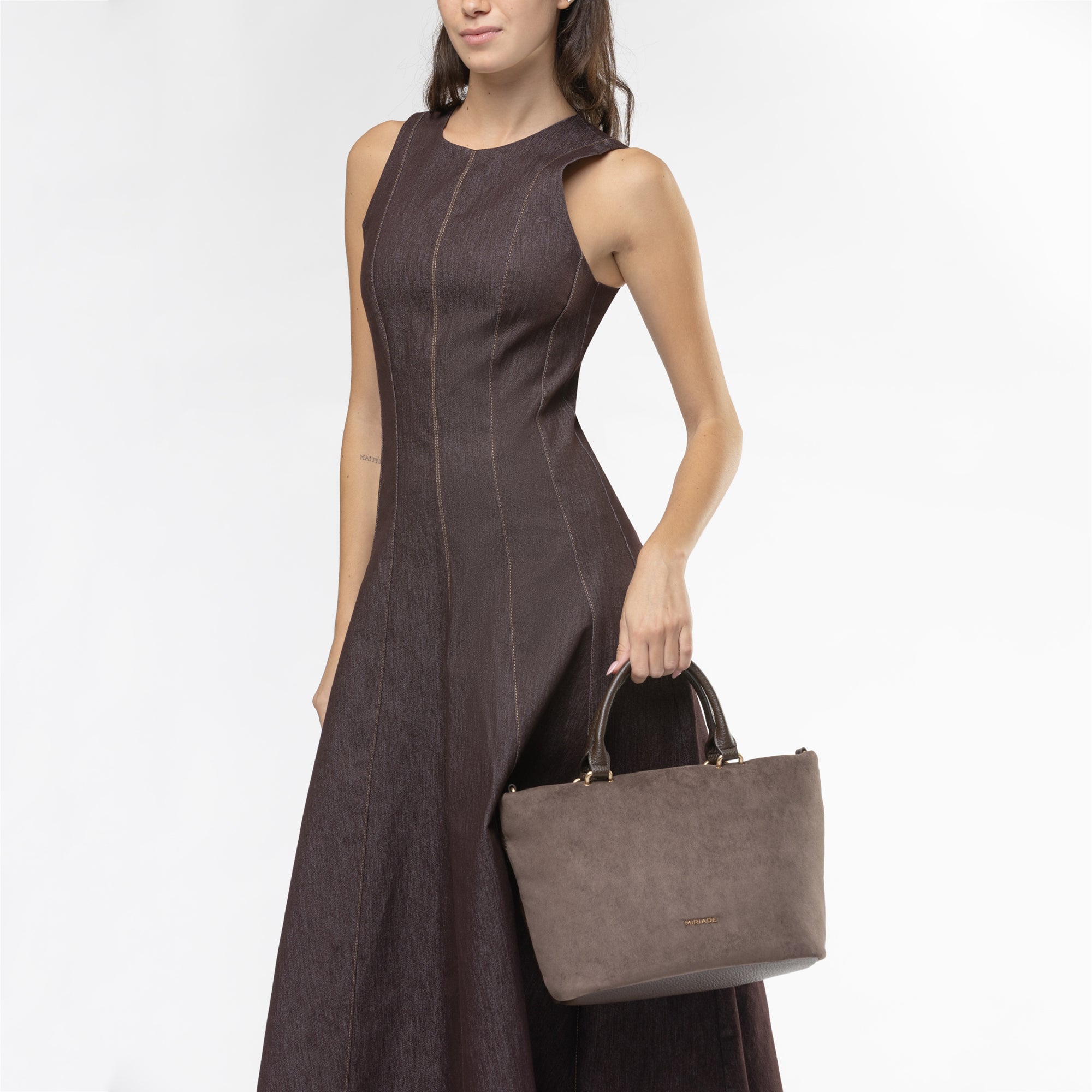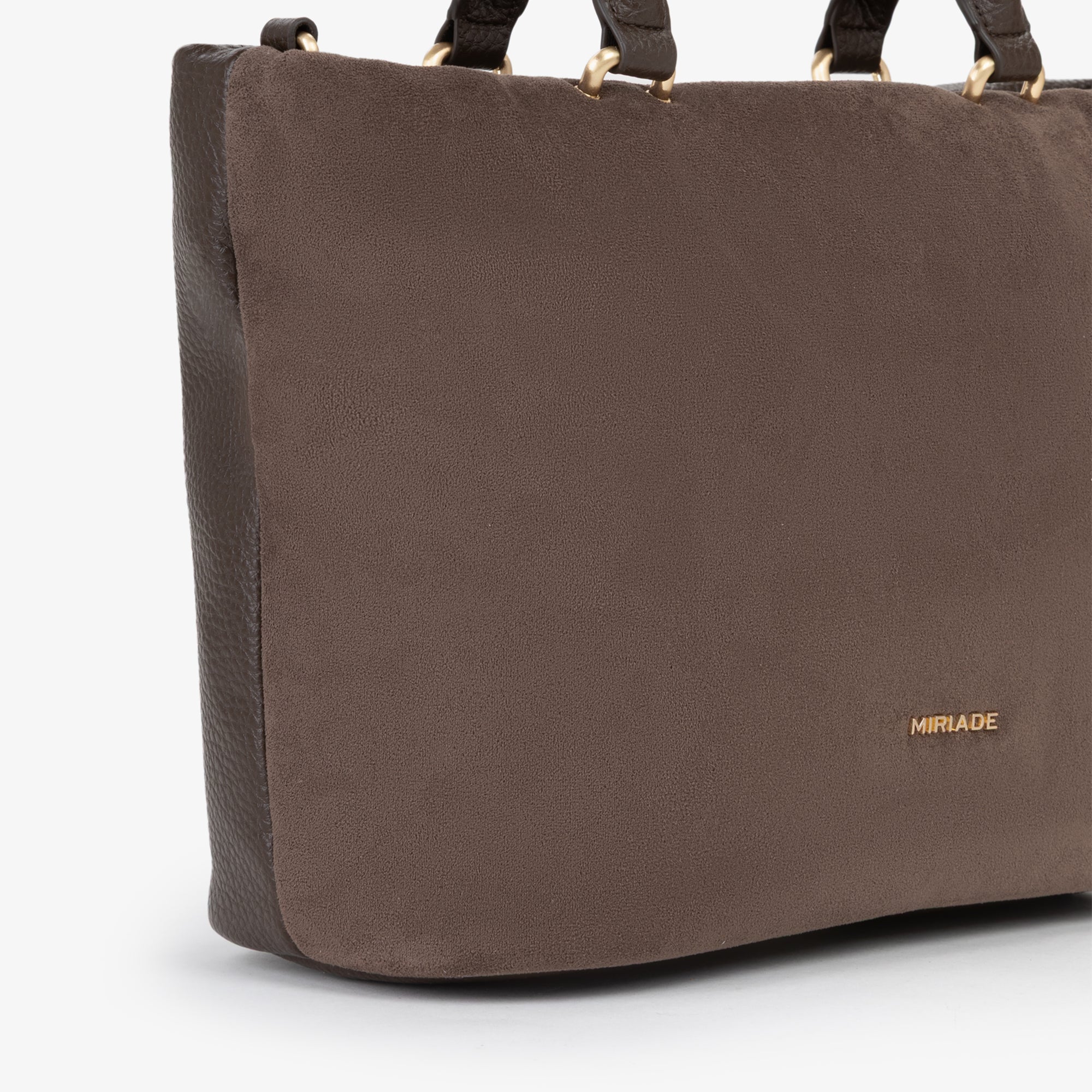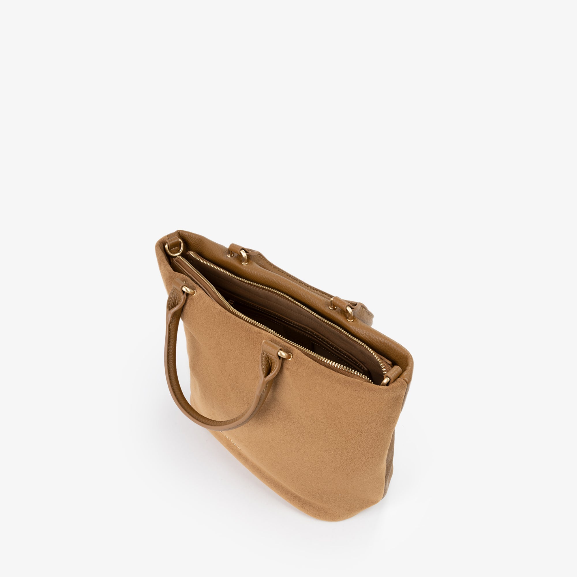 Il corpo principale della borsa è realizzato in morbido suede, conferendo un aspetto lussuoso e una sensazione piacevole al tatto. Idettagli del manico tubolare, realizzati in grana, garantiscono una presa comoda e sicura, oltre a una maggiore durabilità. La borsa è dotata di una chiusura superiore con zip, assicurando la protezione degli oggetti personali.-Grazie alla sua capienza e al design morbido, questa borsa è ideale per l'uso quotidiano, offrendo spazio sufficiente per tutti gli essenziali. Il mix di materiali e la cura dei dettagli rendono questa borsa un must-have per chi cerca stile e funzionalità in un unico accessorio.undefined