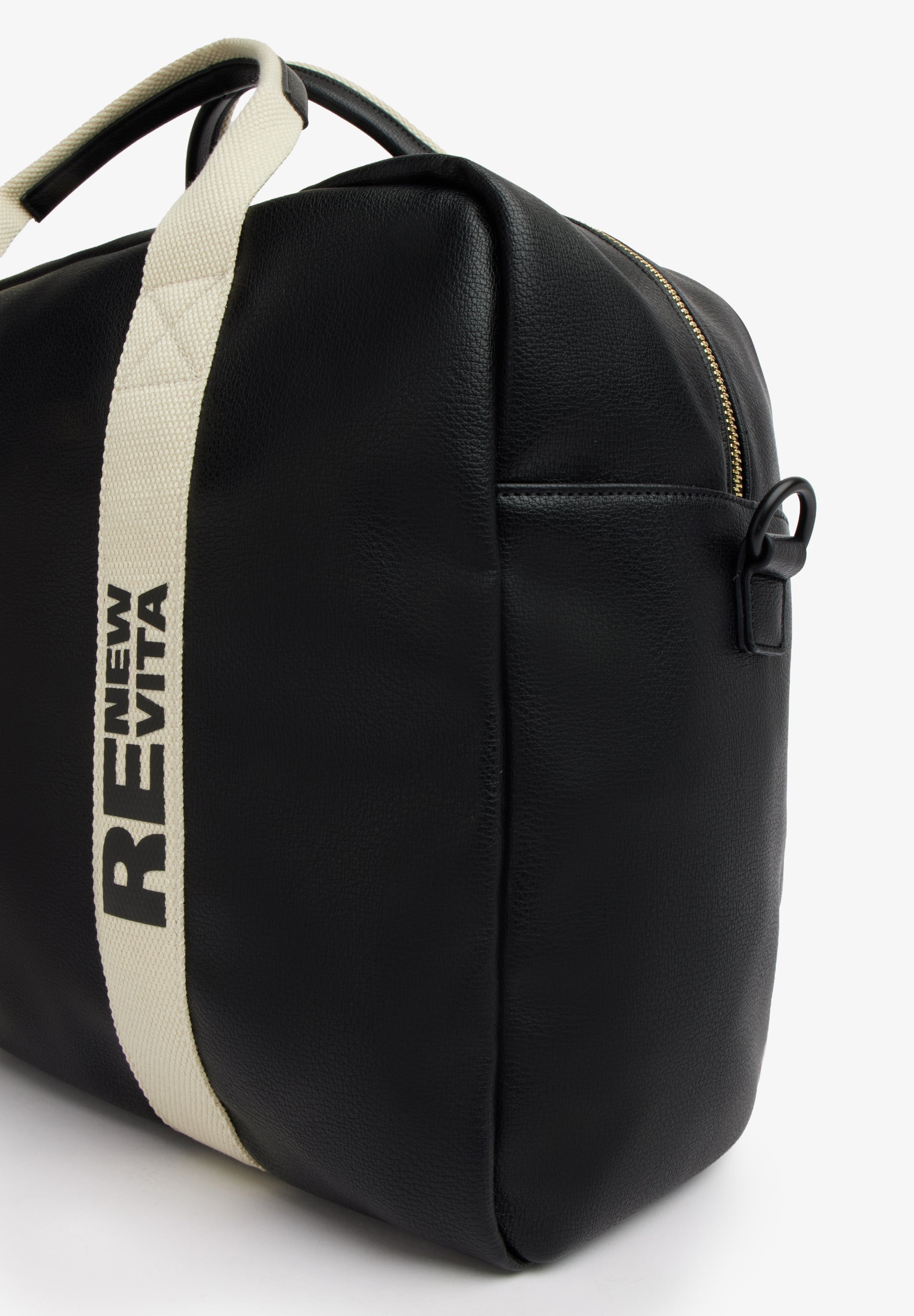 Borsa in similpelle riciclata, compatta, resistente ed eco-friendly.-Dotata di un'apertura pratica con zip e di due manici in webbing logato che aggiungono un tocco urban e sportivo, è compatta ma al tempo stesso molto capiente. Un accessorio versatile e funzionale, ideale sia per i viaggi che per l'uso quotidiano.