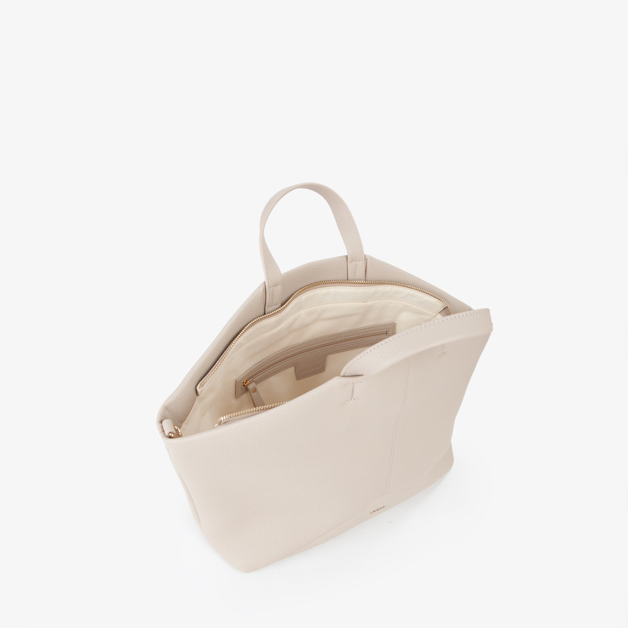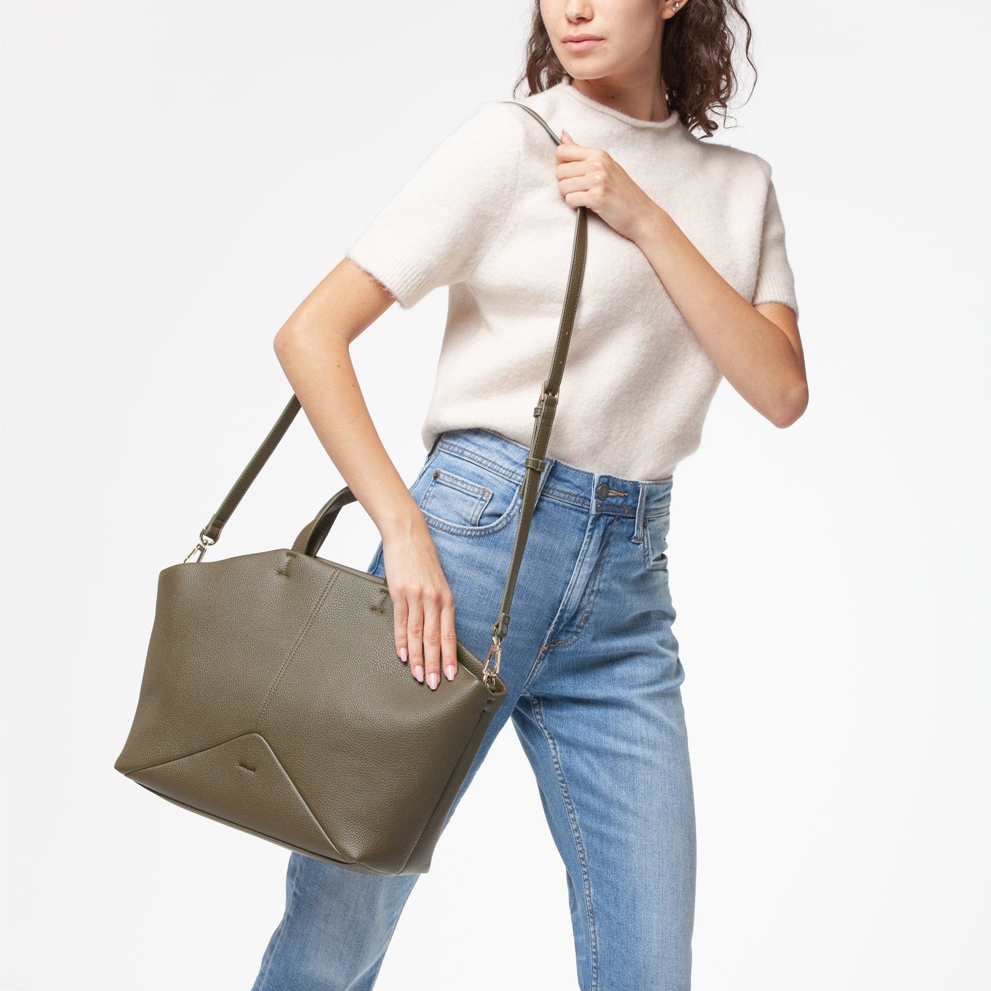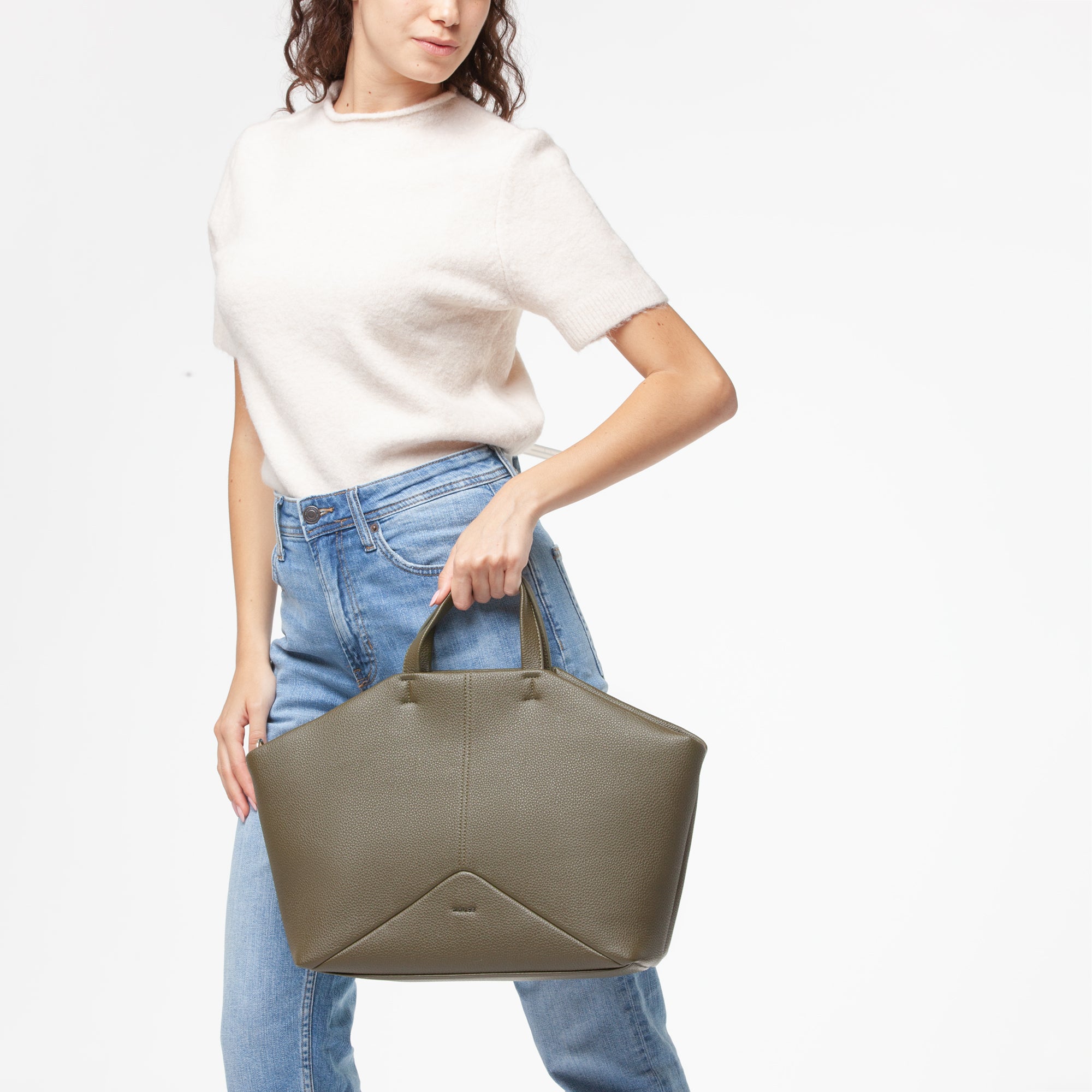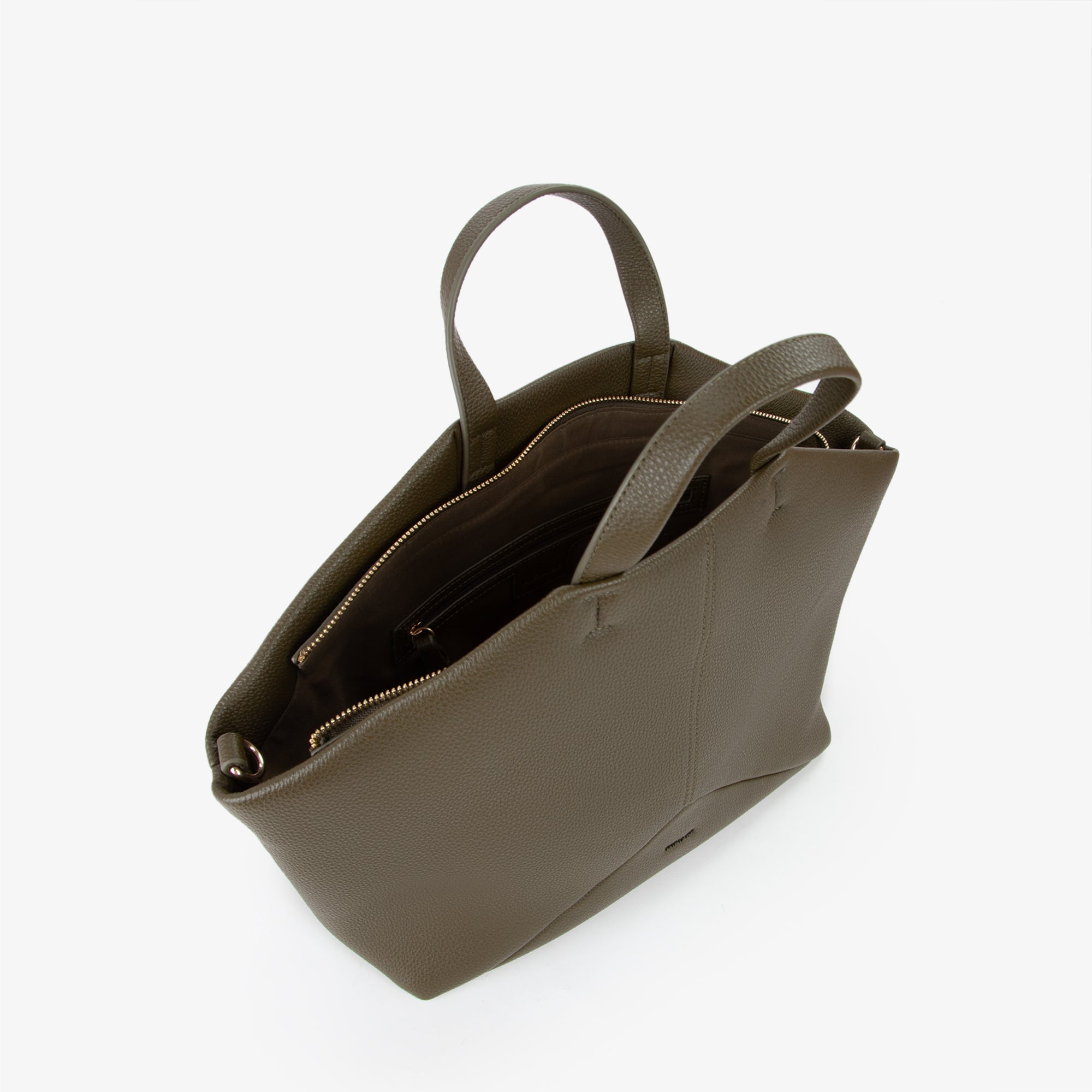 La borsa è dotata di un manico che permette di portarla comodamente a mano. Inoltre, è presente una tracolla regolabile e staccabile, offrendo la versatilità di portarla anche a spalla. Questa combinazione di elementi rende la borsa ideale per l'uso quotidiano, adattandosi facilmente alle proprie esigenze.-Il dettaglio taglio sulla parte frontale forma una V rovesciata, creando un elemento distintivo che aggiunge un tocco di eleganza al design minimalista.-Perfetta per chi cerca un accessorio pratico e alla moda, questa borsa basica è un must-have nel guardaroba di ogni donna.