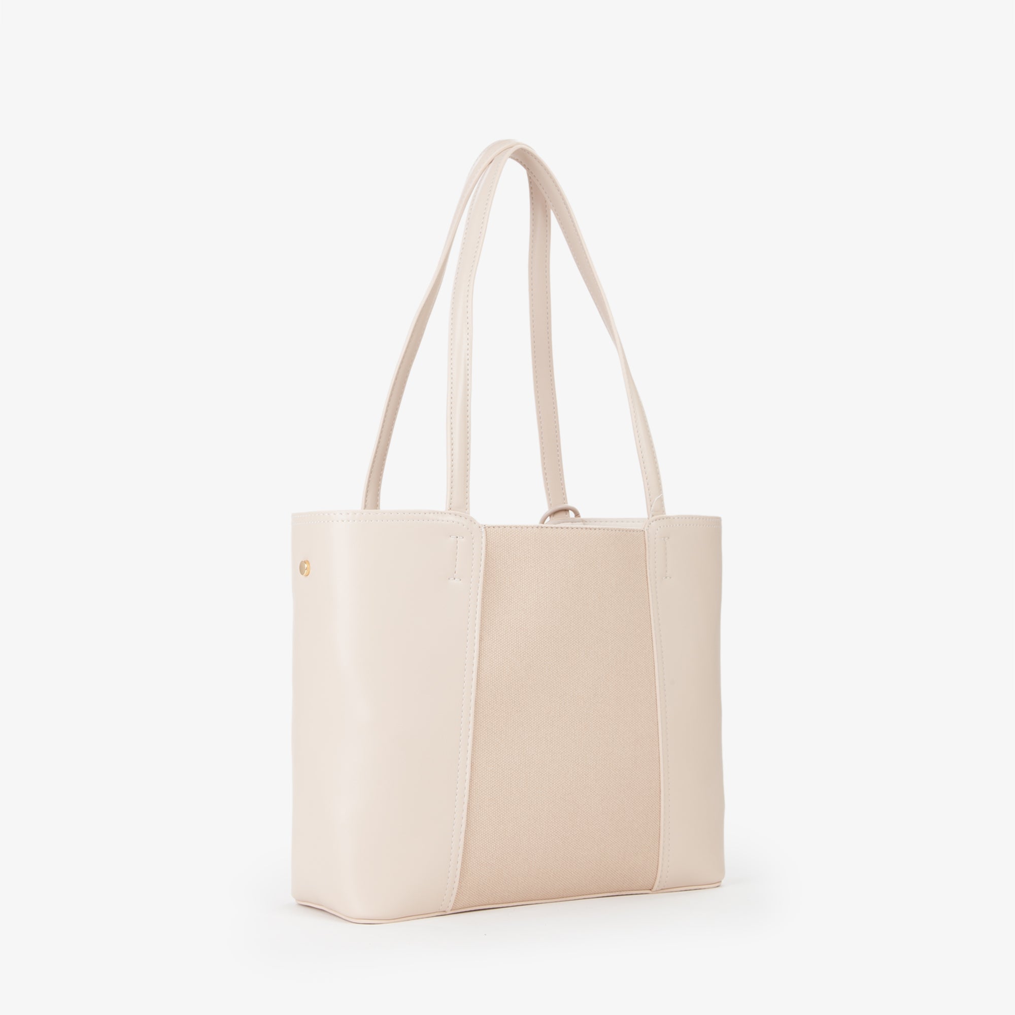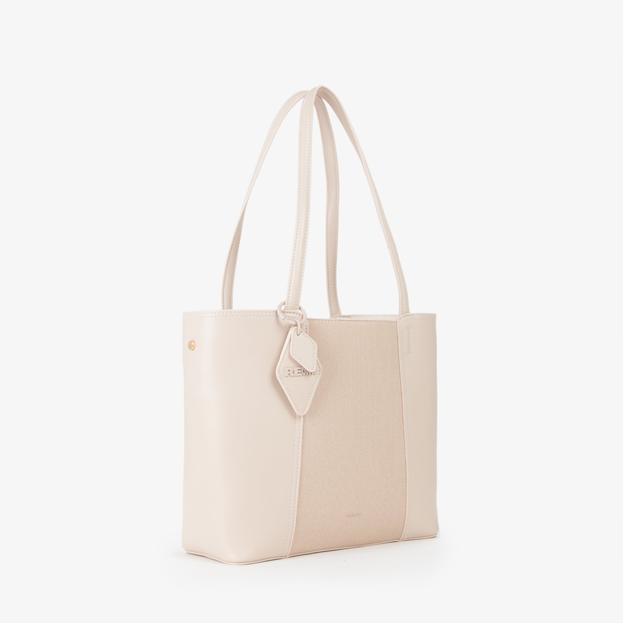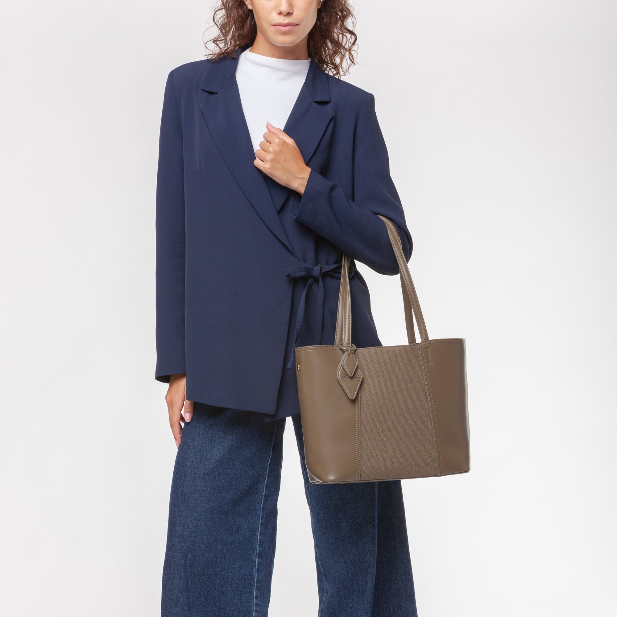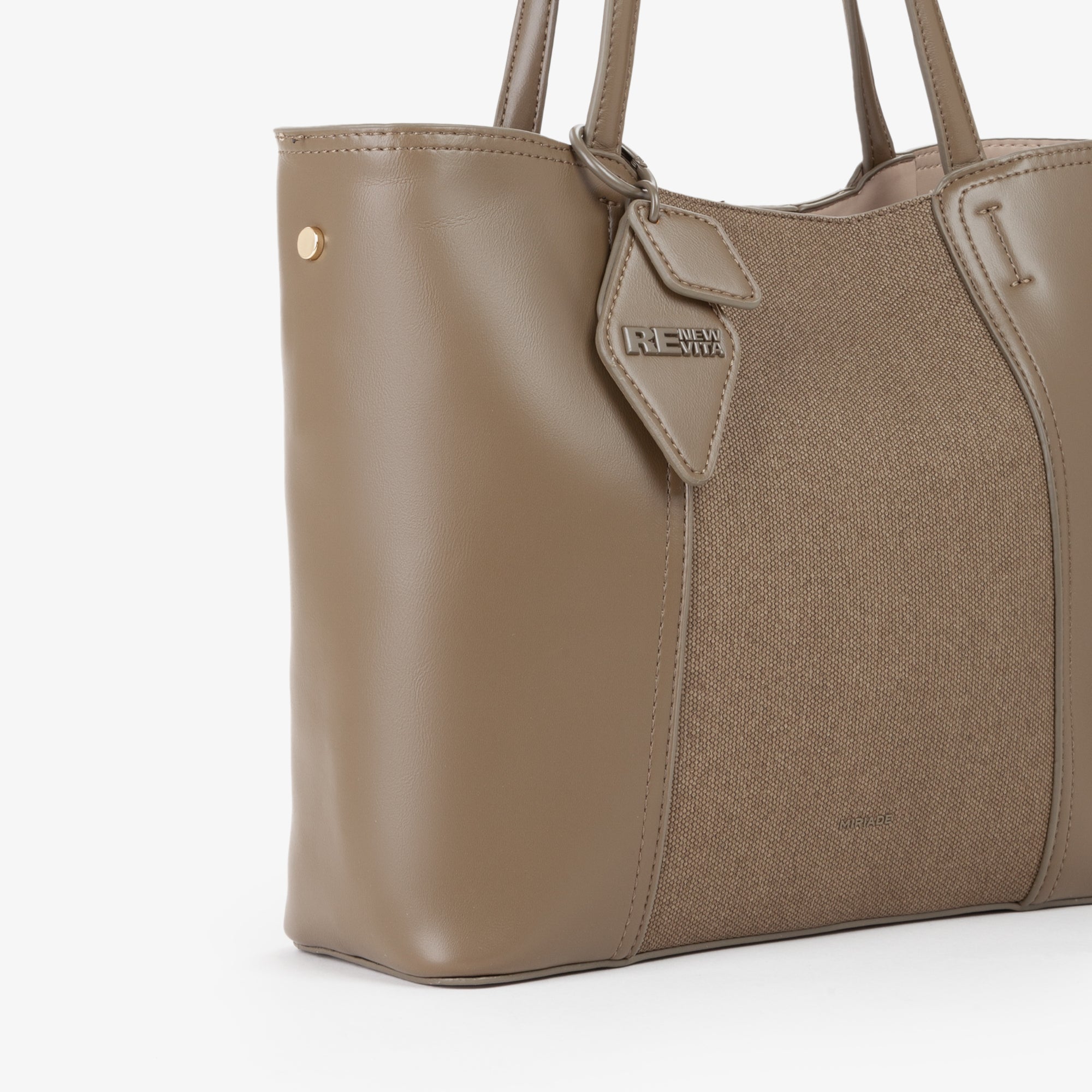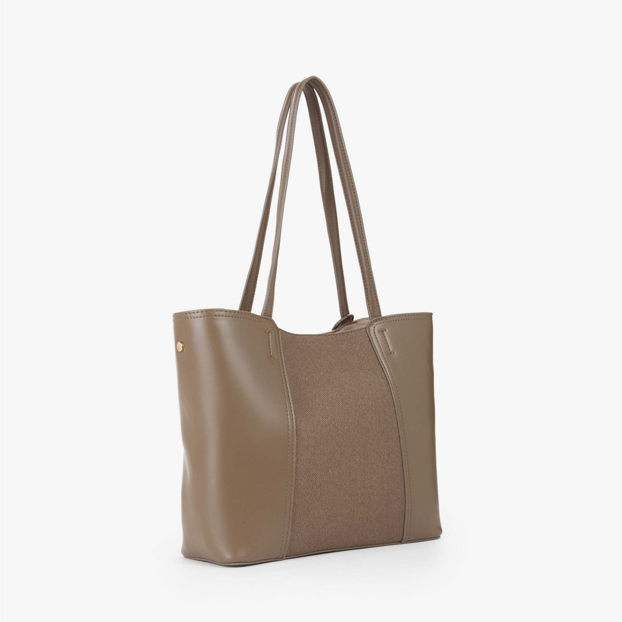 shopping bimateriale che crea un contrasto armonioso e moderno.-il manico lungo lungo offre una comoda portabilità sia a spalla chea mano, adattandosi con facilità a ogni esigenza quotidiana.-Le dimensioni generose ma non ingombranti la rendono ideale per contenere tutto il necessario, risultando perfetta sia per lambiente lavorativo che per il tempo libero.undefined