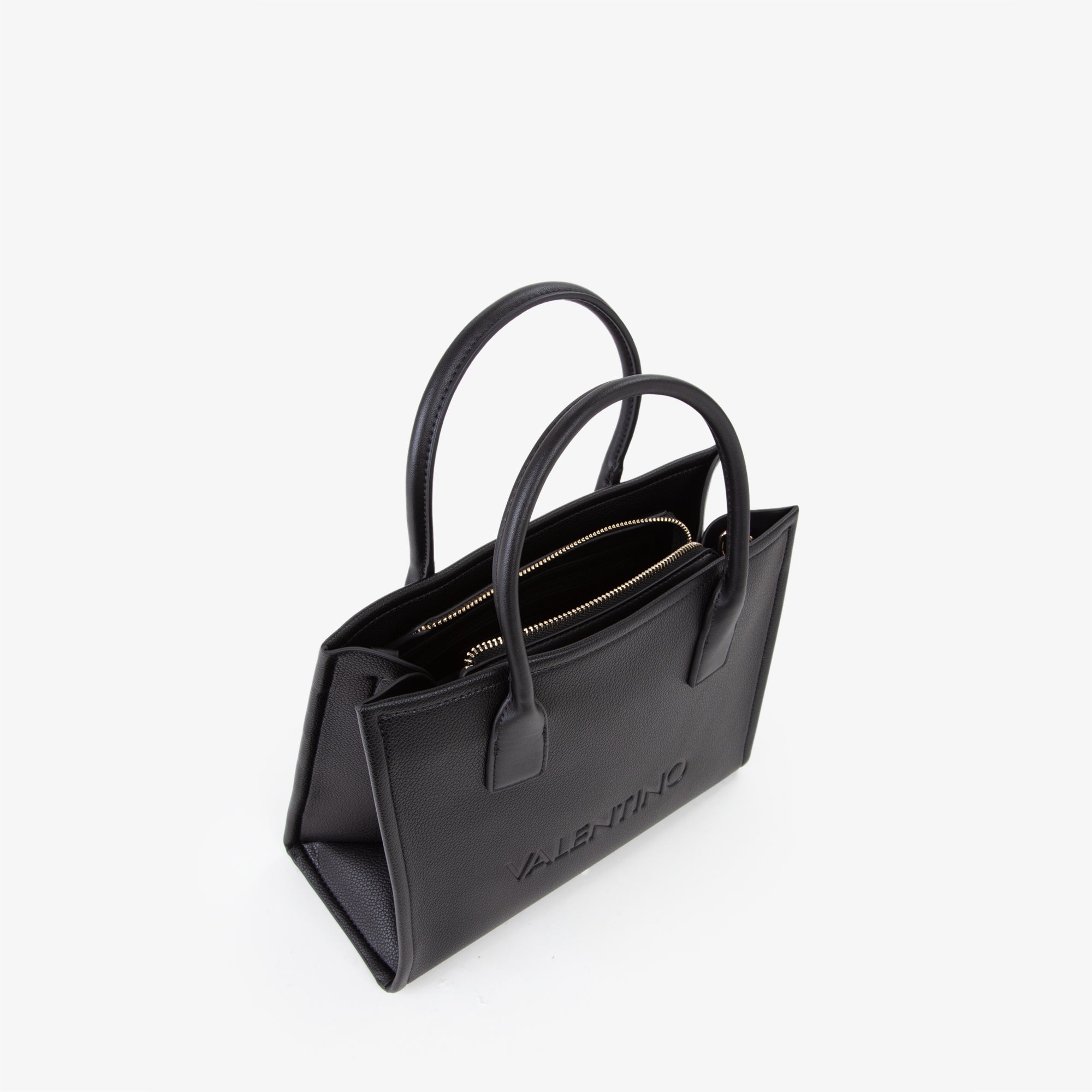 Shopping a mano, dalle piccole dimensioni, con logo abbinato ai dettagli di colore a contrasto.