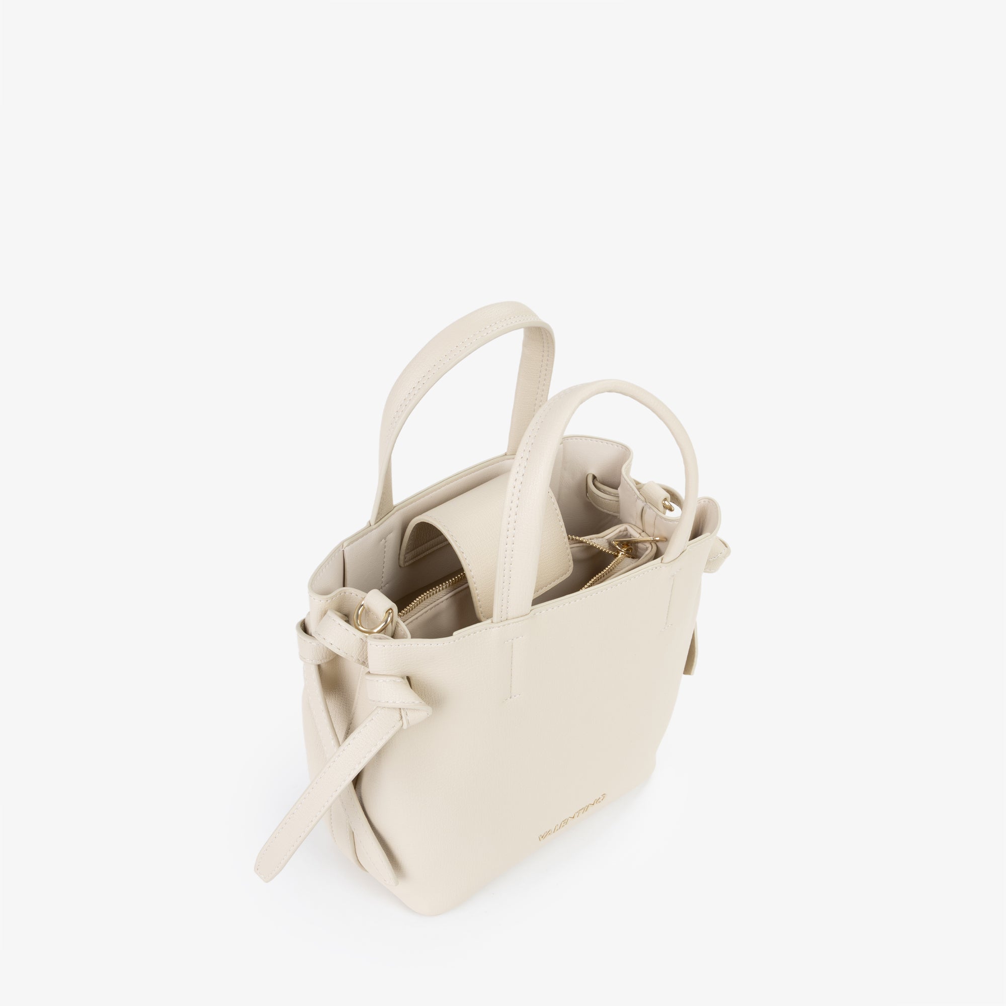 Shopping a mano con logo gommato sul davanti e nodi decorativi sui lati.