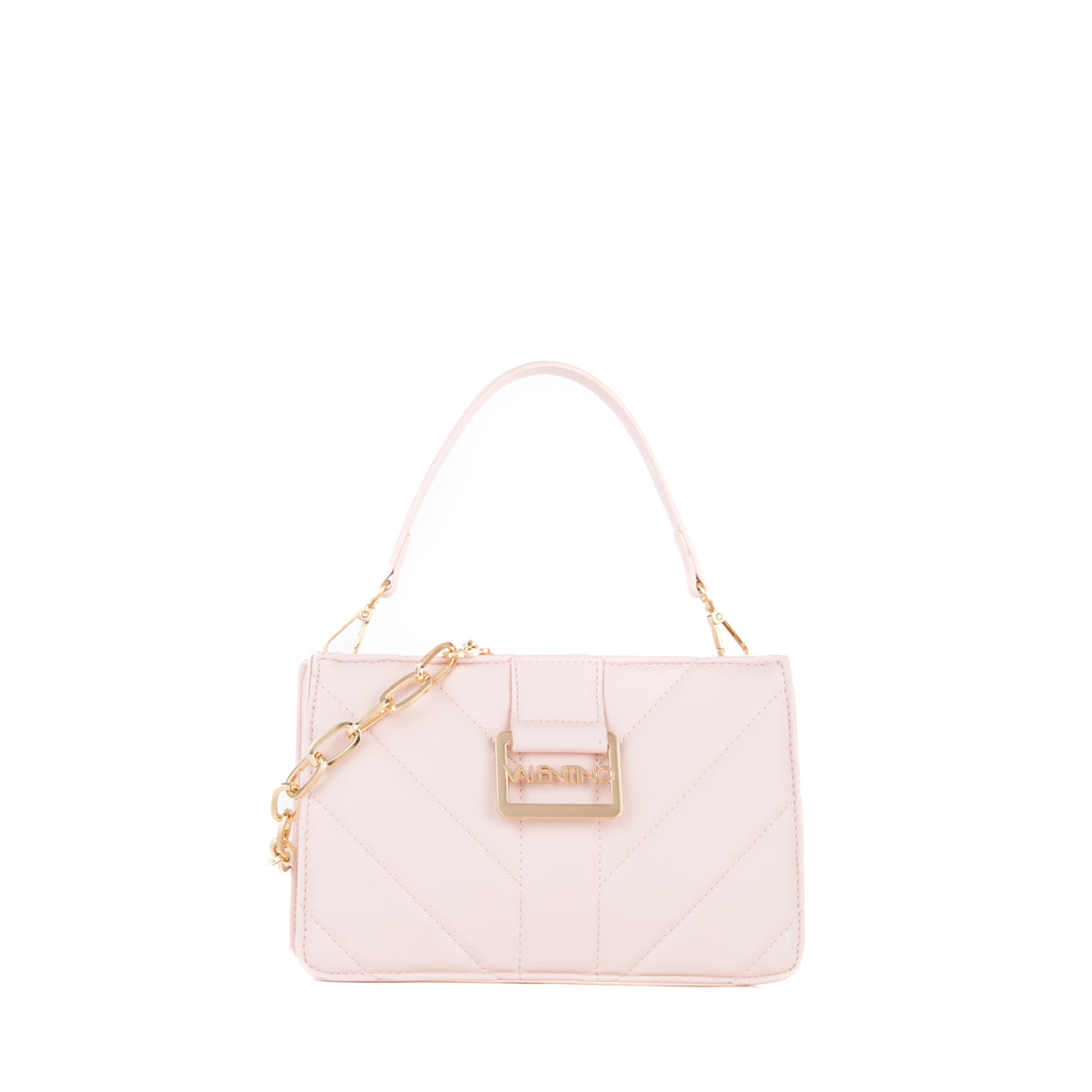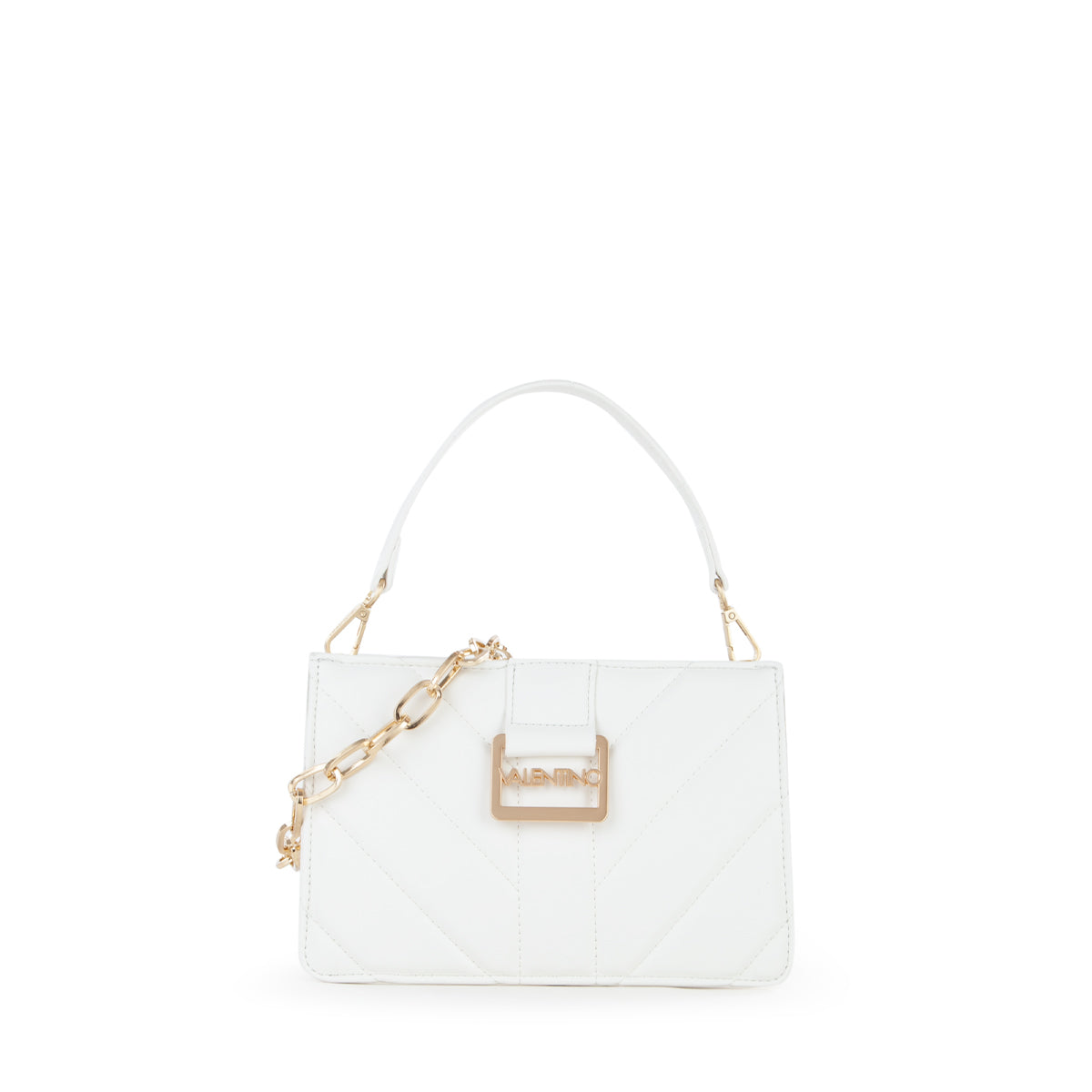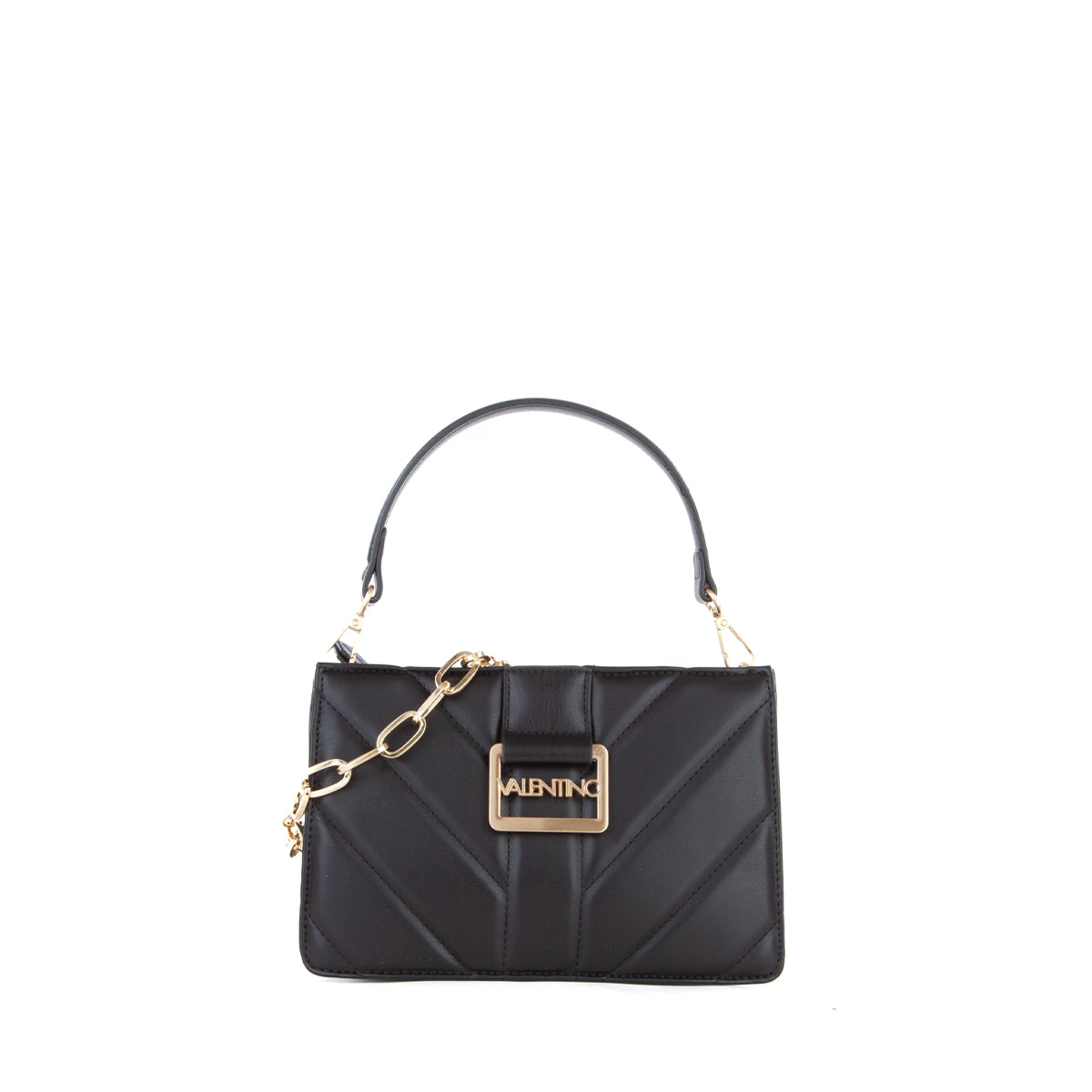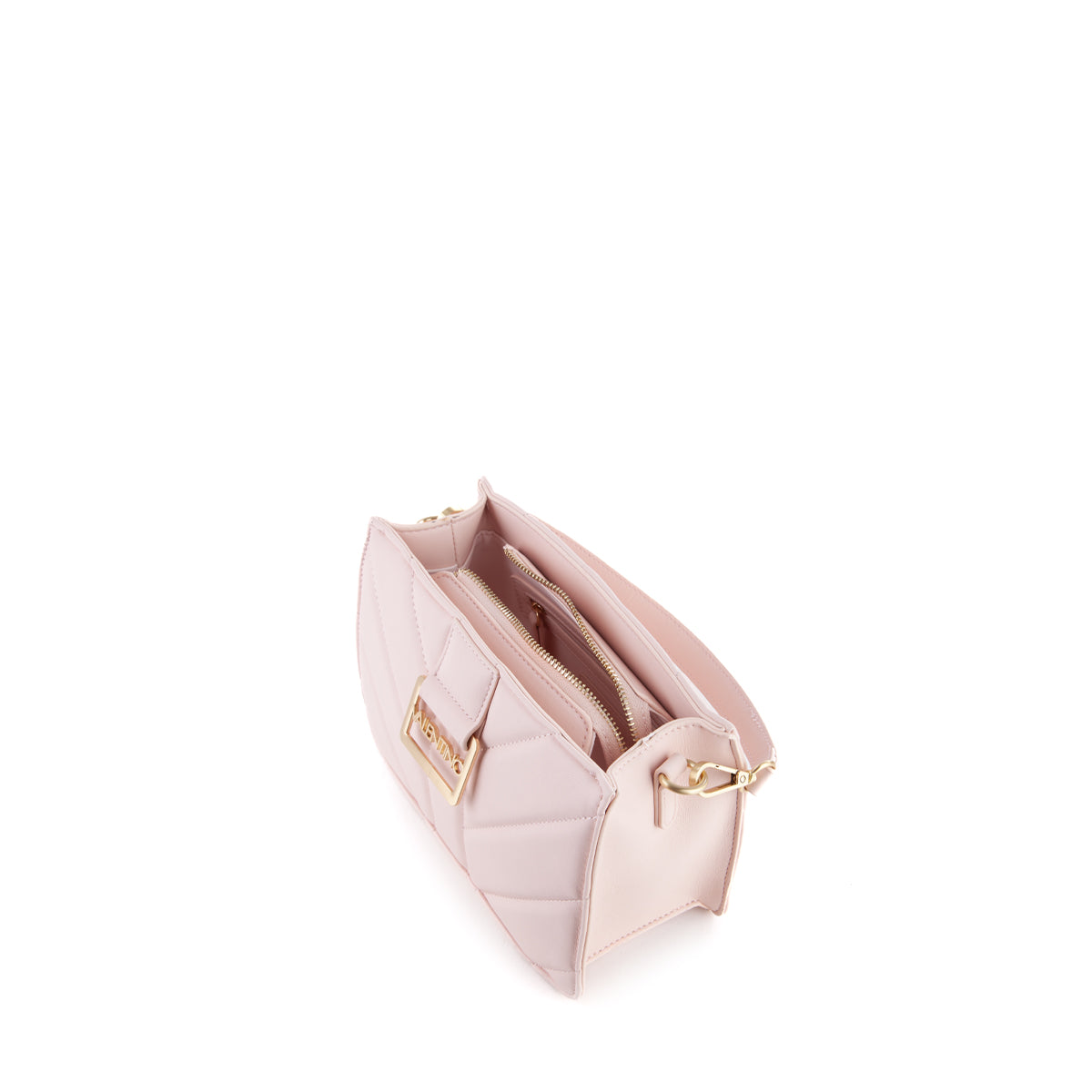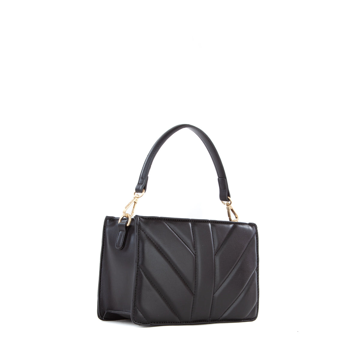 Tracollina in nappa trapuntata ed accessorio logato in oro satinato. Dispone di doppia tracolla ,in nappa standard e una divertentecatena geometrica.