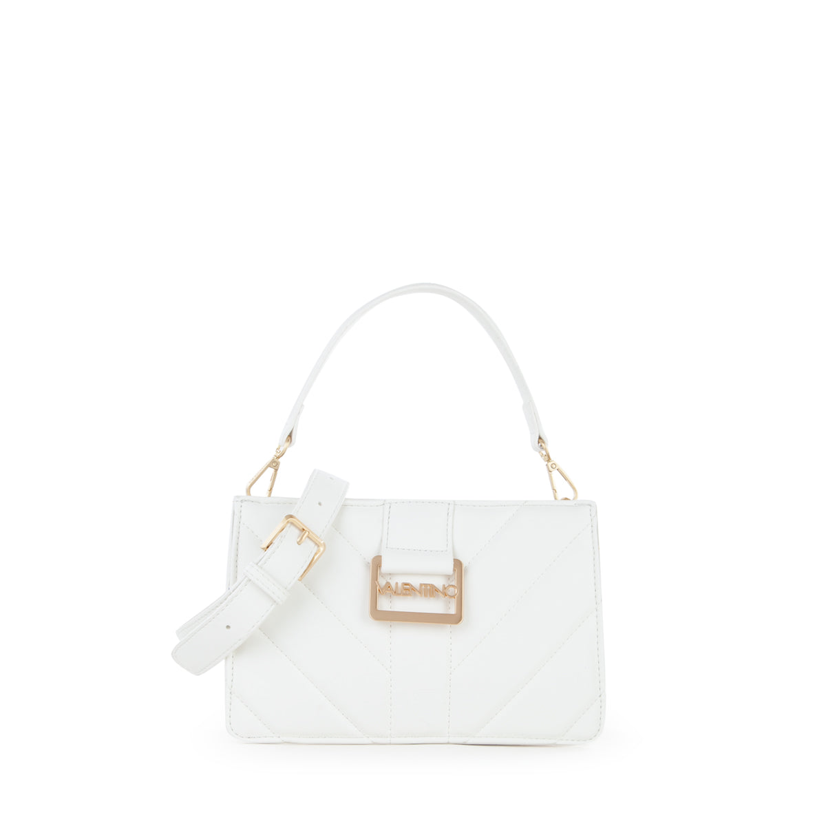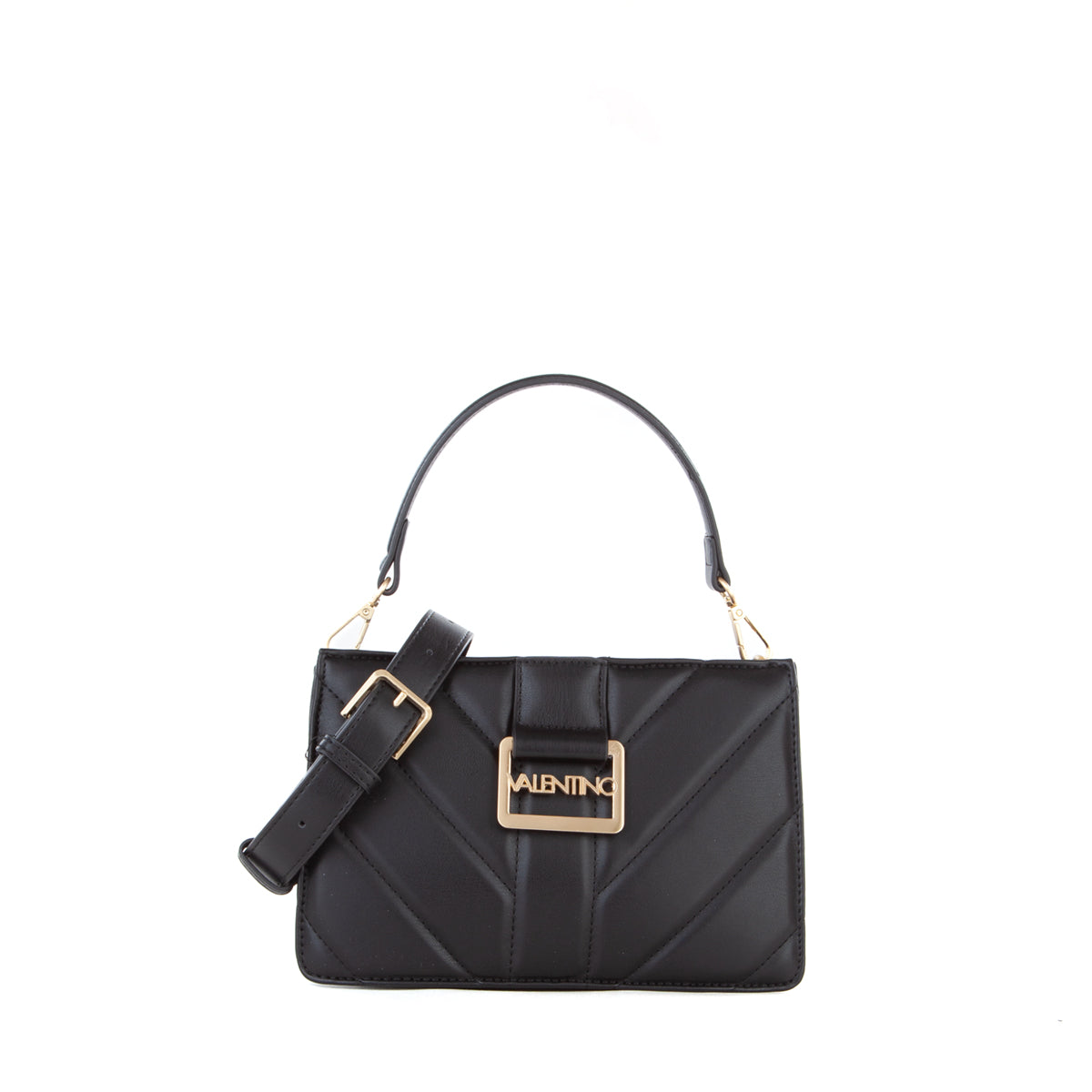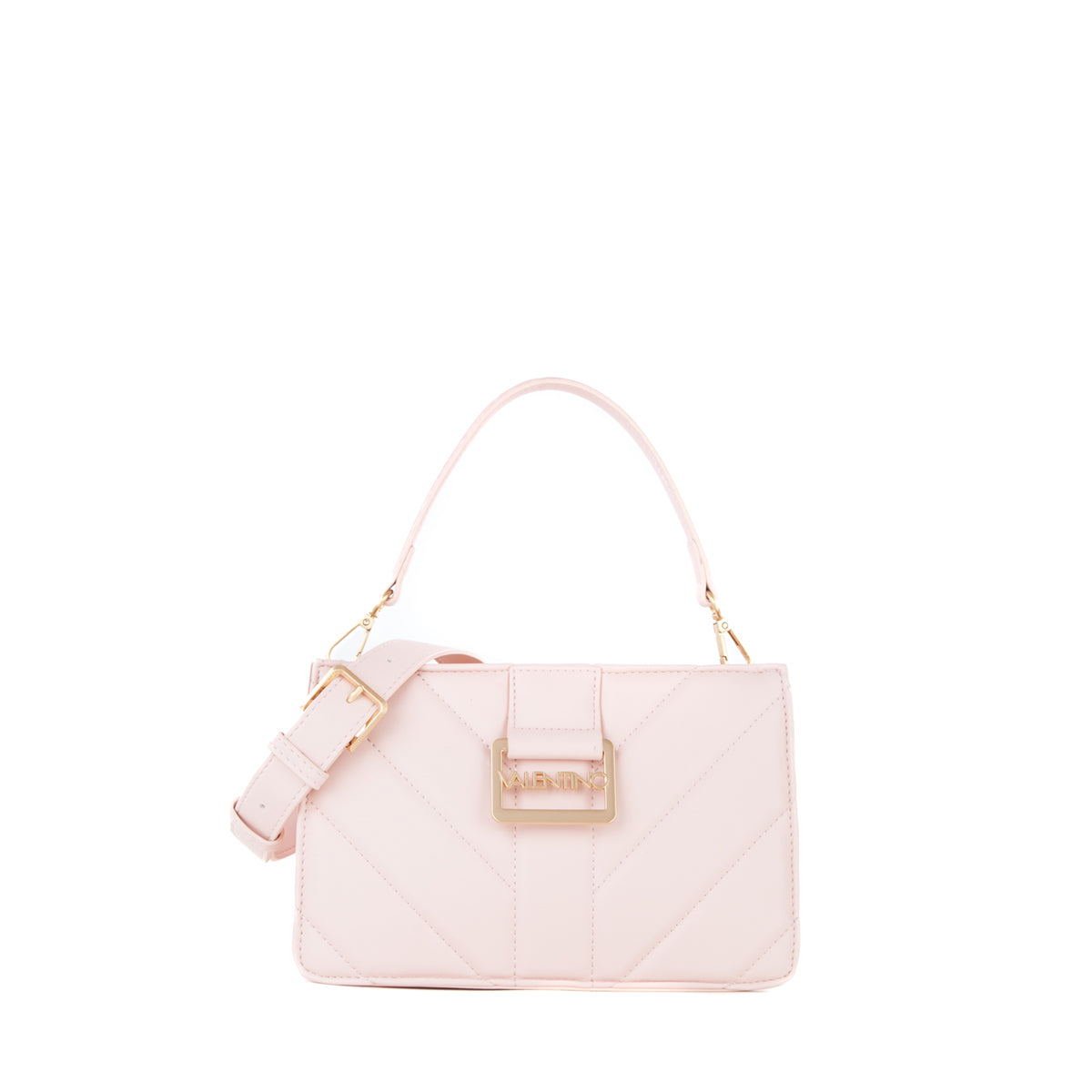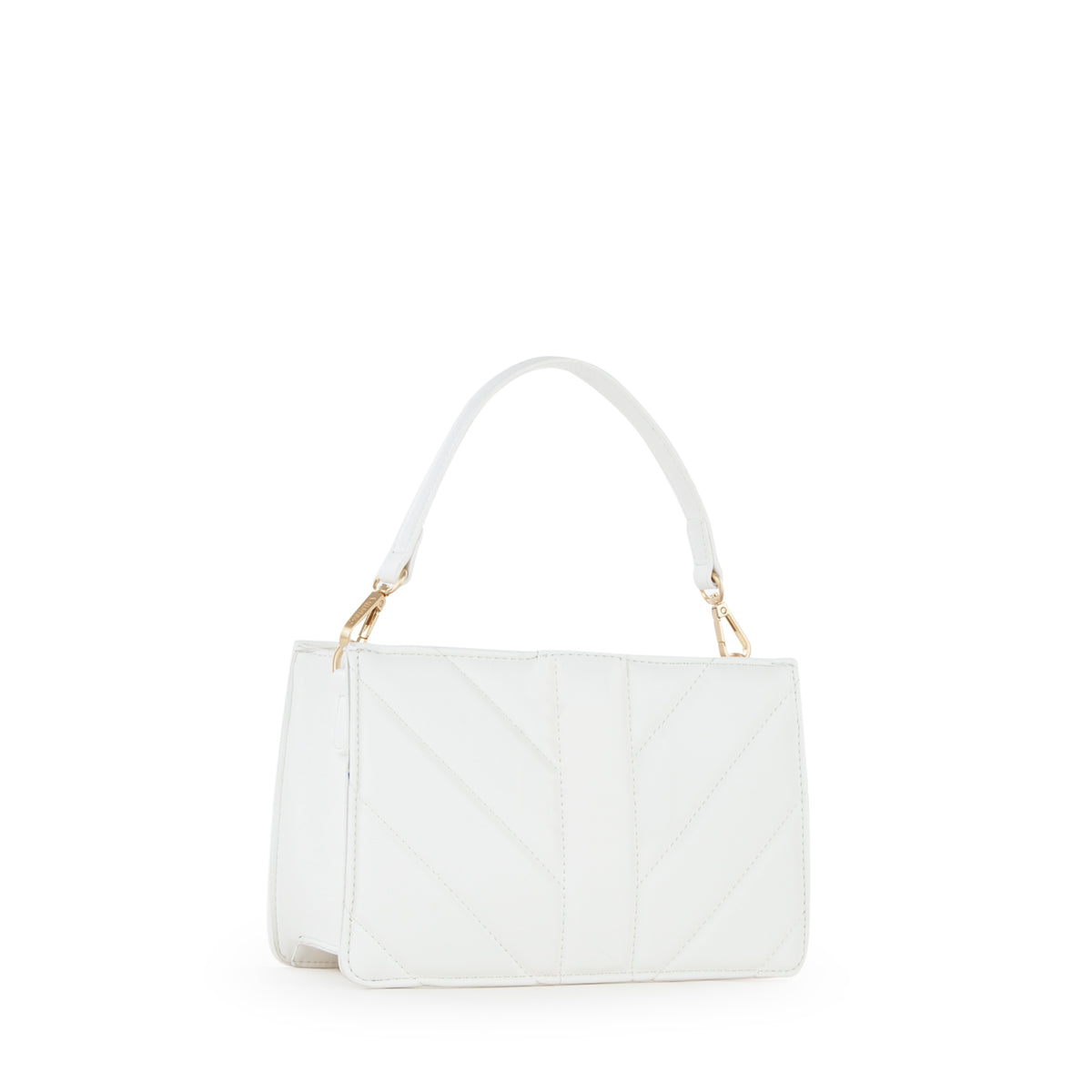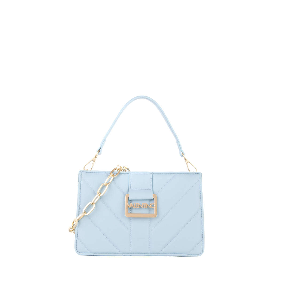 Tracollina in nappa trapuntata ed accessorio logato in oro satinato. Dispone di doppia tracolla ,in nappa standard e una divertentecatena geometrica.