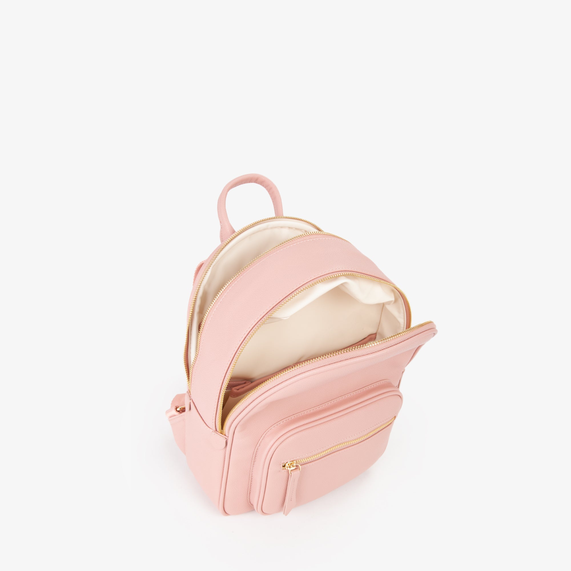 Zaino in grana con logo marchiato a fuoco. Dispone di tracolle in nastro personalizzate.